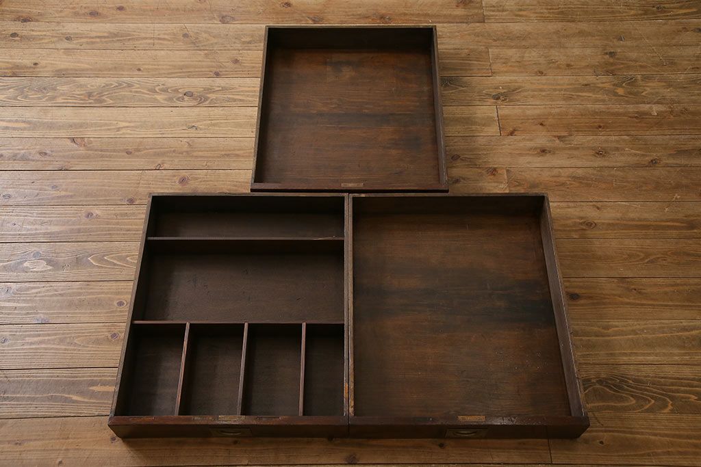 ■引き出しの内寸(左) 深さ80mm/幅490mm(手前・仕切り内各125mm)/奥行 手前から220・220・120mm