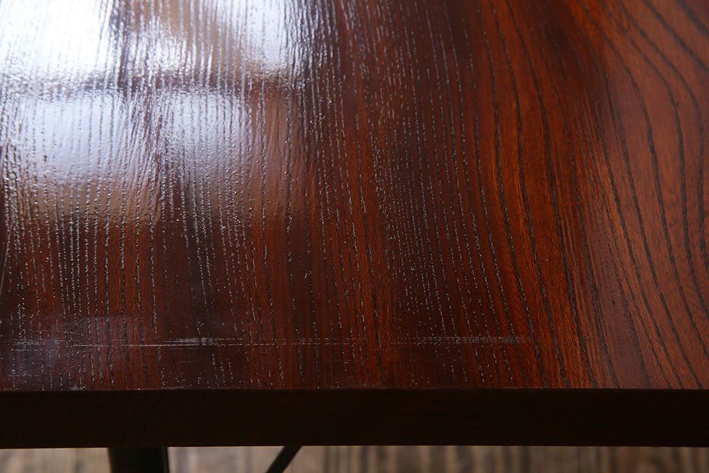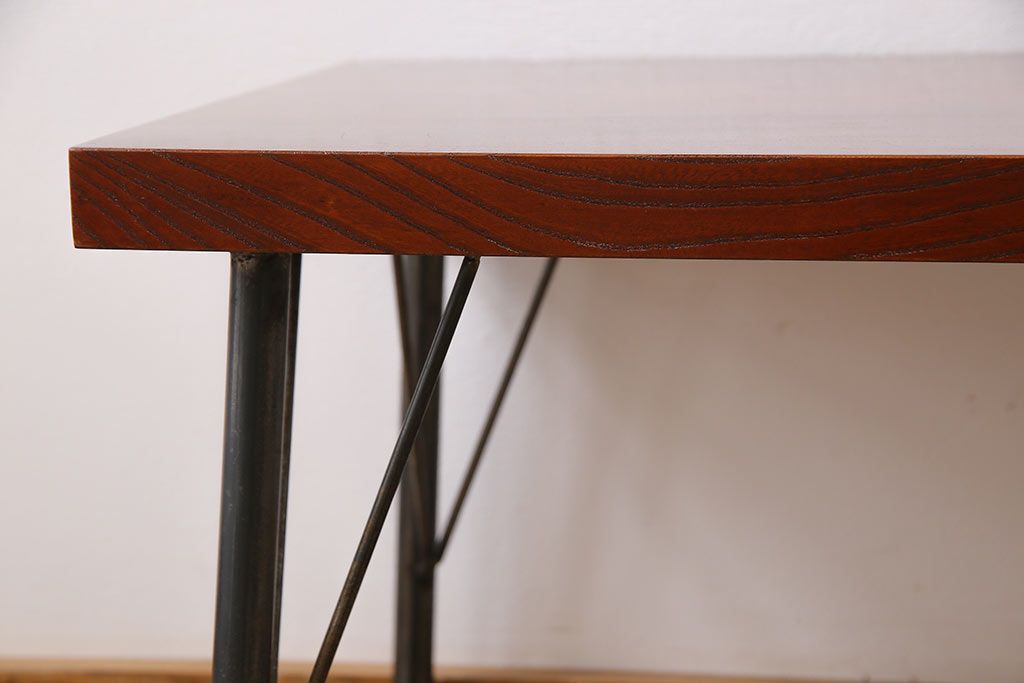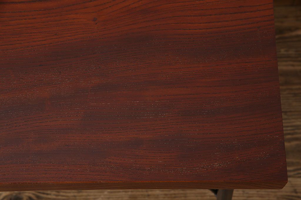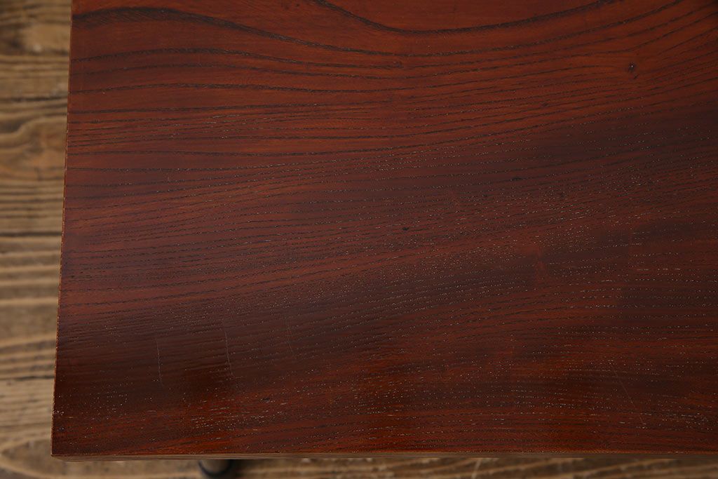 古材リメイク品 天板一枚板 漆塗り 上品な雰囲気漂うケヤキの杢目が美しい鉄脚ローテーブル(飾り台、サイドテーブル)です。