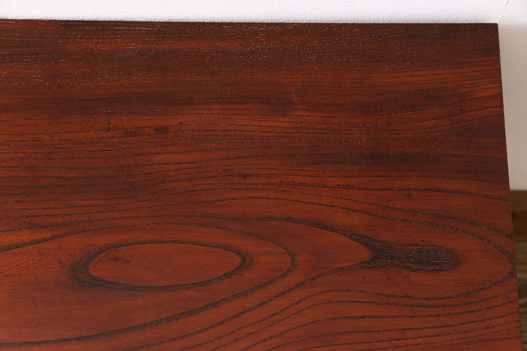 ケヤキ材一枚板で赤みを帯びた木色と