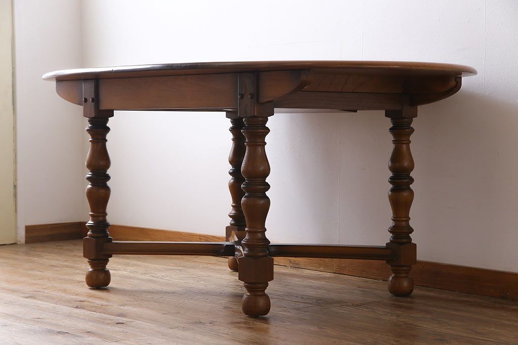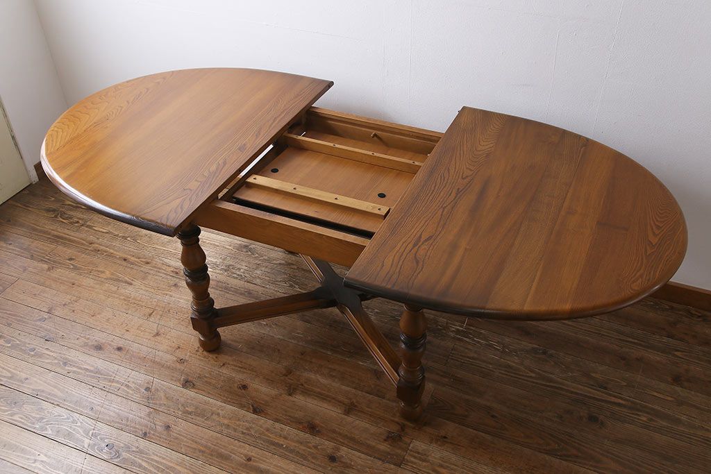 ヴィンテージ家具 イギリスビンテージ ERCOL(アーコール) エレガントなドローリーフテーブル(ダイニングテーブル)