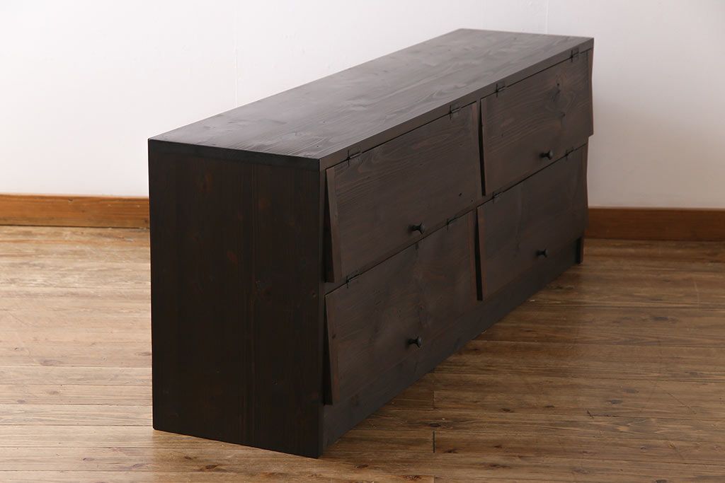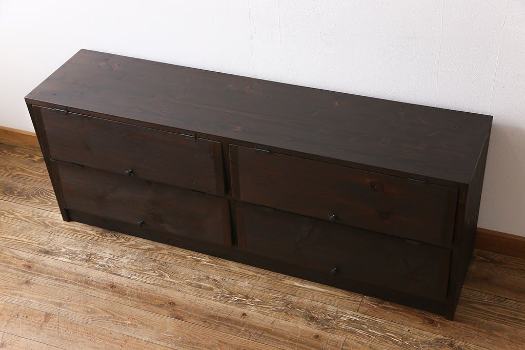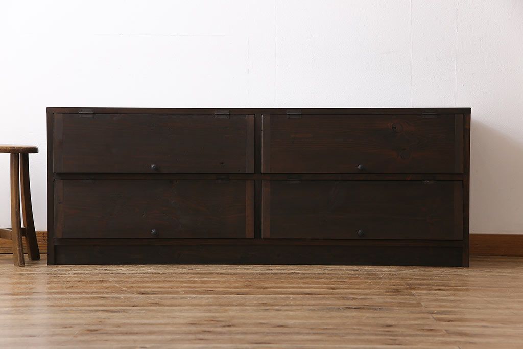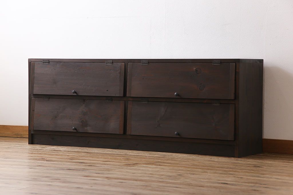 リメイク品 明治期の松材を利用したパタパタ扉のローボード(リビングボード、戸棚、収納棚)(2)です。