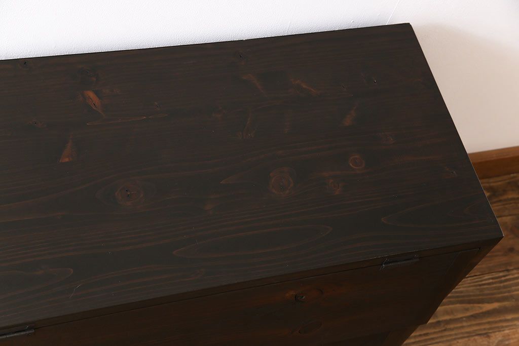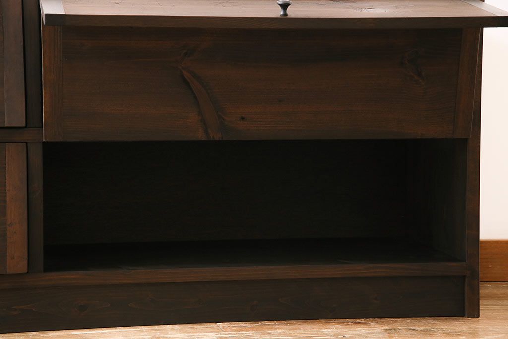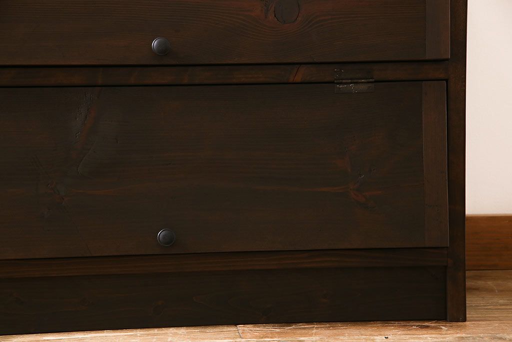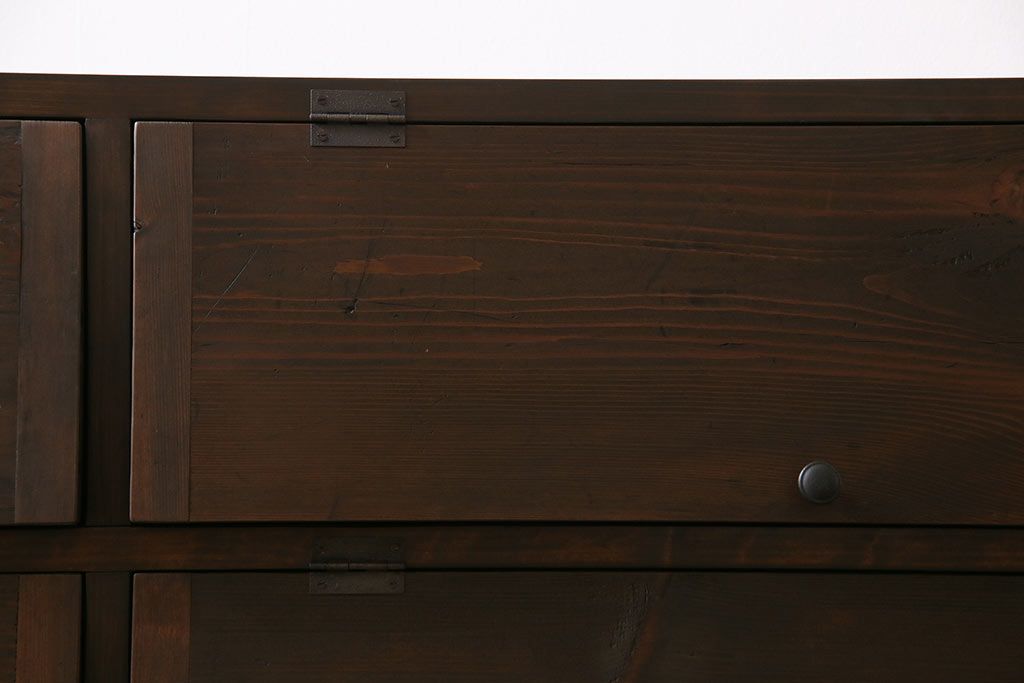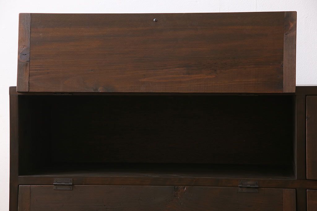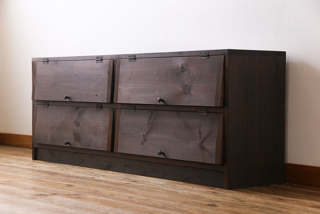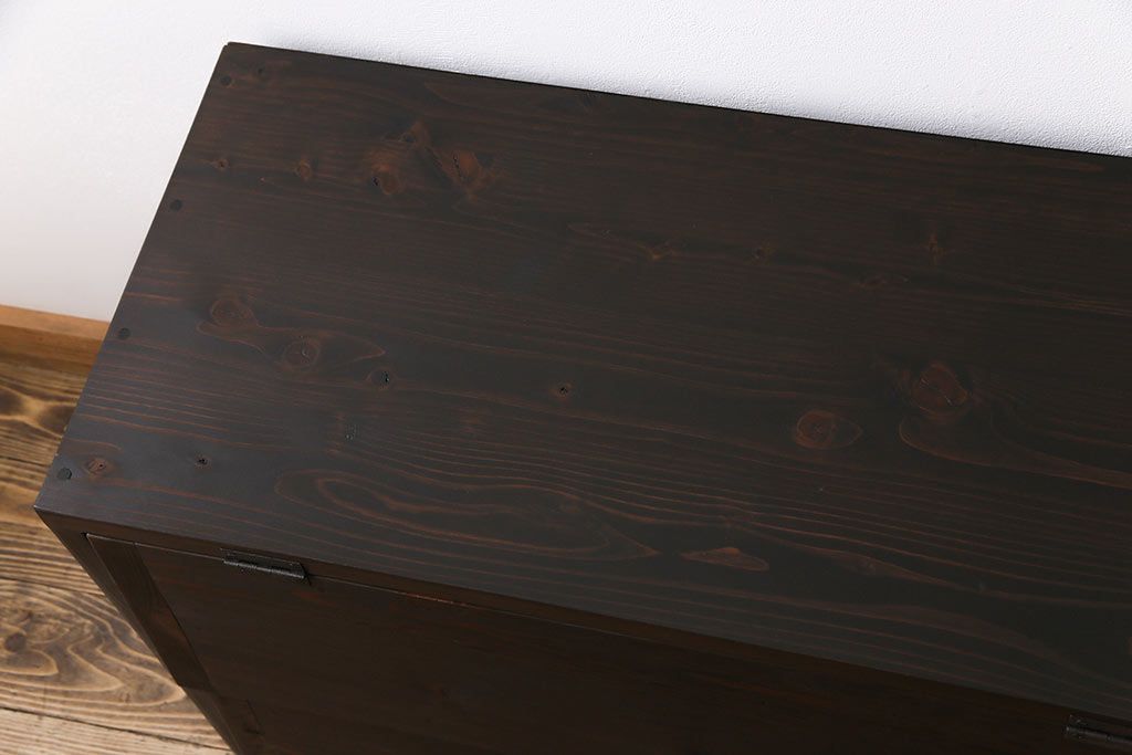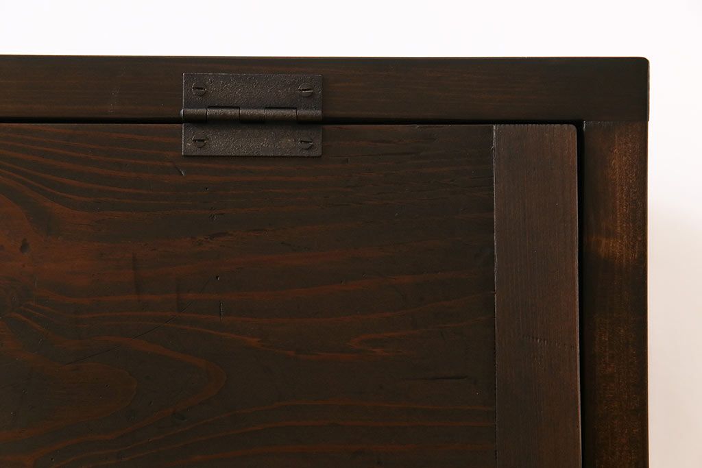 アンティーク家具 リメイク品 明治期の松材を利用したパタパタ扉のローボード(リビングボード、戸棚、収納棚)(2)