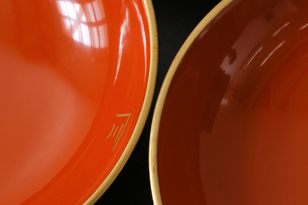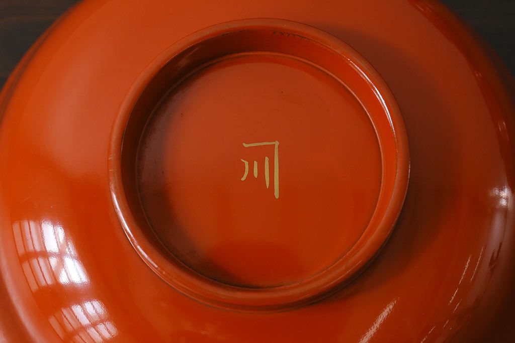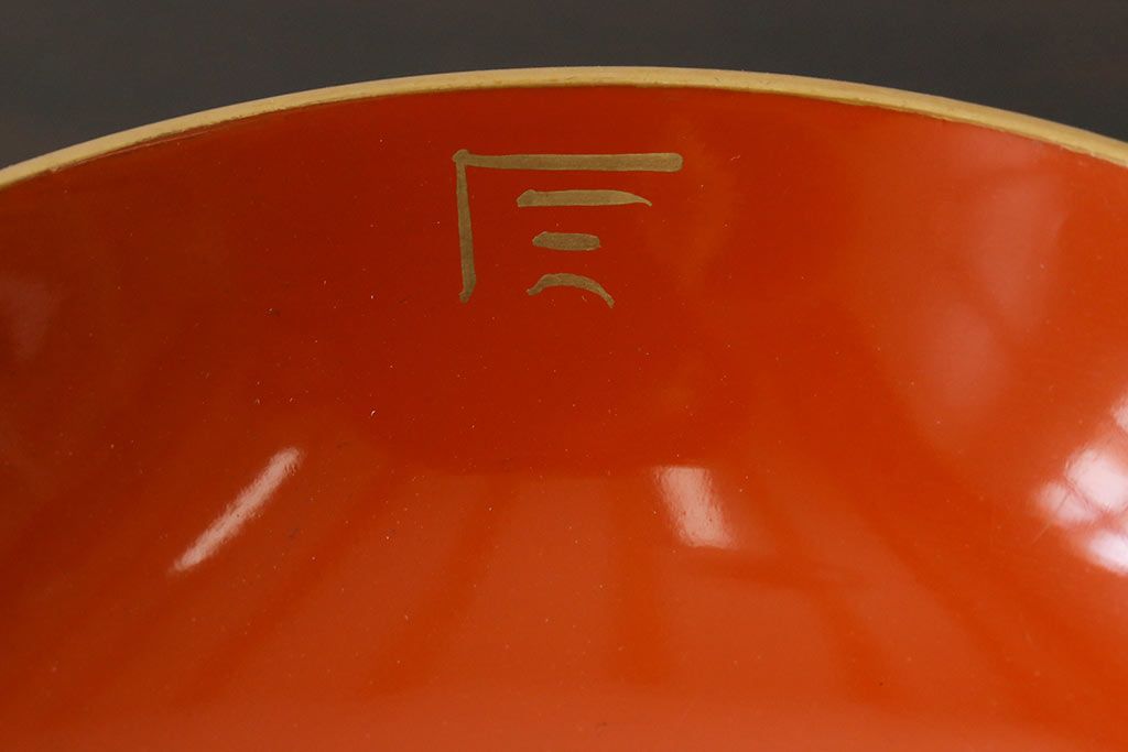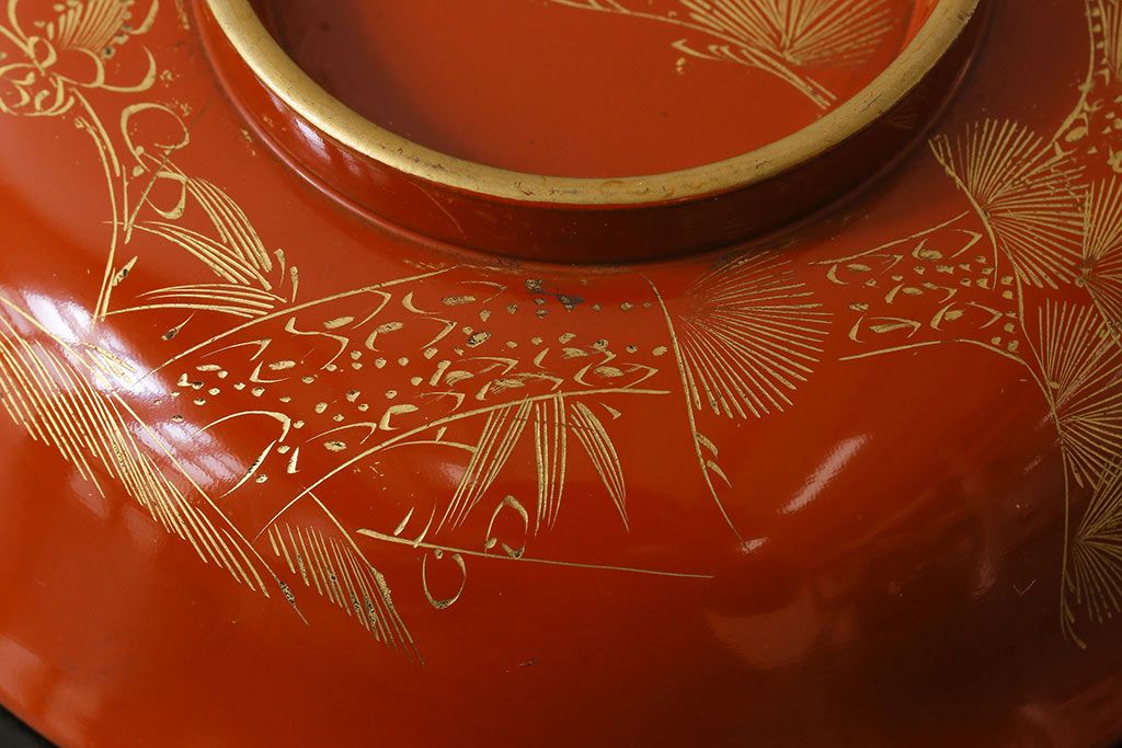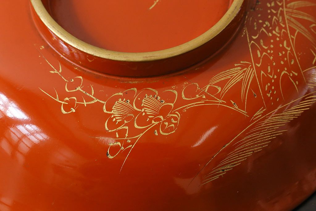ラフジュ工房> 骨董・美術品> 骨董-漆器 > 和製アンティーク 松竹梅 縁起の良い意匠の沈金朱塗椀5客セット(蓋付き椀、漆器、和食器)(1)