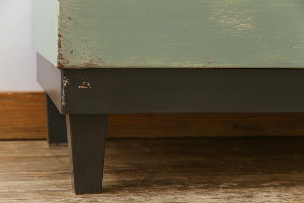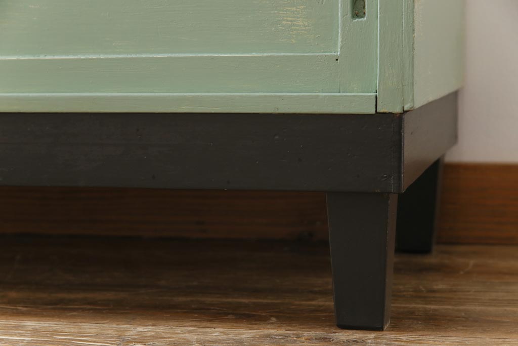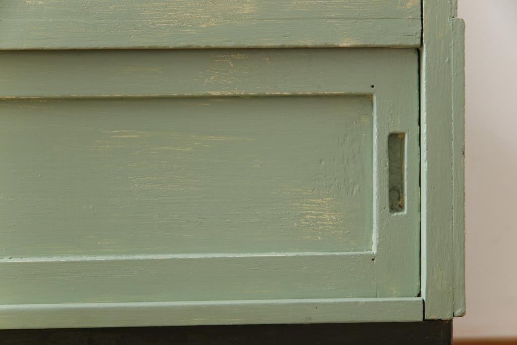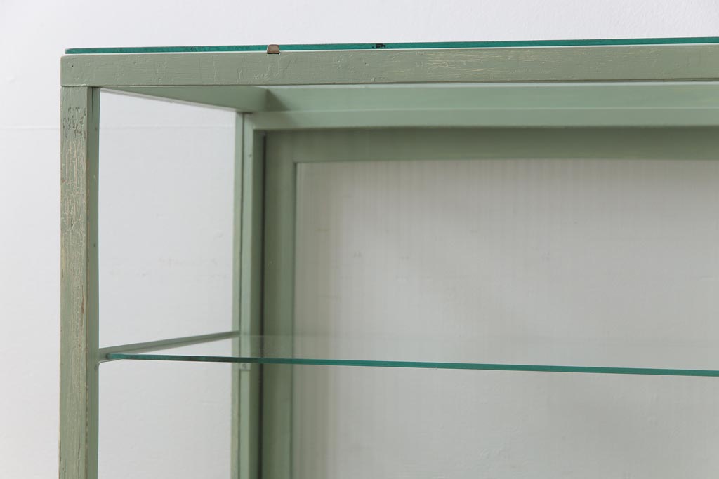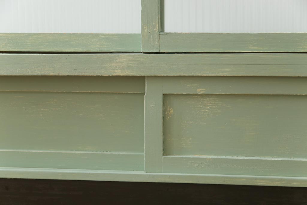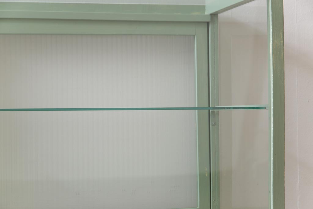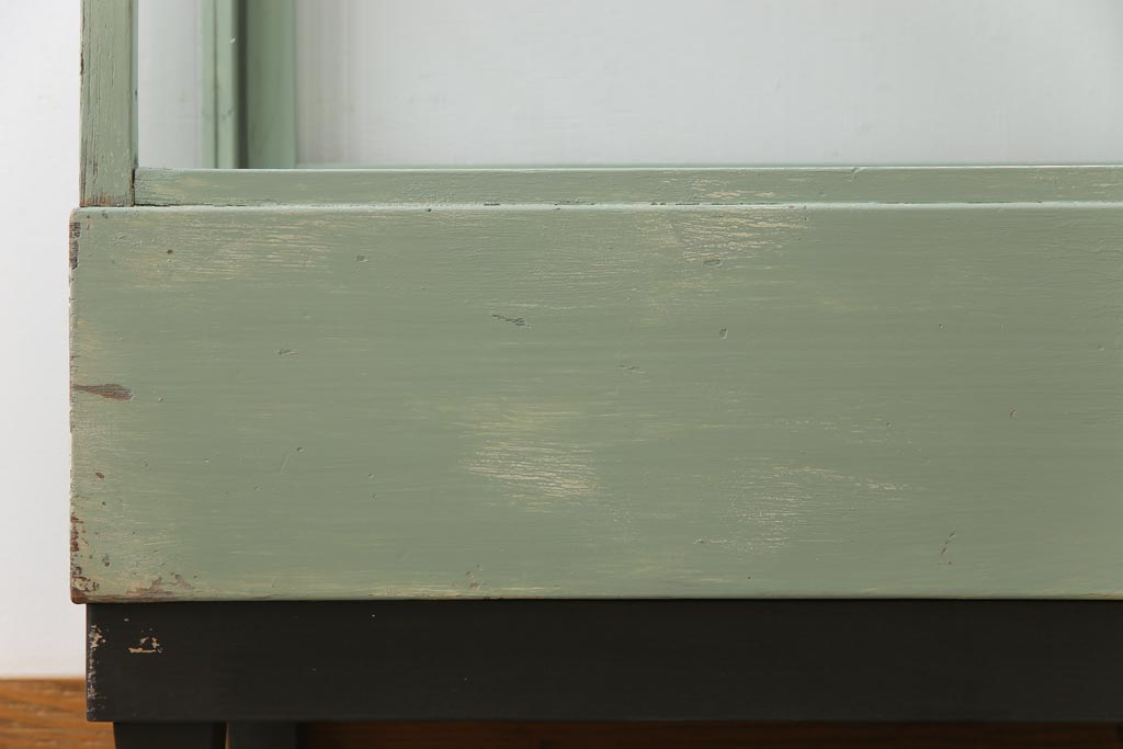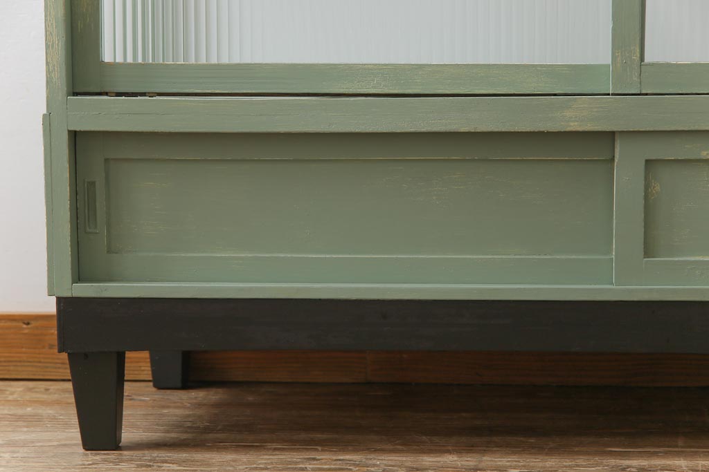 ペイント家具 モールガラス入り 引き戸収納付きレトロなガラスケース(ショーケース、陳列棚、飾り棚)