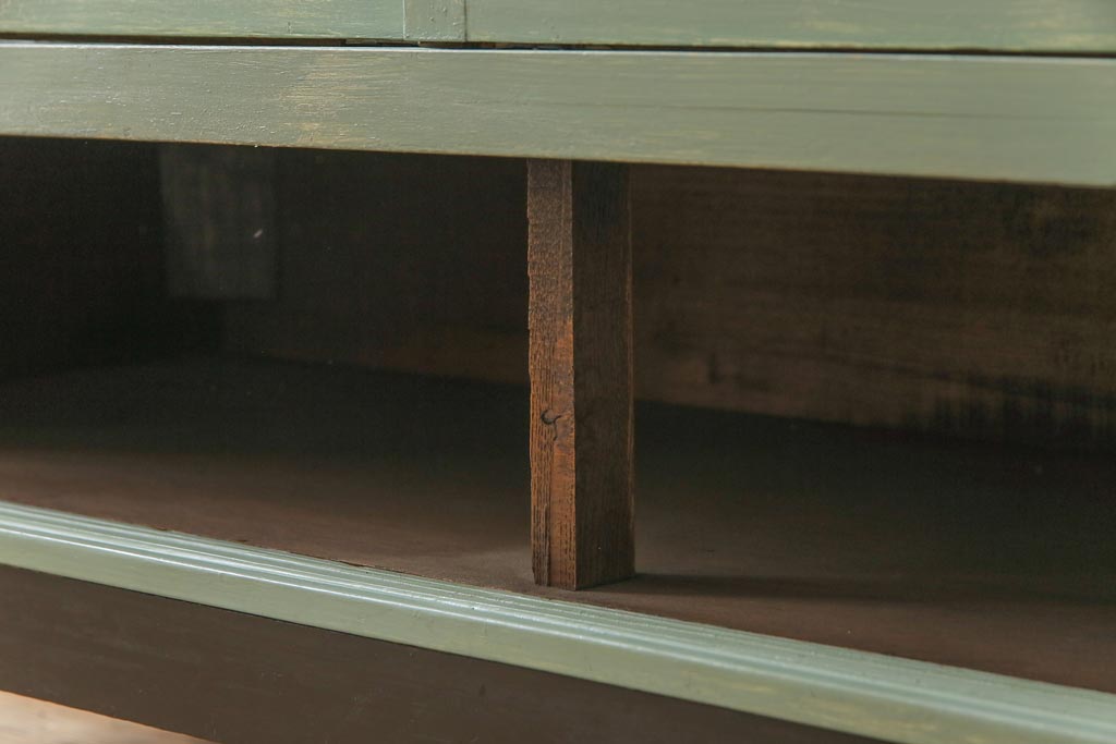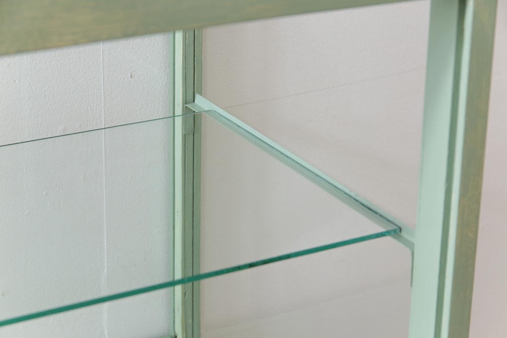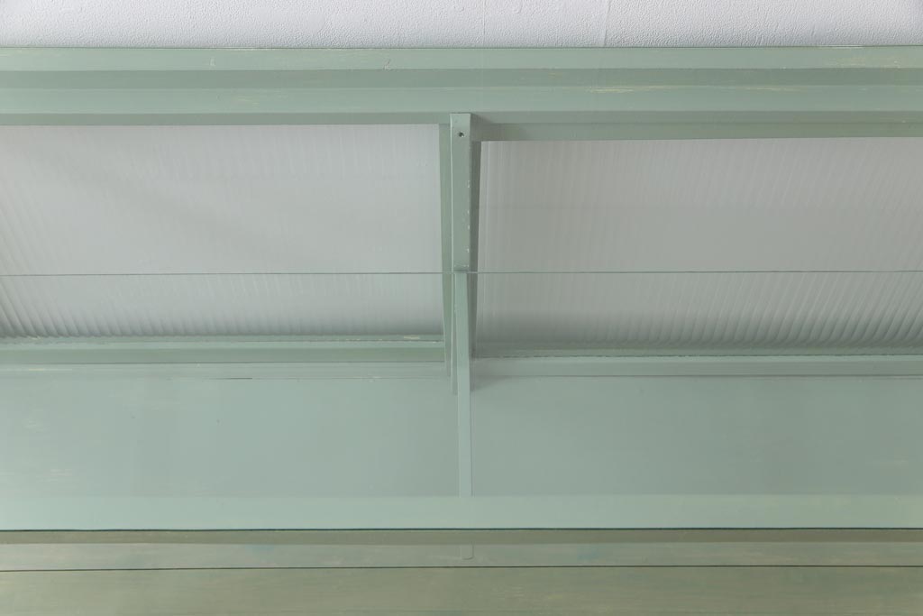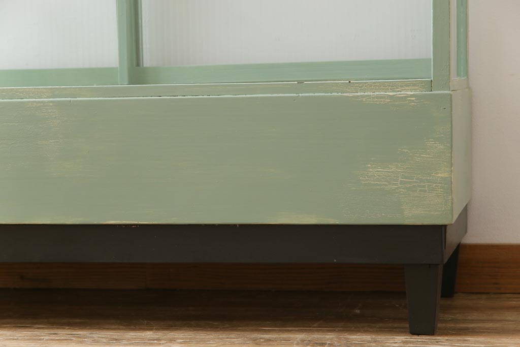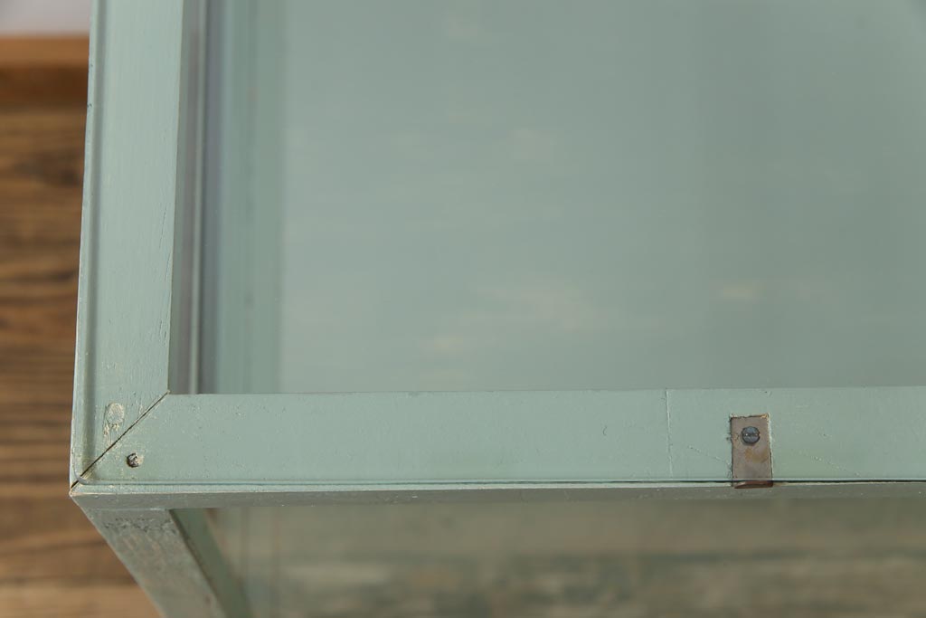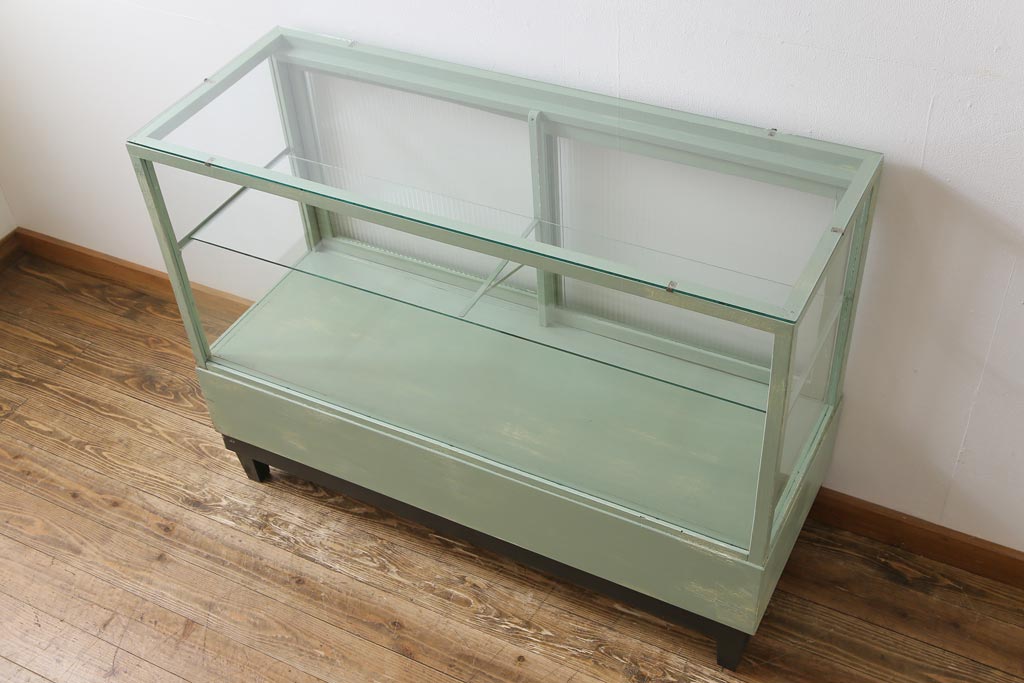 ラフジュ工房> 店舗什器 > ペイント家具 モールガラス入り 引き戸収納付きレトロなガラスケース(ショーケース、陳列棚、飾り棚)