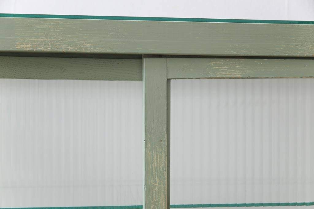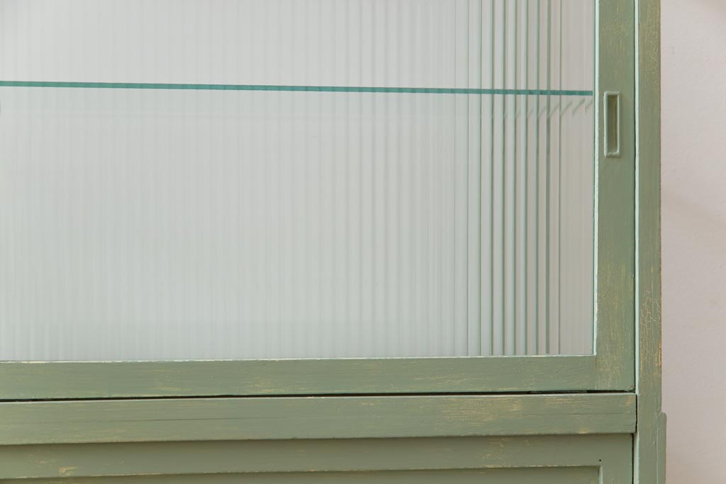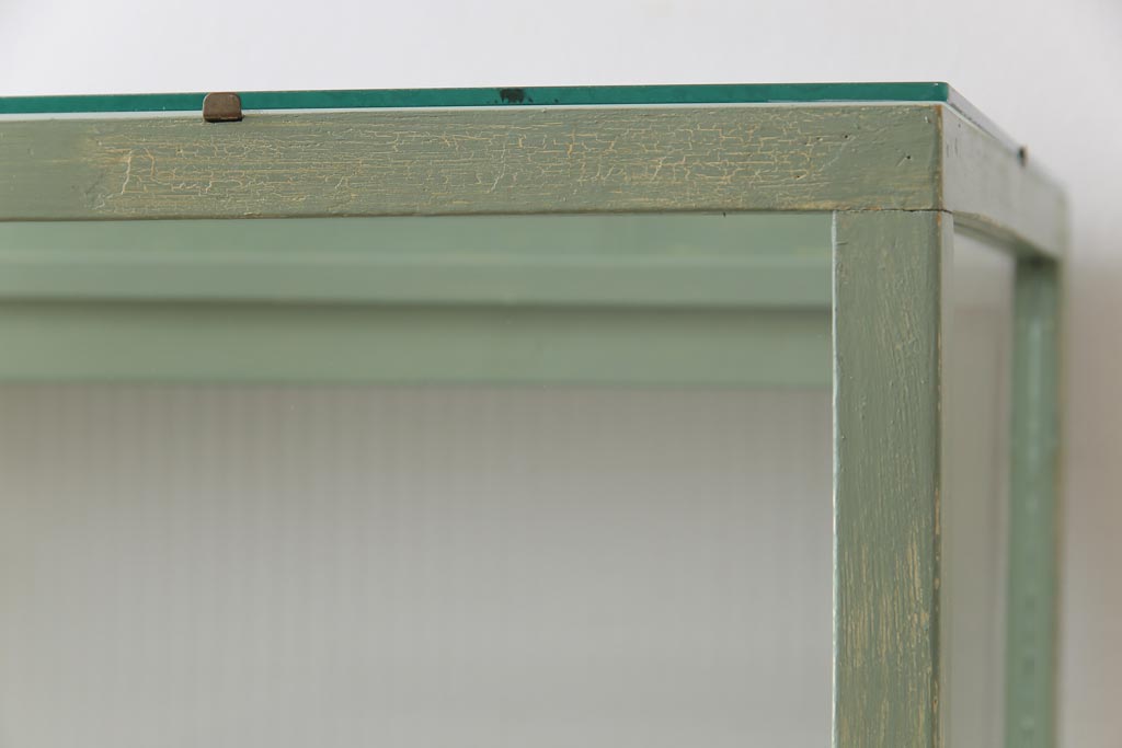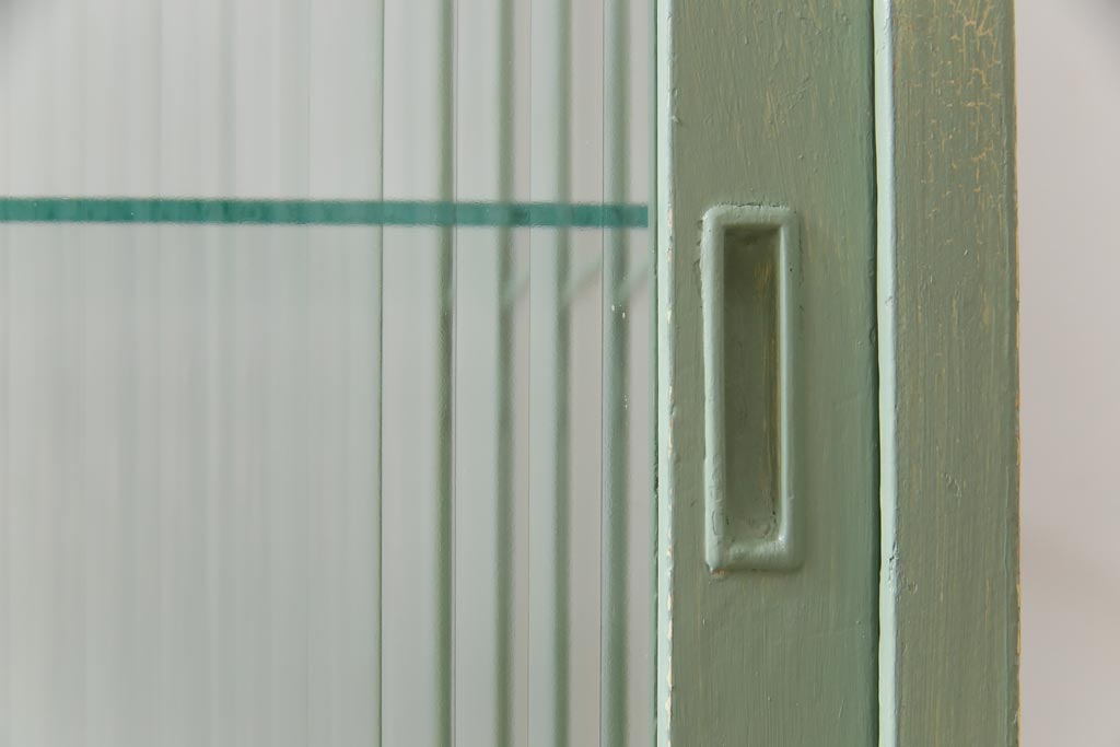 ラフジュ工房> ガラスケース・ショーケース > ペイント家具 モールガラス入り 引き戸収納付きレトロなガラスケース(ショーケース、陳列棚、飾り棚)