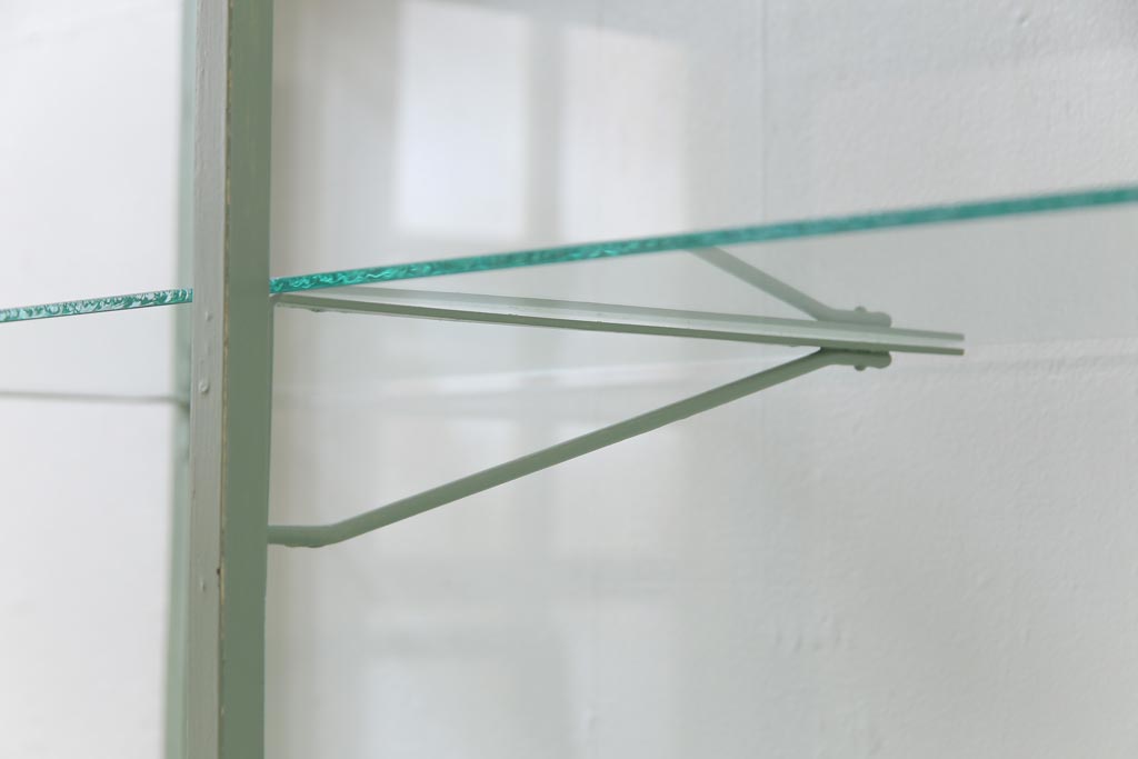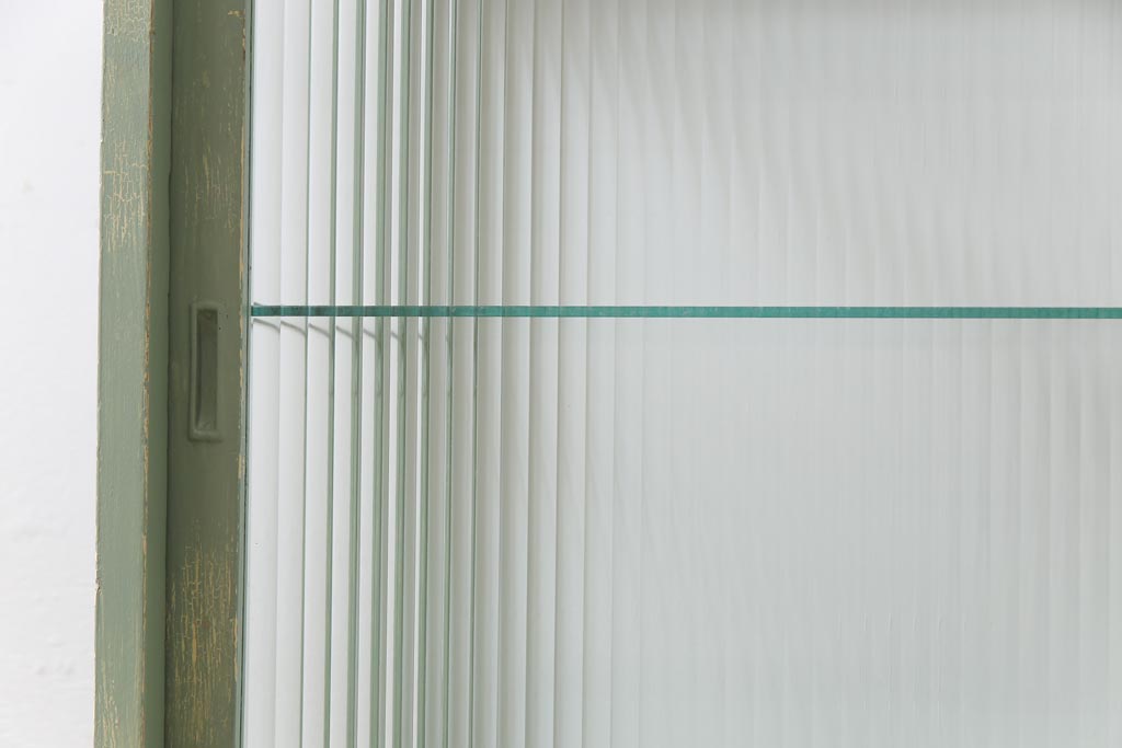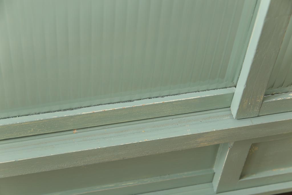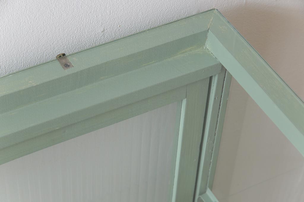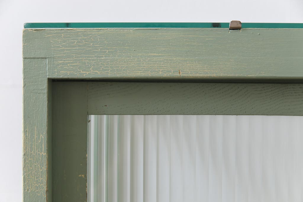 ラフジュ工房> ガラスケース・ショーケース > ペイント家具 モールガラス入り 引き戸収納付きレトロなガラスケース(ショーケース、陳列棚、飾り棚)