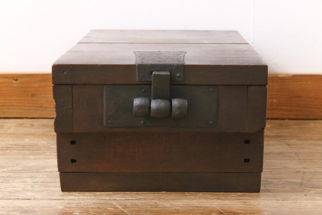 ラフジュ工房> 古道具・古民具> 銭箱 > アンティーク雑貨 和製アンティーク 明治期 素朴な和の雰囲気を漂わせる薄型の銭箱(千両箱、木箱)