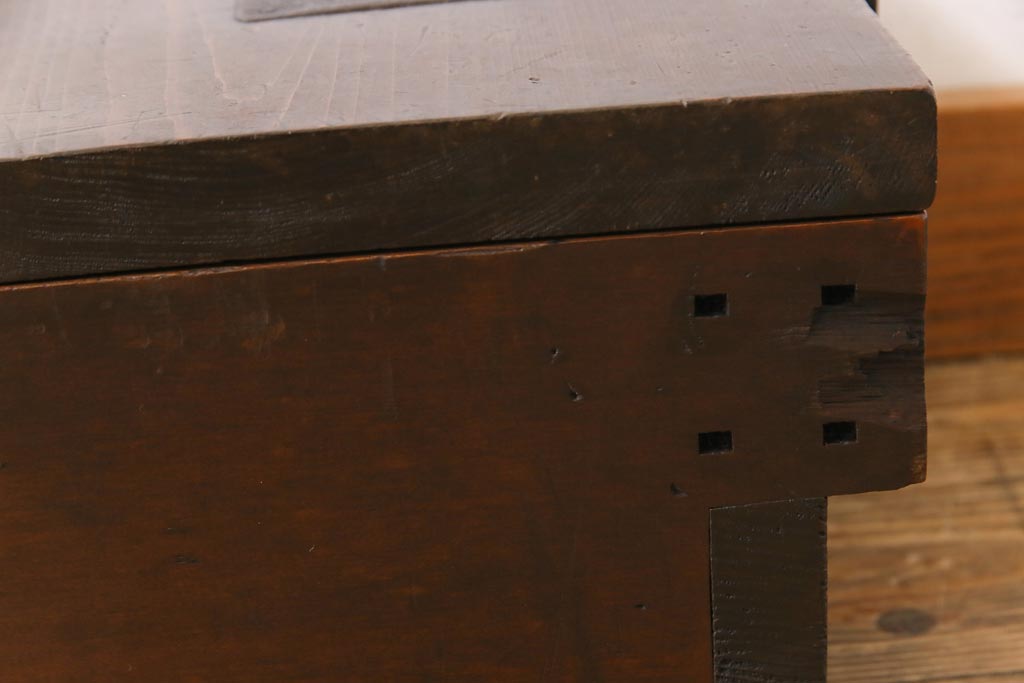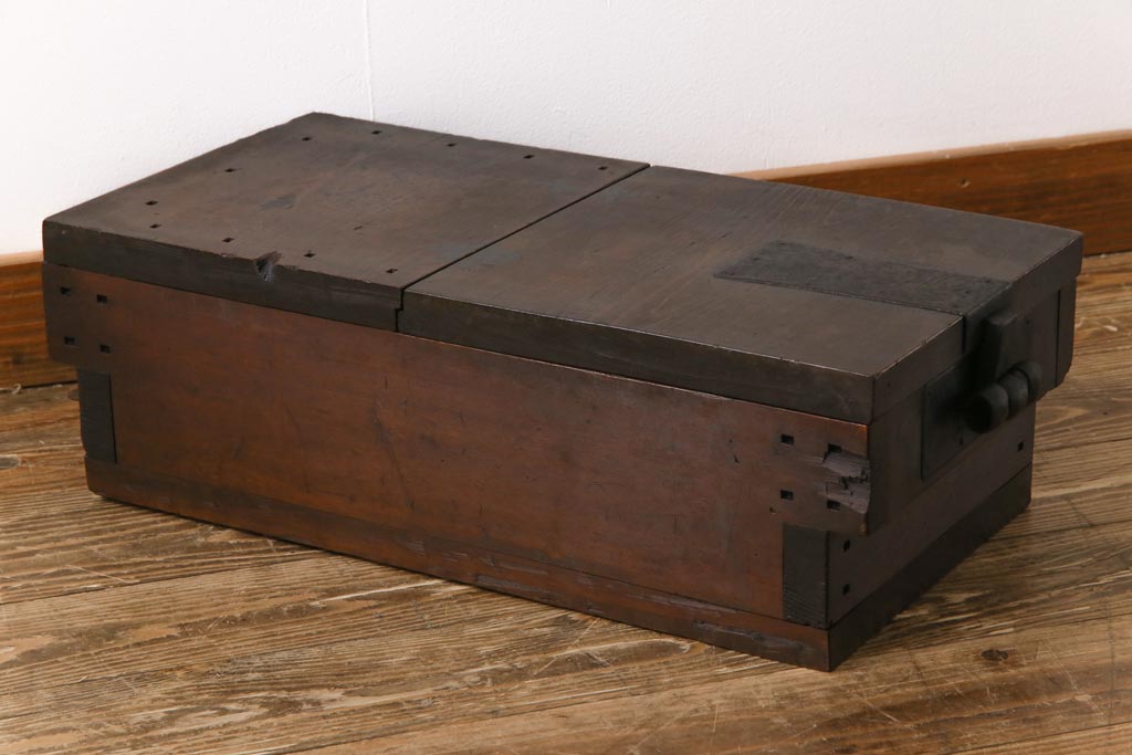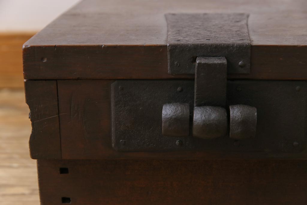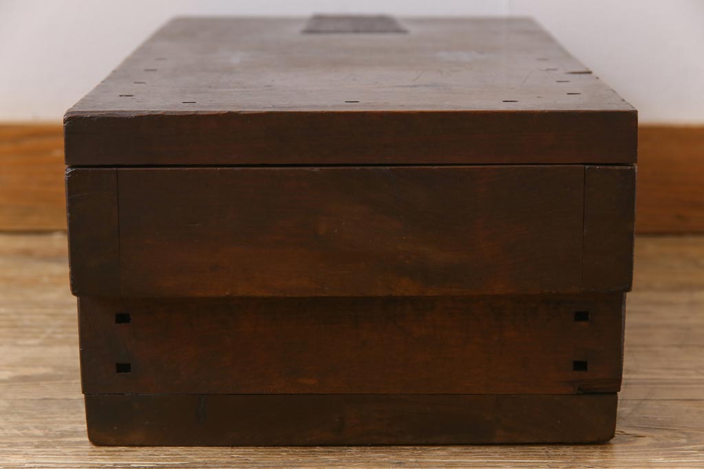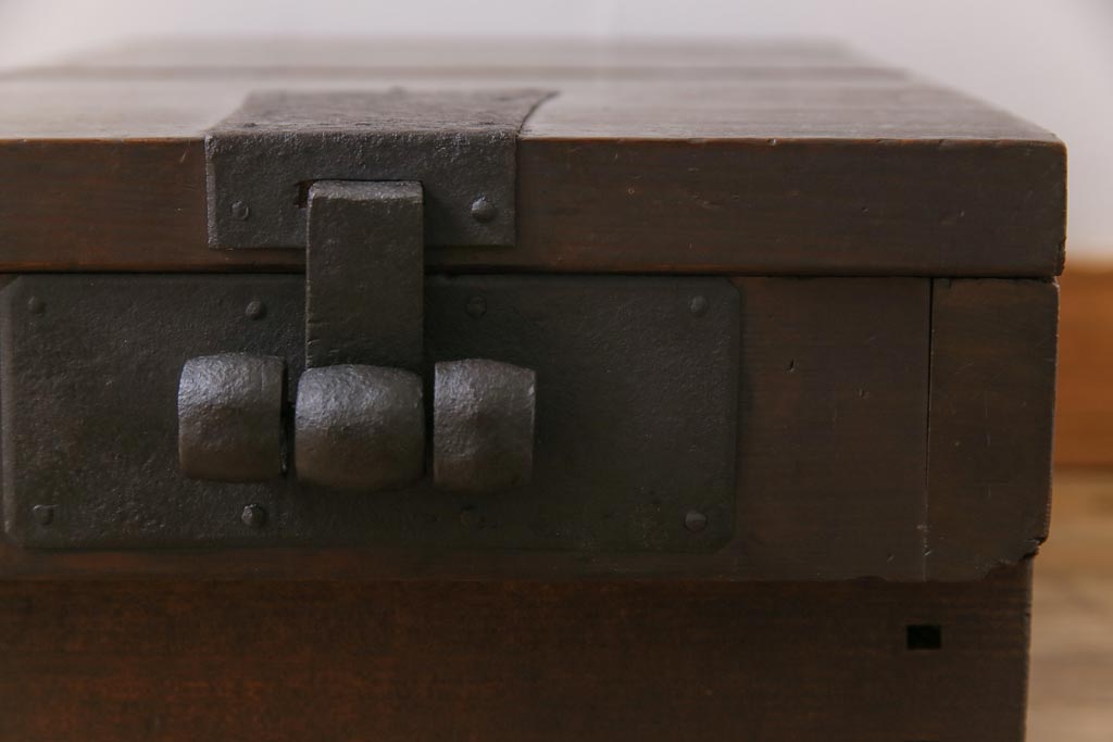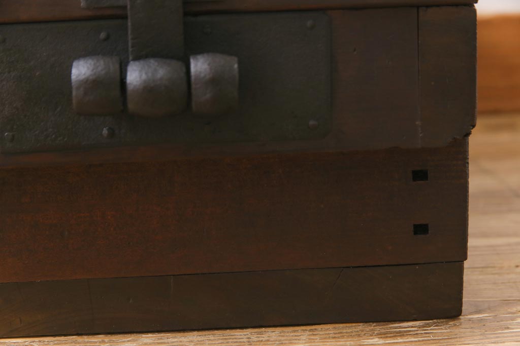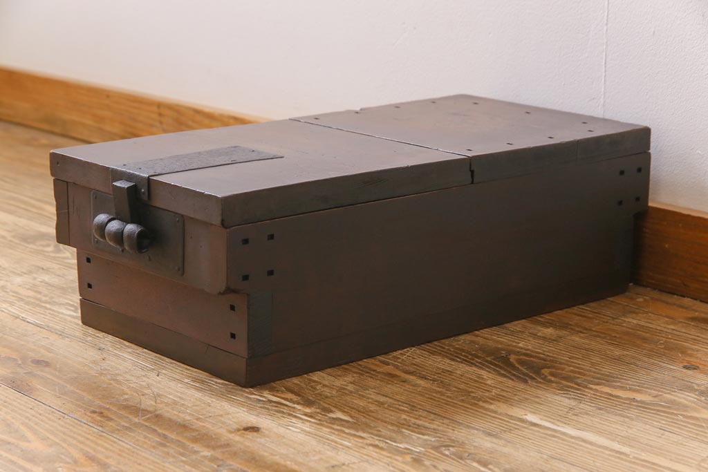 ラフジュ工房> 雑貨 > アンティーク雑貨 和製アンティーク 明治期 素朴な和の雰囲気を漂わせる薄型の銭箱(千両箱、木箱)
