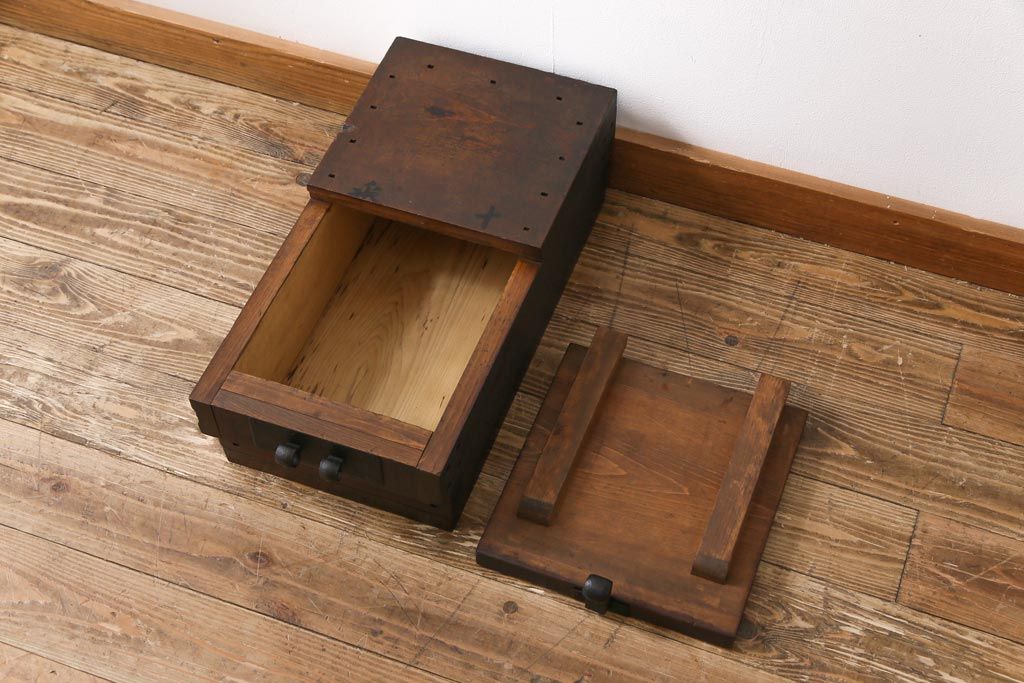 ラフジュ工房> 小物収納・トランク> 木箱 > アンティーク雑貨 和製アンティーク 明治期 素朴な和の雰囲気を漂わせる薄型の銭箱(千両箱、木箱)