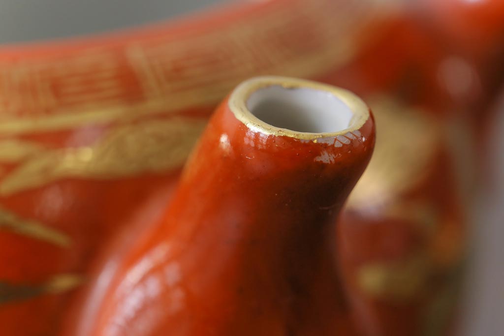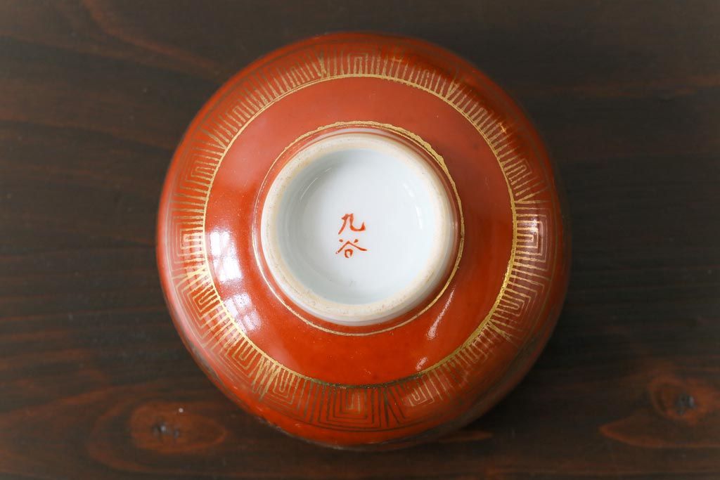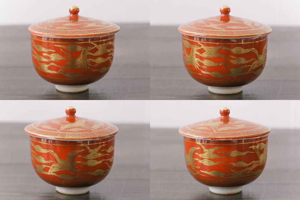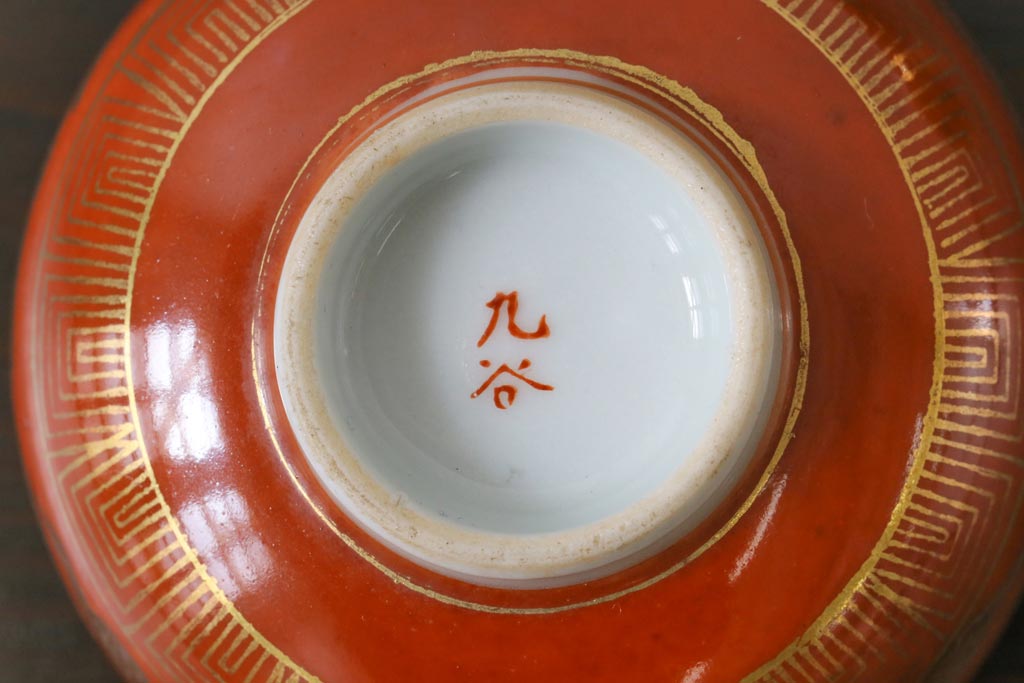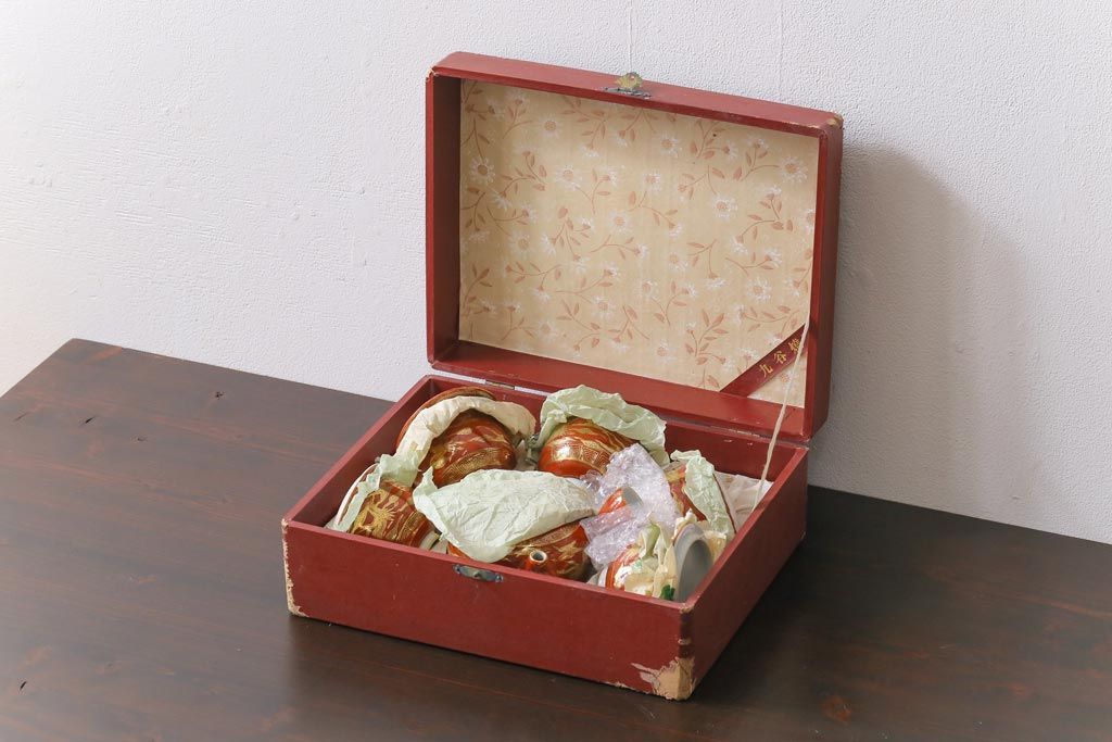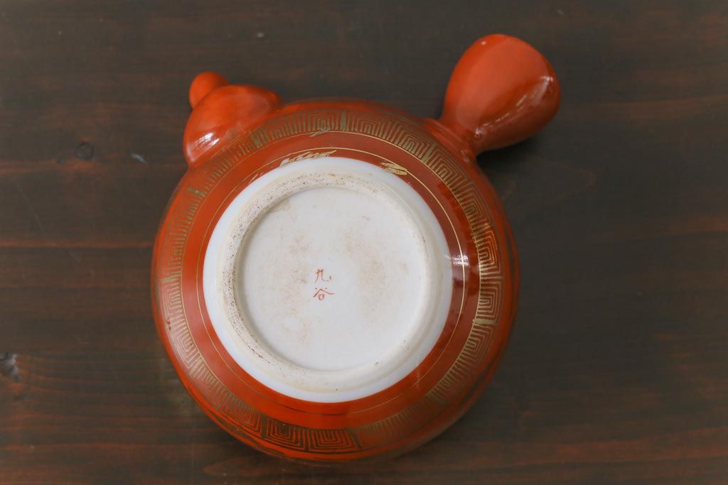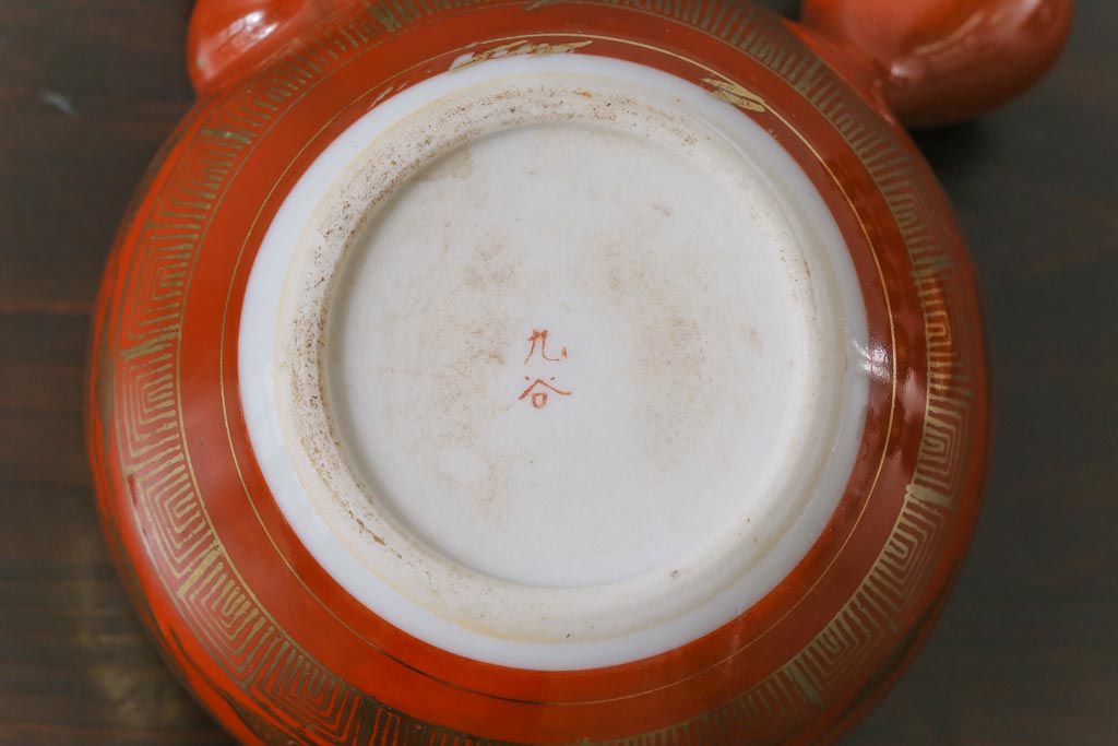 和製アンティーク 九谷赤絵 箱付き 急須・湯呑茶碗 茶器セット(九谷焼、和食器)