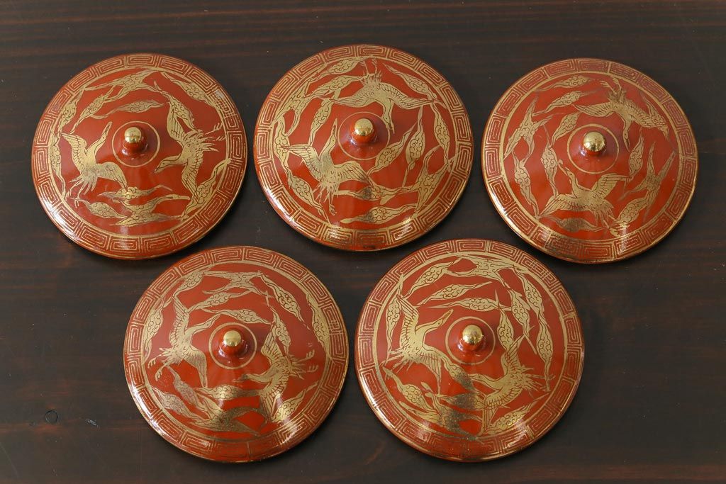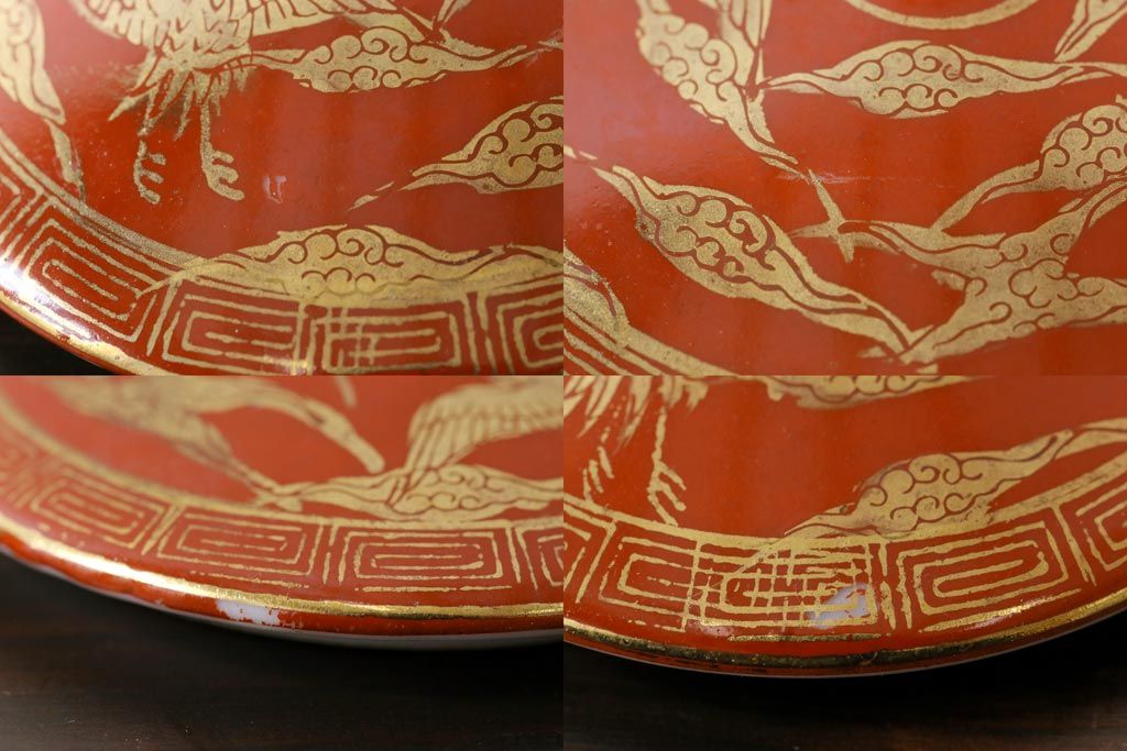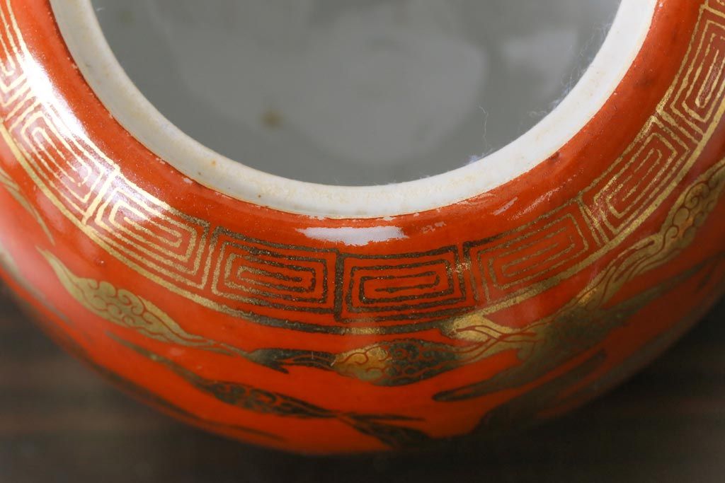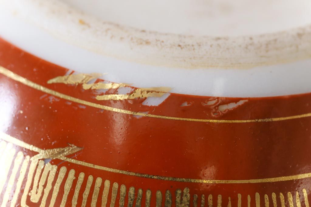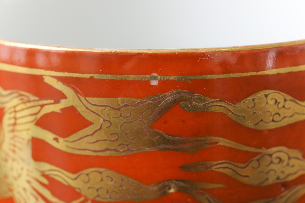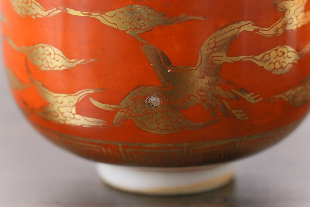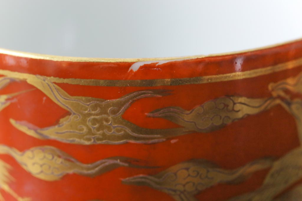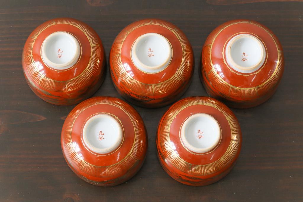 和製アンティーク 九谷赤絵 箱付き 急須・湯呑茶碗 茶器セット(九谷焼、和食器)