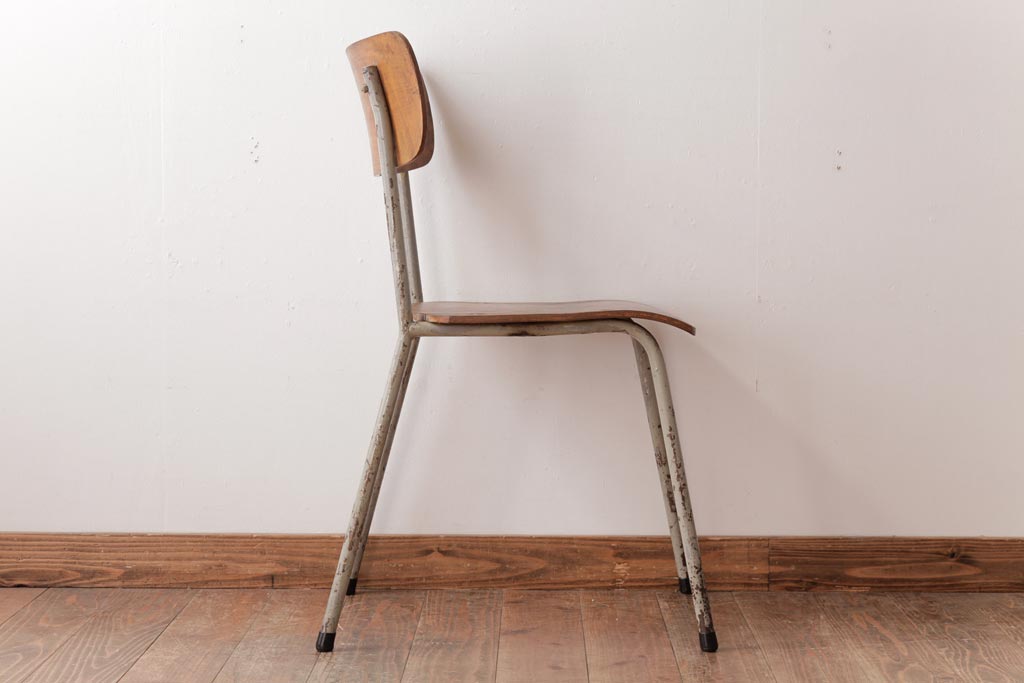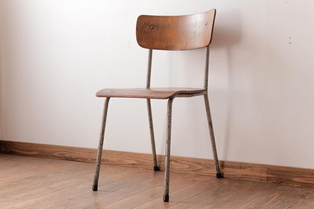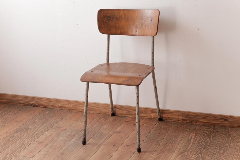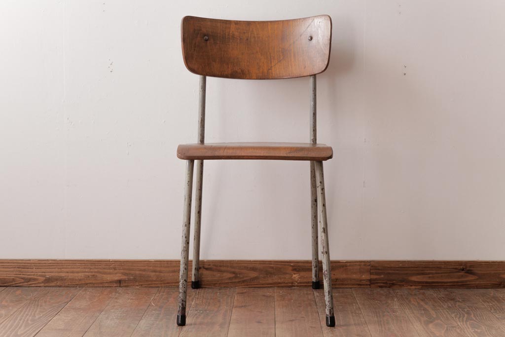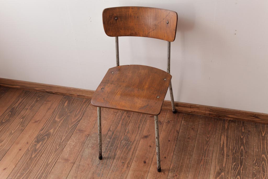 ヴィンテージ家具 イギリスビンテージ レトロな雰囲気が味のあるスクールチェア(板座チェア、ワークチェア)