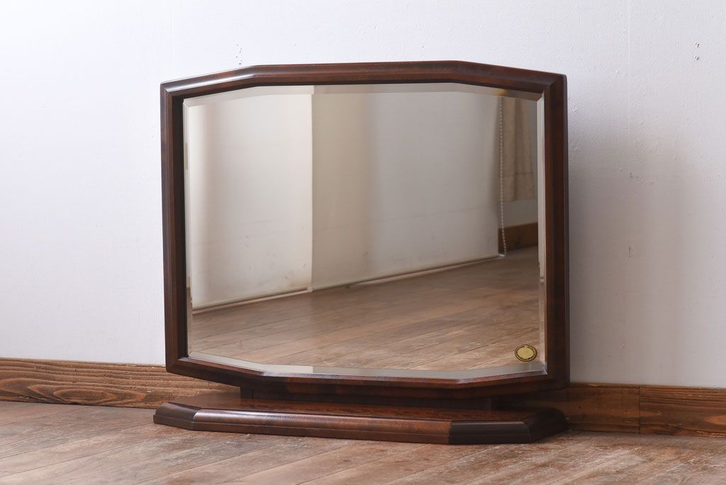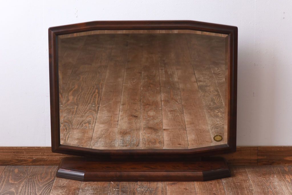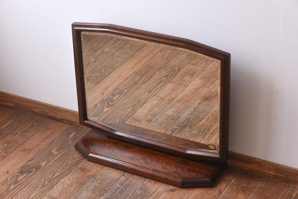 アンティーク雑貨 中古 北海道民芸家具 深みのある色合いとシンプルなデザインが魅力の#362 置き鏡(卓上ミラー、鏡)(定価約83000円)
