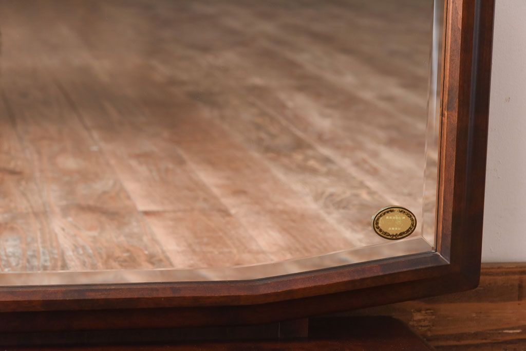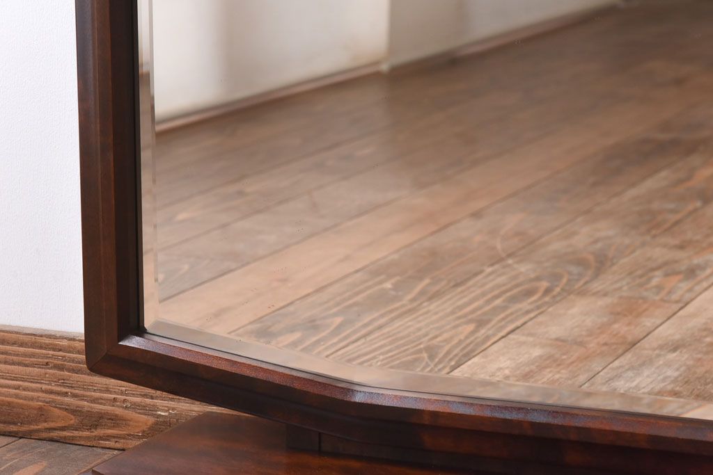 ラフジュ工房> 鏡> 卓上鏡 > アンティーク雑貨 中古 北海道民芸家具 深みのある色合いとシンプルなデザインが魅力の#362 置き鏡(卓上ミラー、鏡)(定価約83000円)