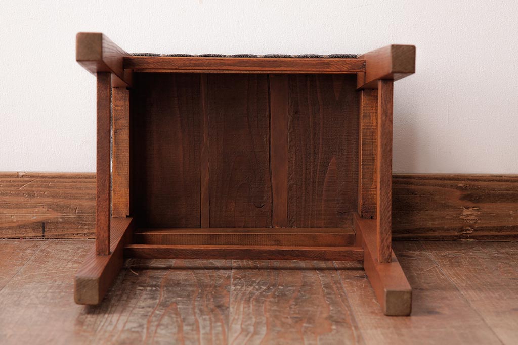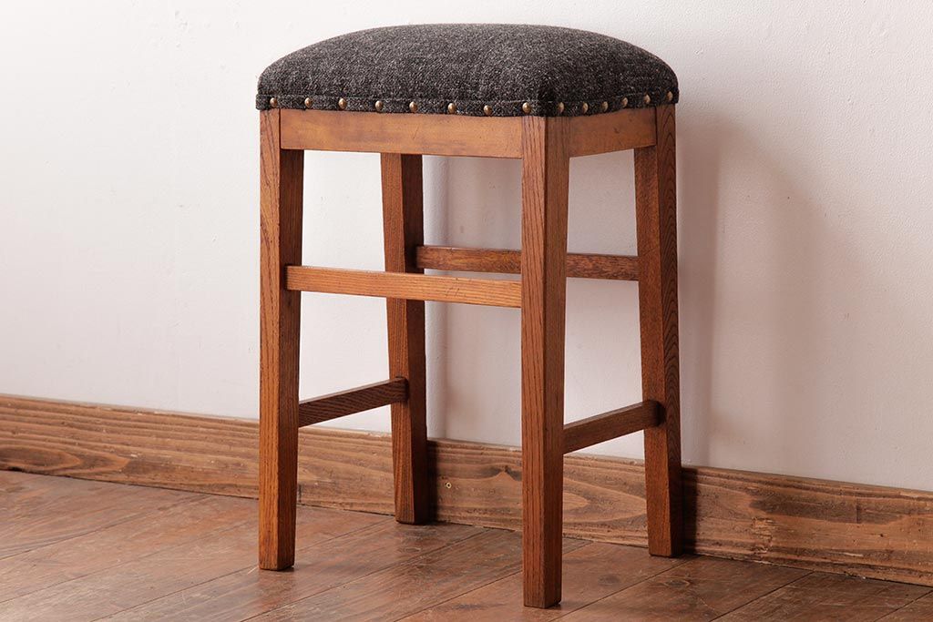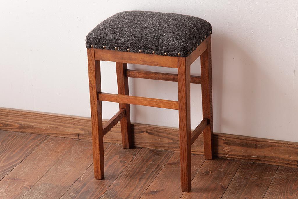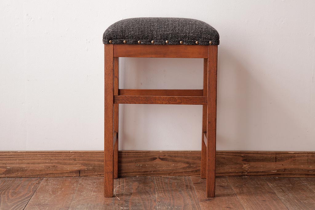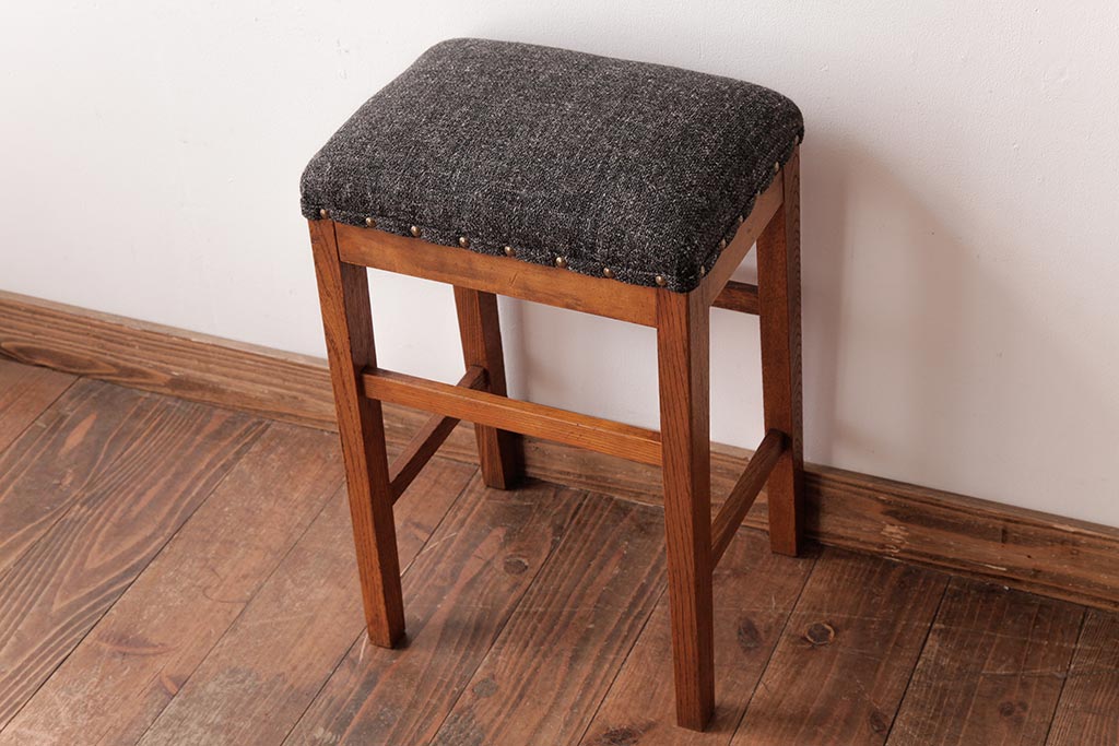 レトロ家具 昭和レトロ ケヤキ材 メンズライクにもおすすめなグレーのファブリックのスツール(椅子)