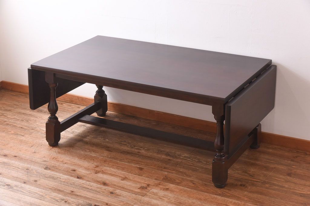 中古 松本民芸家具 特注品 シックなL・T型卓(バタフライテーブル、ダイニングテーブル)