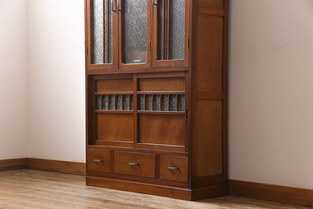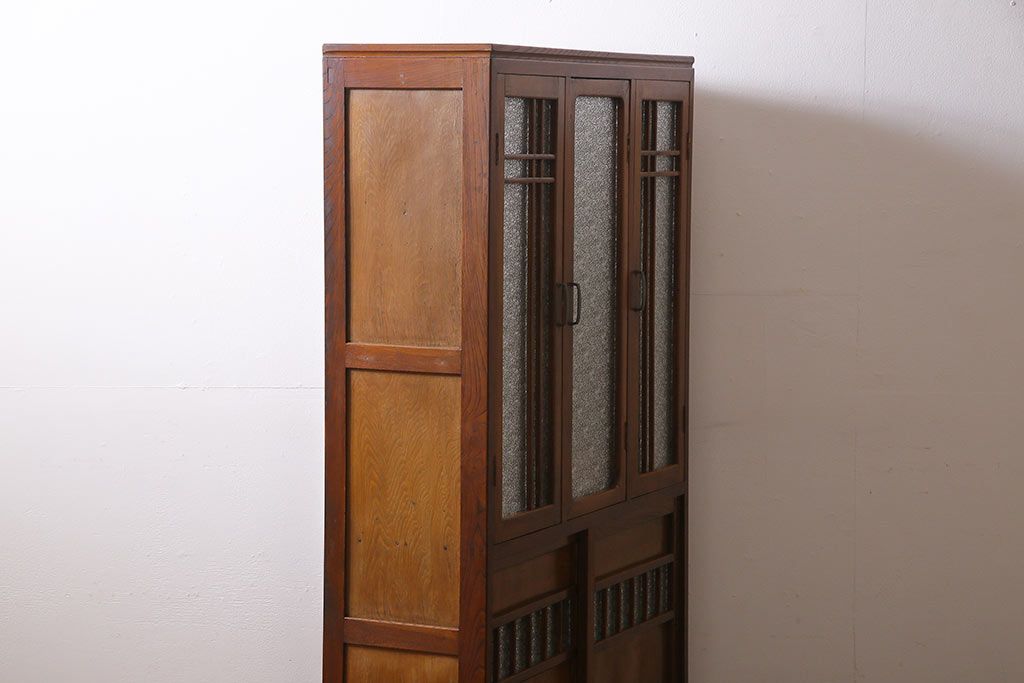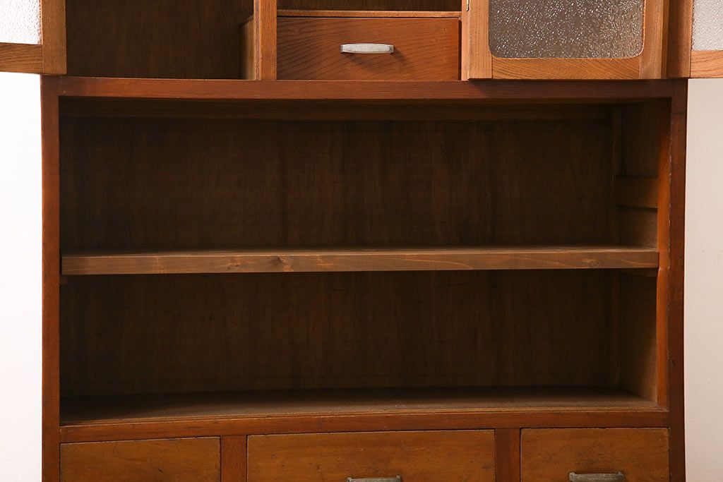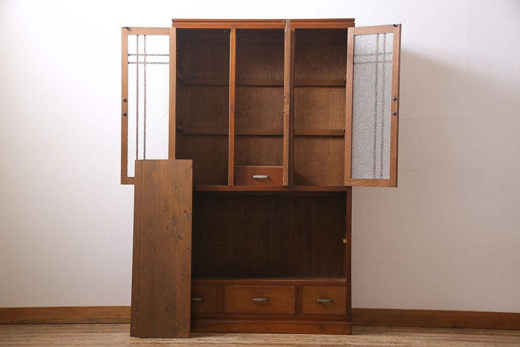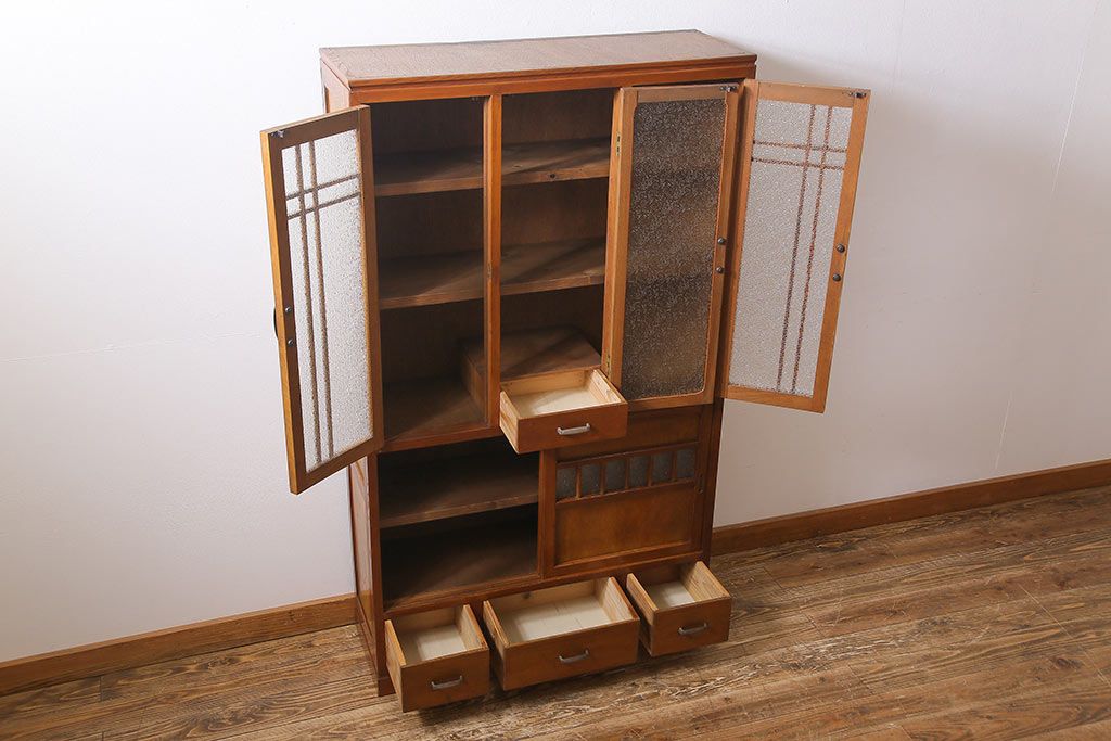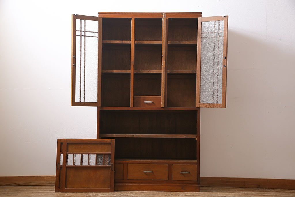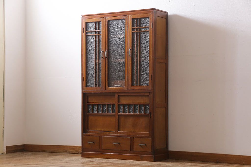 ラフジュ工房> キャビネット・戸棚> 食器棚・カップボード > レトロ家具 昭和レトロ ダイヤガラス入り 懐かしい情緒あふれる食器棚(カップボード、収納棚)