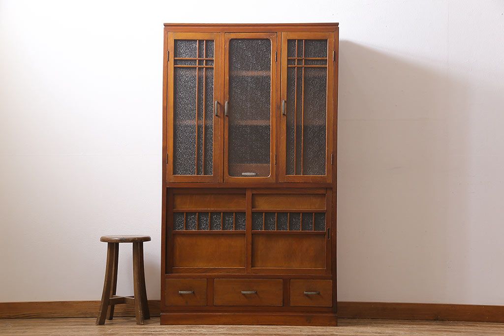 レトロ家具 昭和レトロ ダイヤガラス入り 懐かしい情緒あふれる食器棚(カップボード、収納棚)