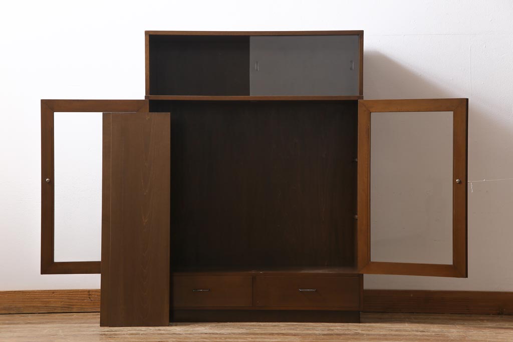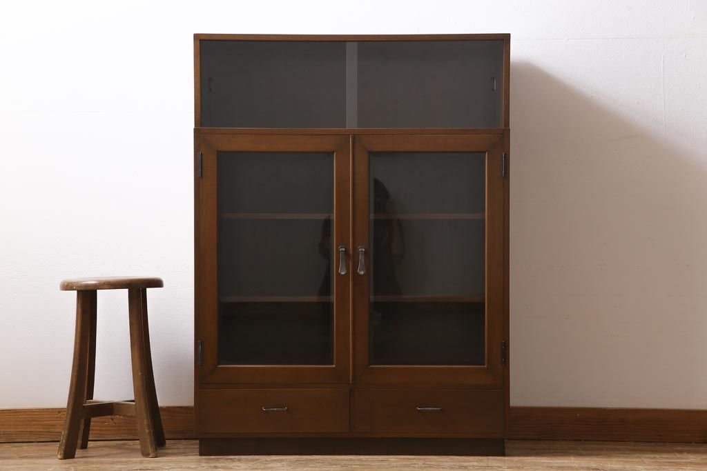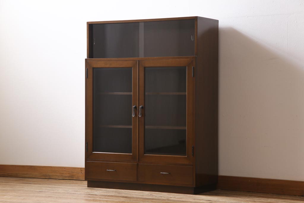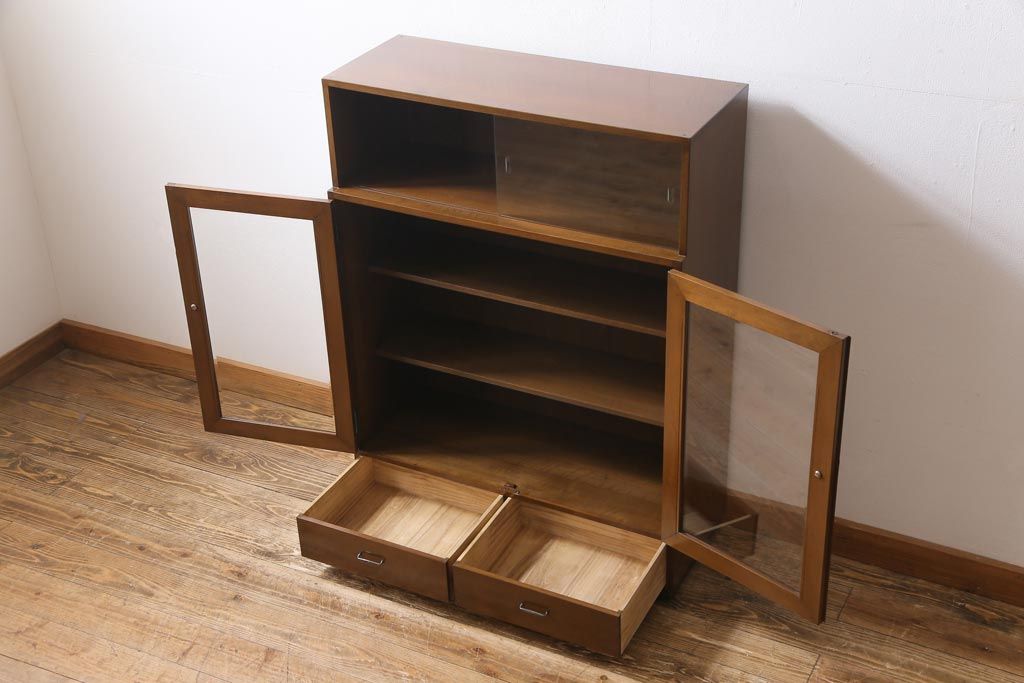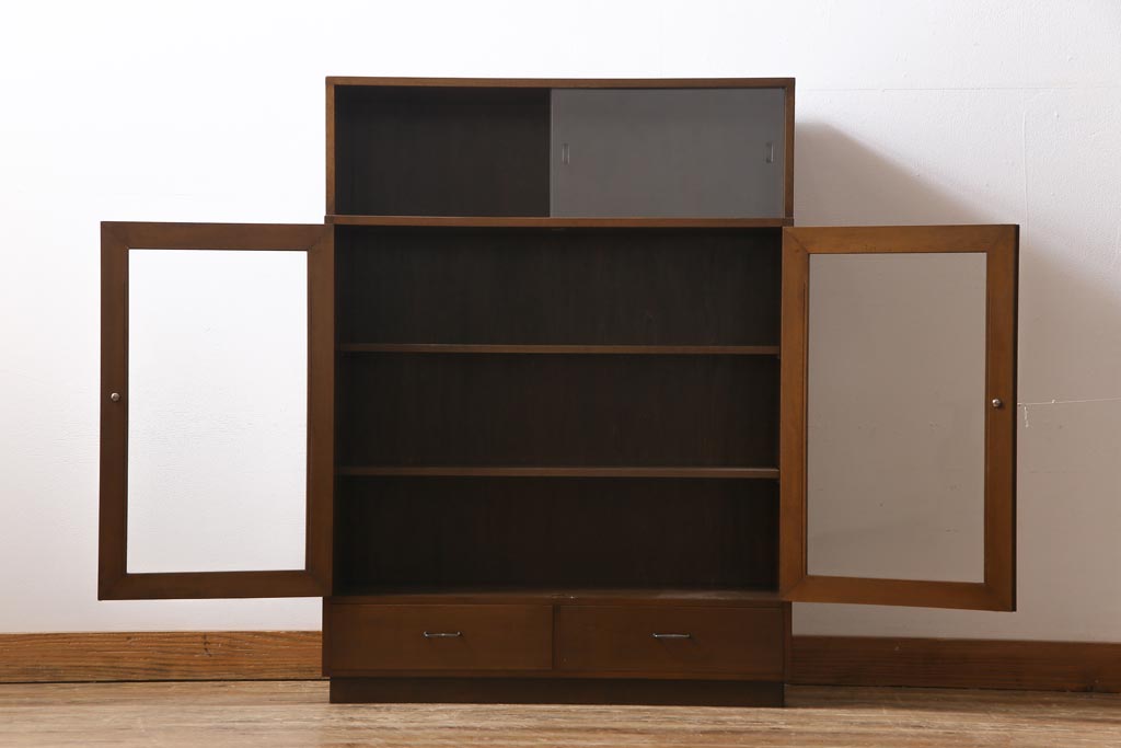 ヴィンテージ家具 ビンテージ カバ材 シンプルモダンなデザインがシックな雰囲気漂うブックケース(キャビネット、収納棚、本箱)