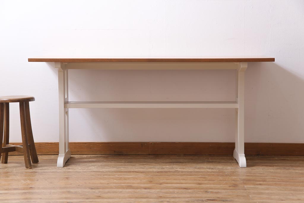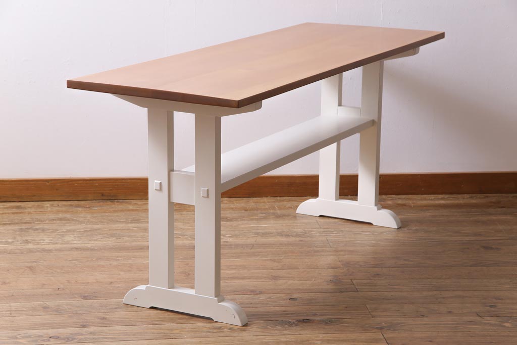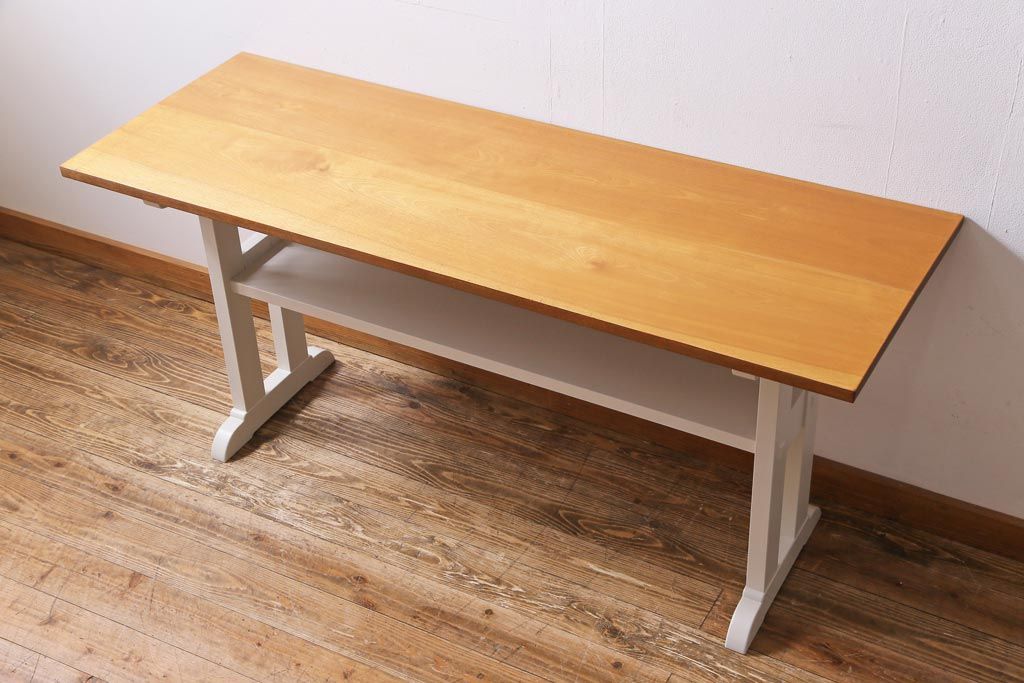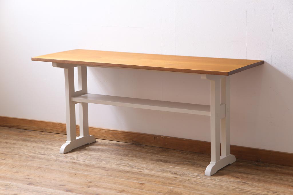 ペイント家具 ビンテージ 桜無垢材 柔和な雰囲気が魅力的なサイドテーブル(作業台、飾り台、コンソールテーブル)(R-032585)