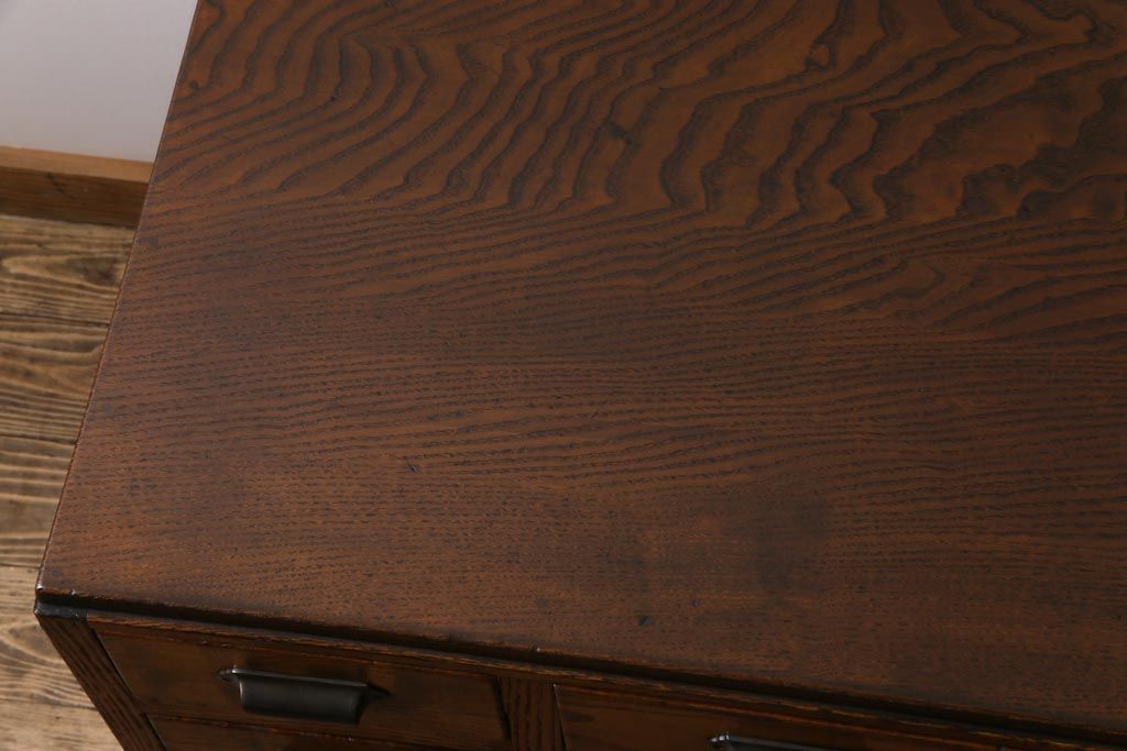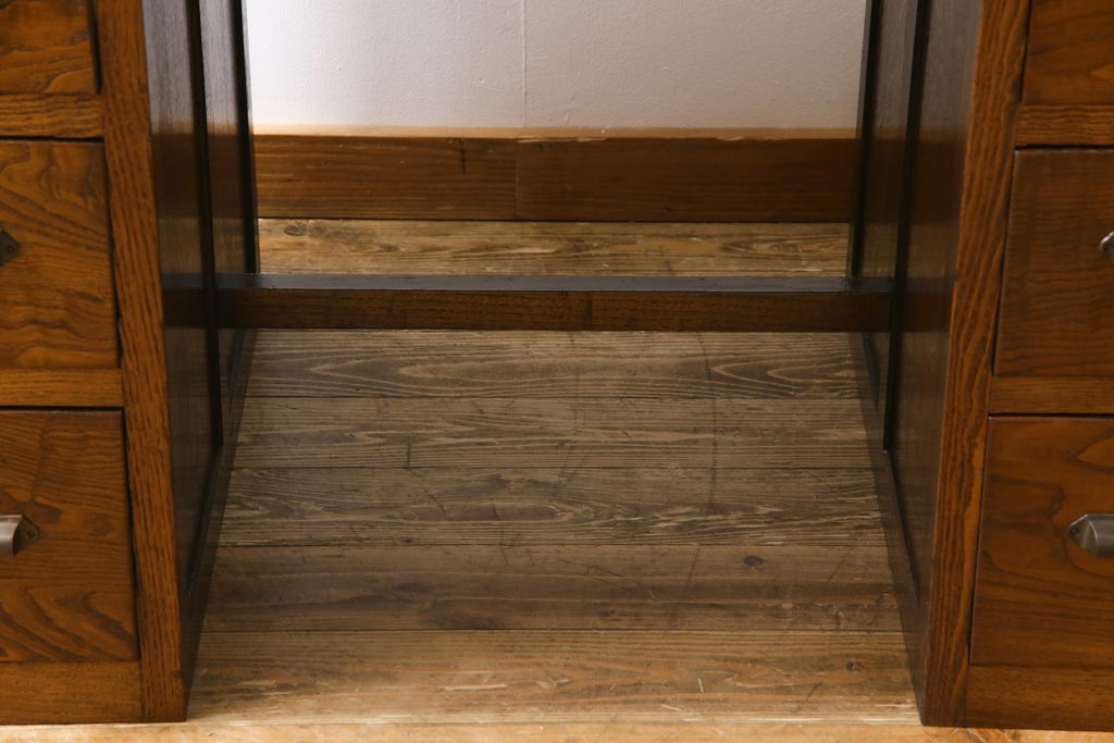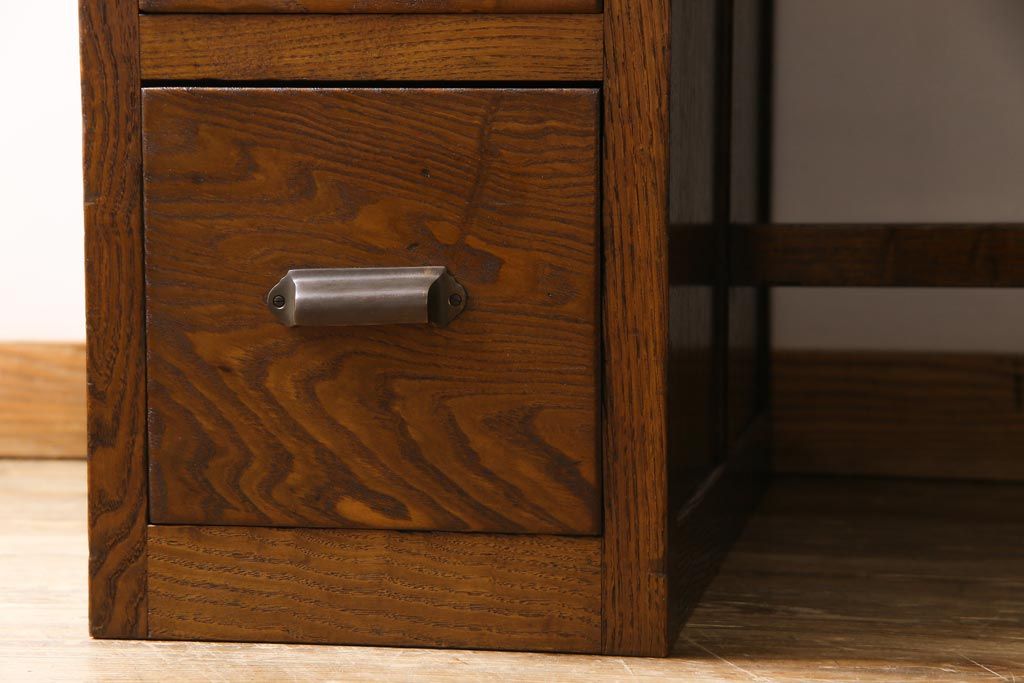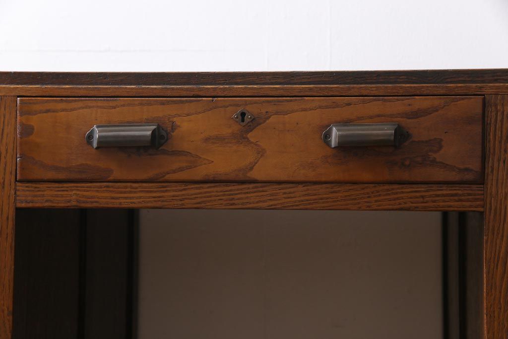 ラフジュ工房> テーブル> 作業台 > アンティーク家具 昭和初期 栗材 天板一枚板 ダイナミックな木目が目を引く小振りのワークデスク(両袖机、在宅ワーク、在宅用)