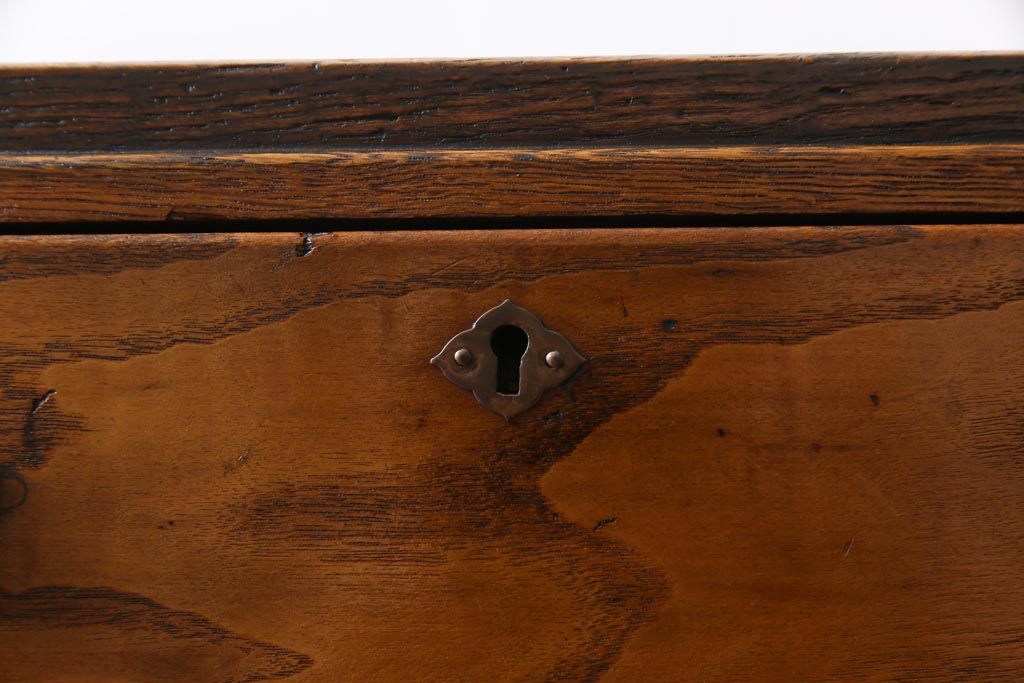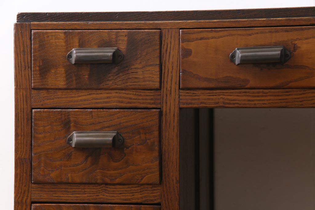ラフジュ工房> デスク> 片袖机・両袖机 > アンティーク家具 昭和初期 栗材 天板一枚板 ダイナミックな木目が目を引く小振りのワークデスク(両袖机、在宅ワーク、在宅用)