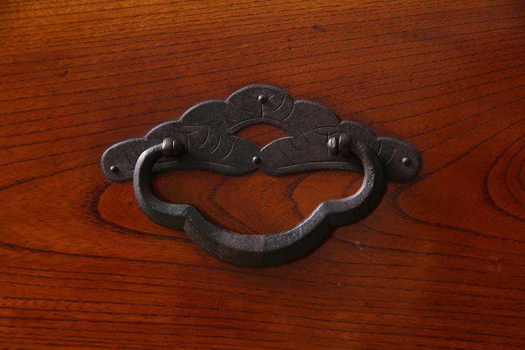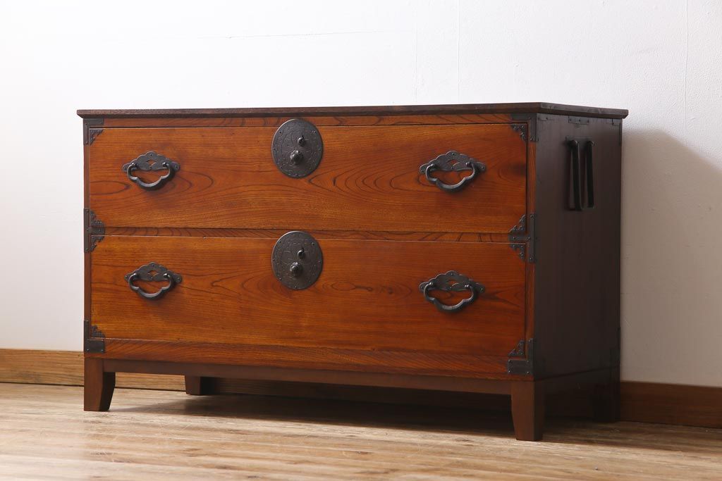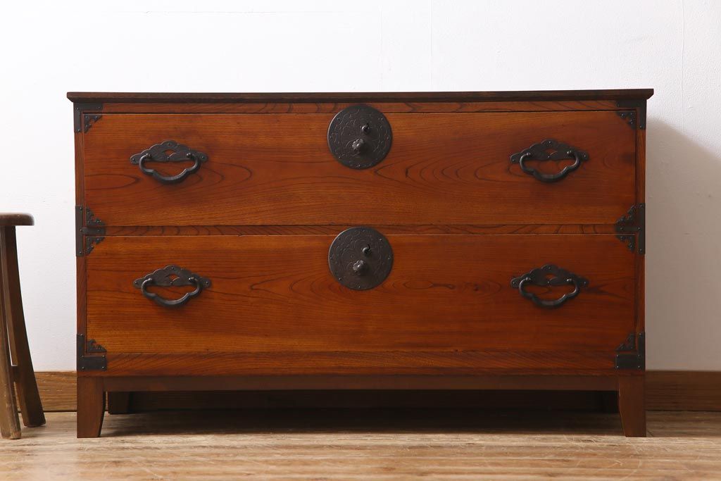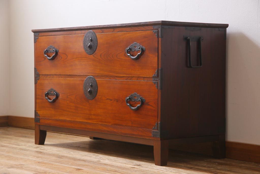アンティーク家具 和製アンティーク リメイク 桜丸金具 黒い金具がアクセントの米沢箪笥ローボード(ローチェスト、引き出し、和タンス)