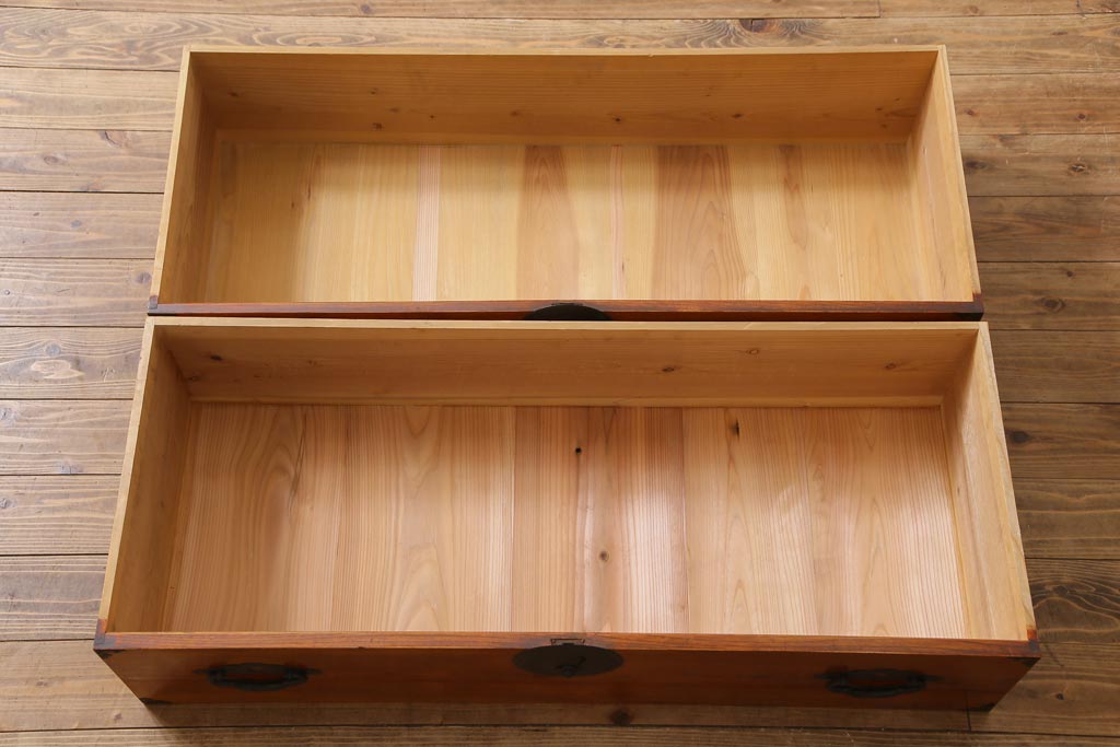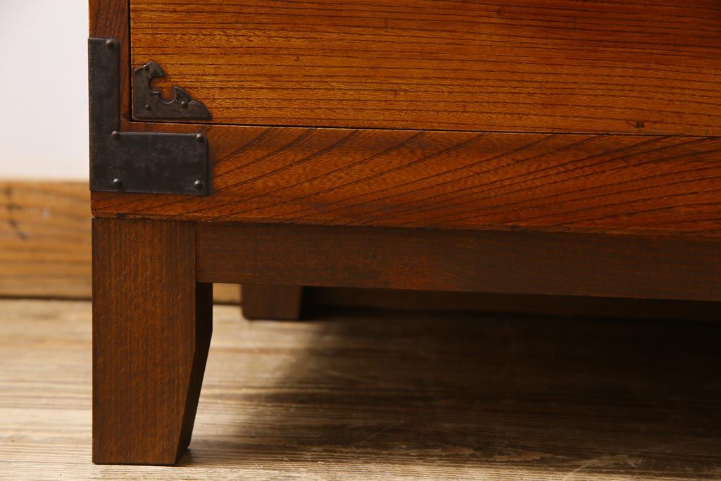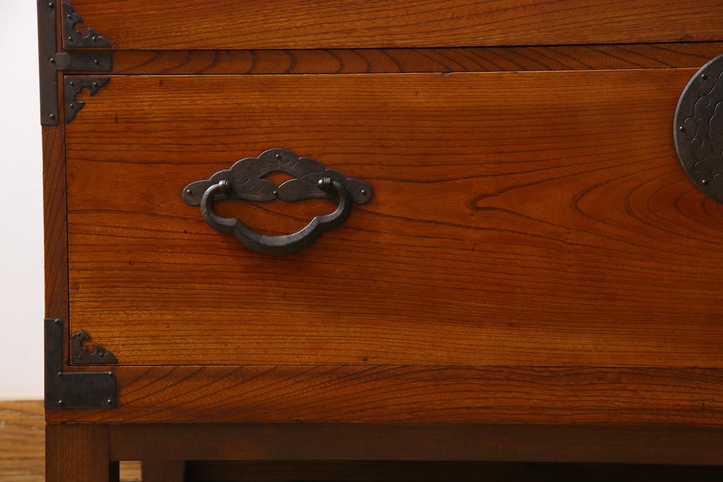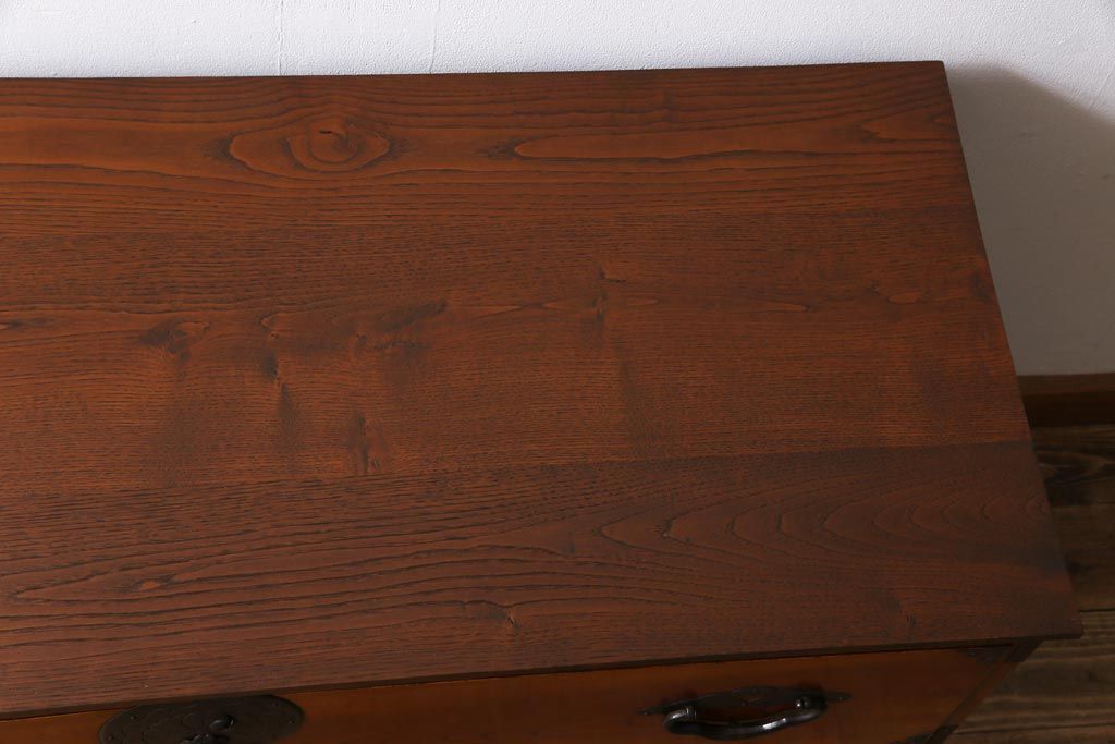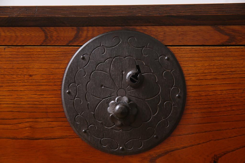 アンティーク家具 和製アンティーク リメイク 桜丸金具 黒い金具がアクセントの米沢箪笥ローボード(ローチェスト、引き出し、和タンス)