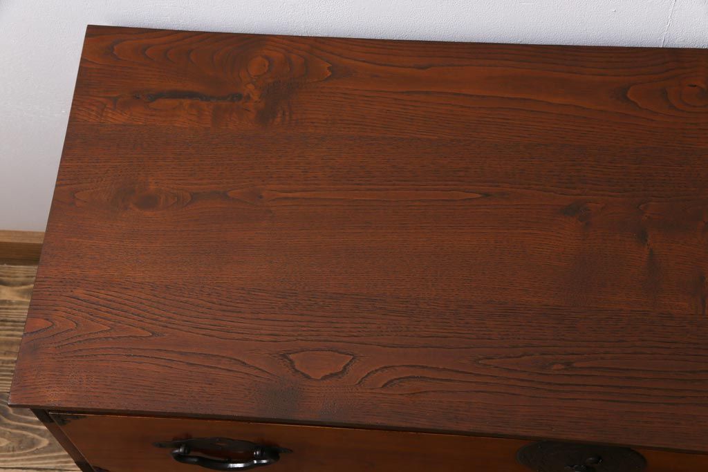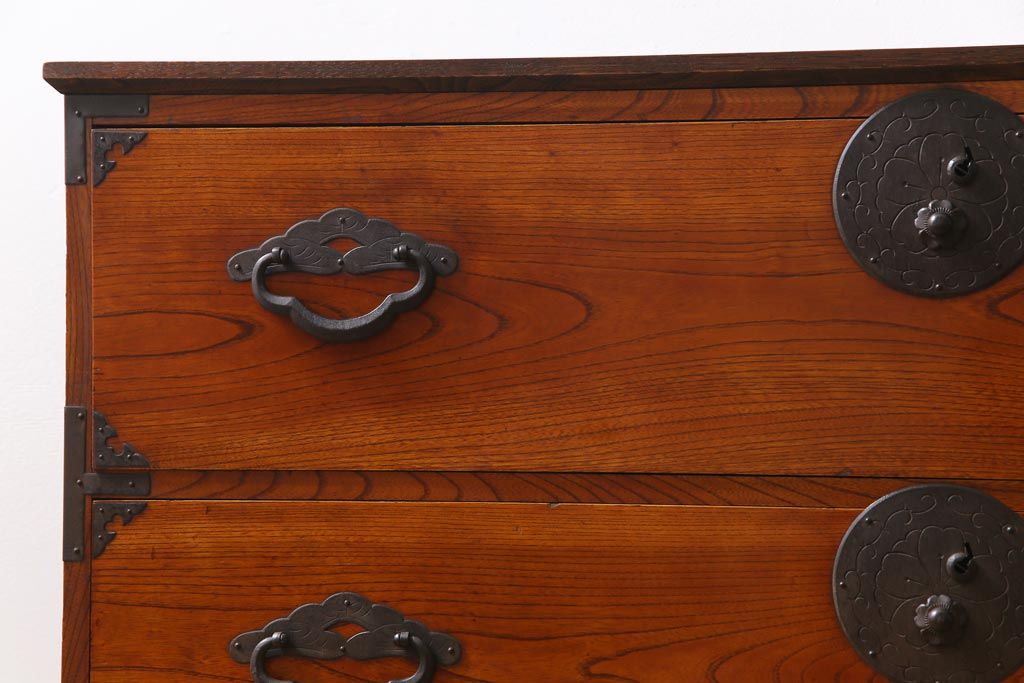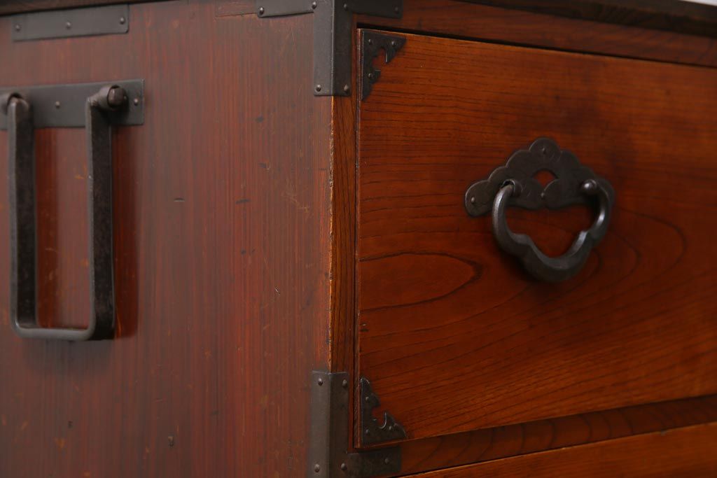 ラフジュ工房> 和箪笥 > アンティーク家具 和製アンティーク リメイク 桜丸金具 黒い金具がアクセントの米沢箪笥ローボード(ローチェスト、引き出し、和タンス)