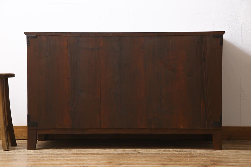 ラフジュ工房> 和箪笥> 衣装箪笥 > アンティーク家具 和製アンティーク リメイク 桜丸金具 黒い金具がアクセントの米沢箪笥ローボード(ローチェスト、引き出し、和タンス)