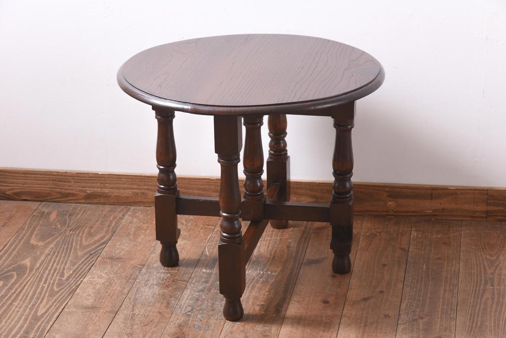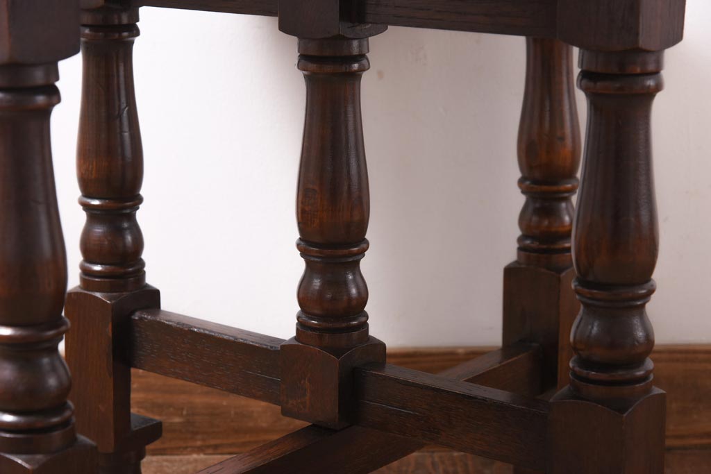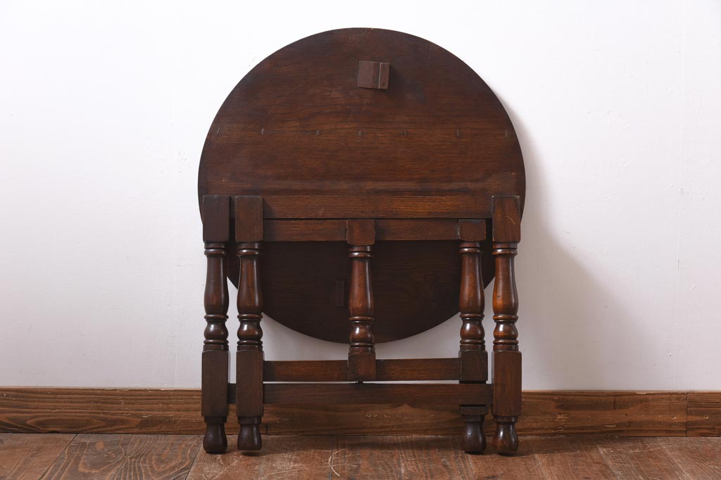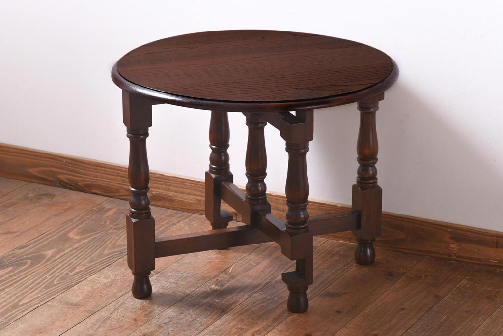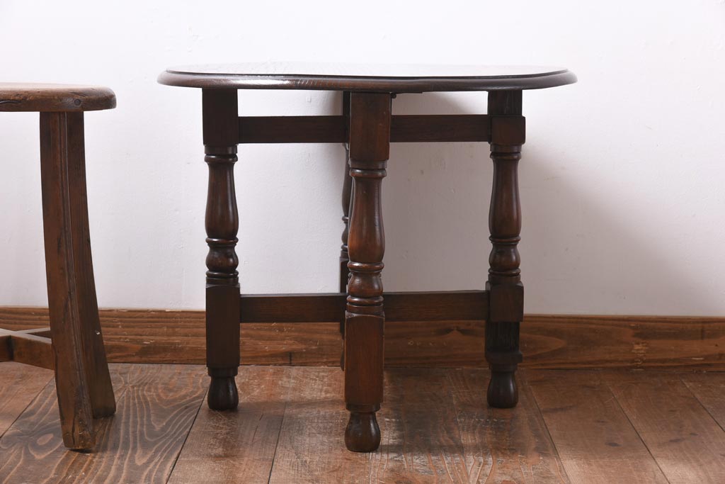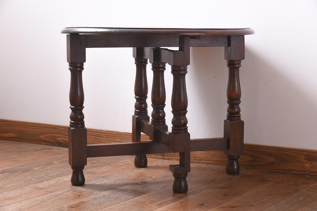 ラフジュ工房> テーブル> おりたたみテーブル > ヴィンテージ家具 イギリスビンテージ オーク材 シックな意匠が目を引く折り畳み式サイドテーブル(コーヒーテーブル、花台)