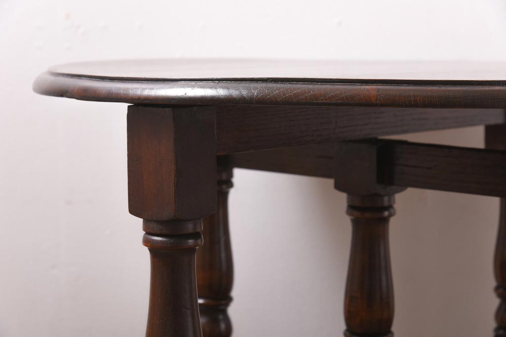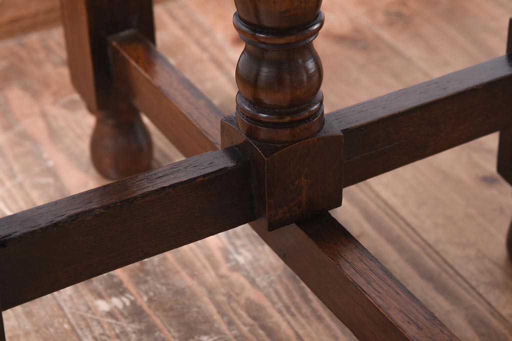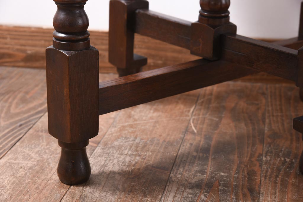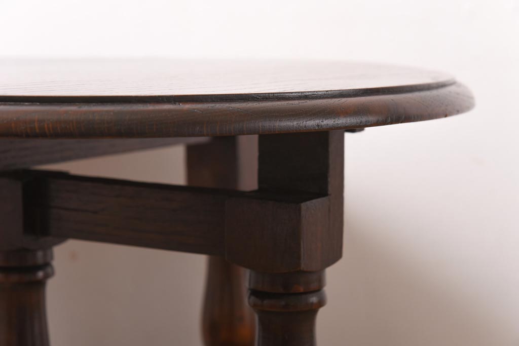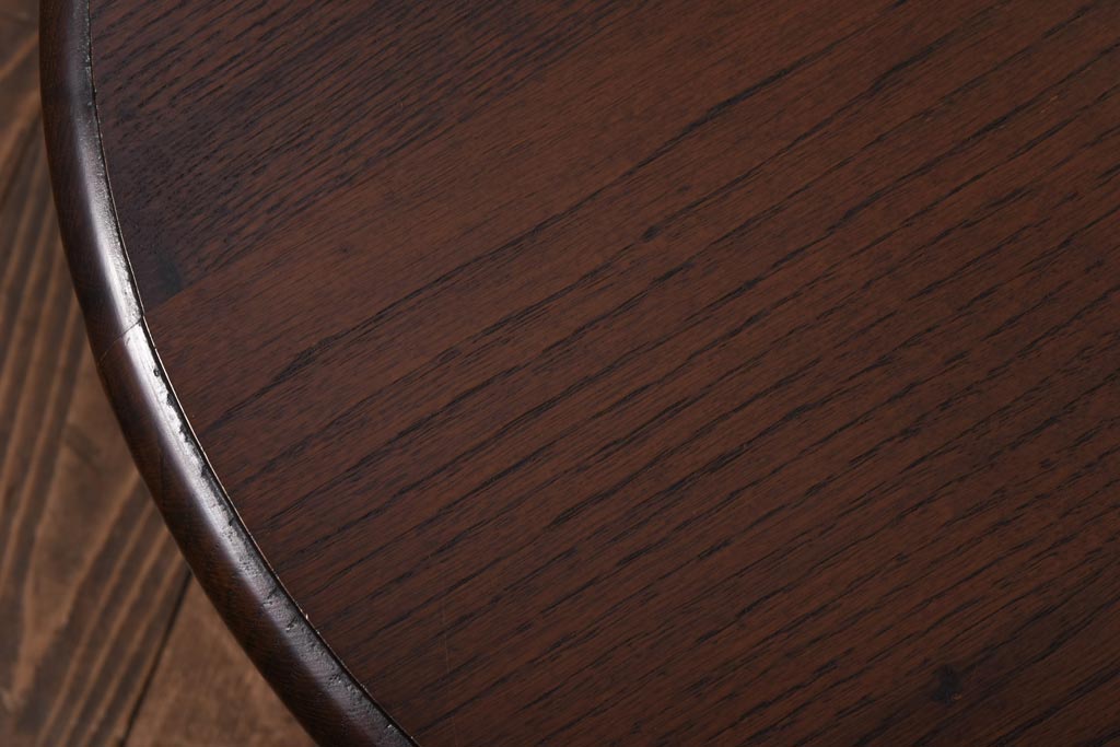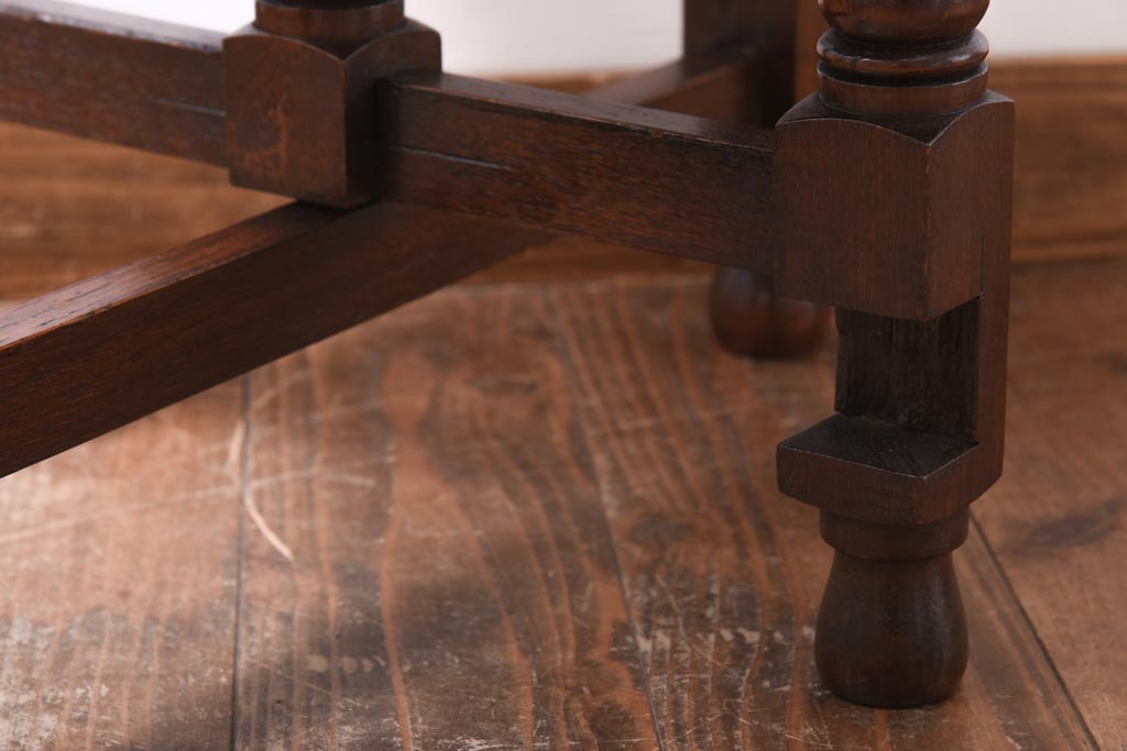 ラフジュ工房> テーブル> おりたたみテーブル > ヴィンテージ家具 イギリスビンテージ オーク材 シックな意匠が目を引く折り畳み式サイドテーブル(コーヒーテーブル、花台)