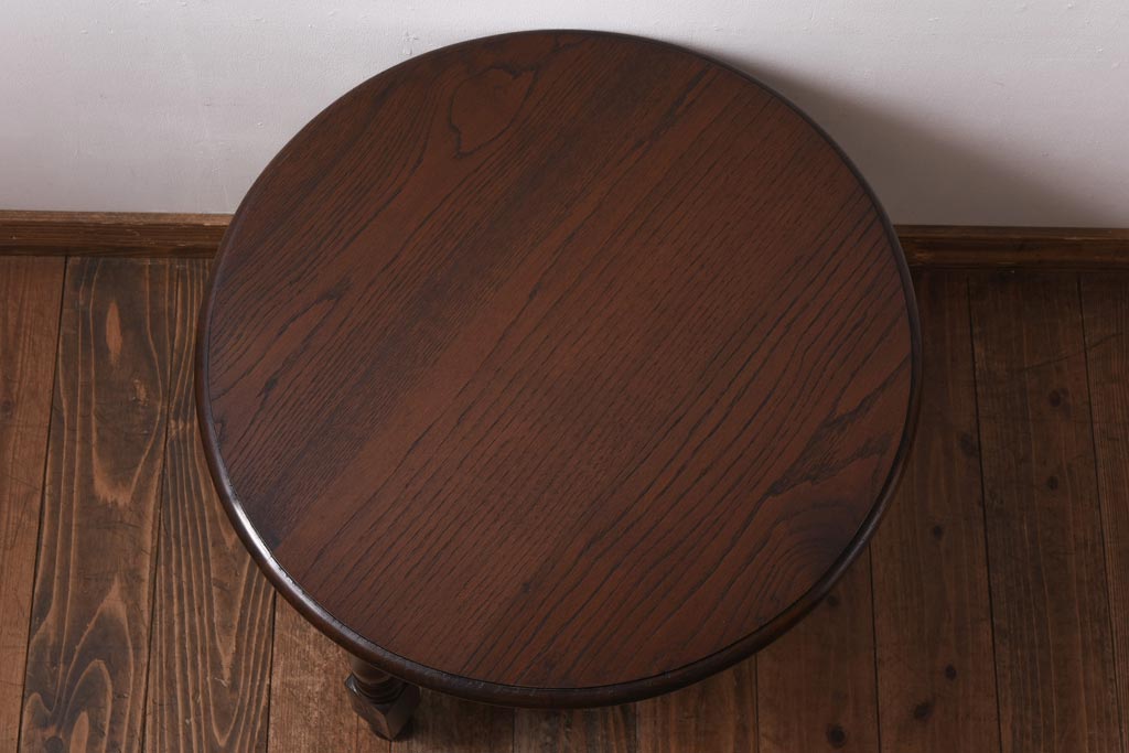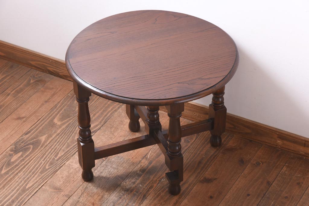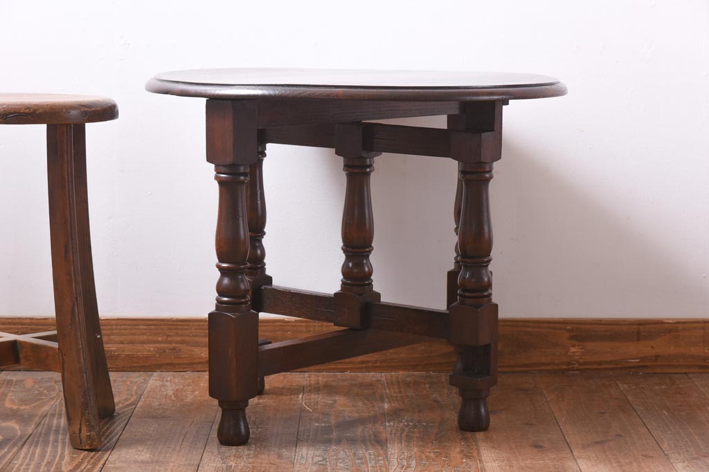 ラフジュ工房> テーブル> サイドテーブル > ヴィンテージ家具 イギリスビンテージ オーク材 シックな意匠が目を引く折り畳み式サイドテーブル(コーヒーテーブル、花台)