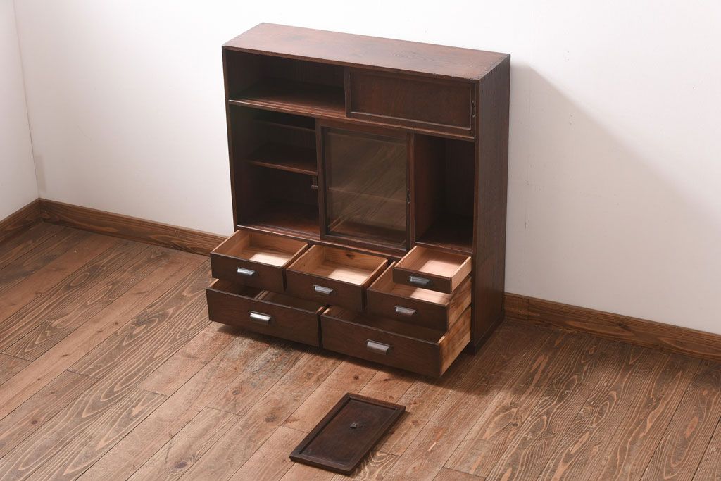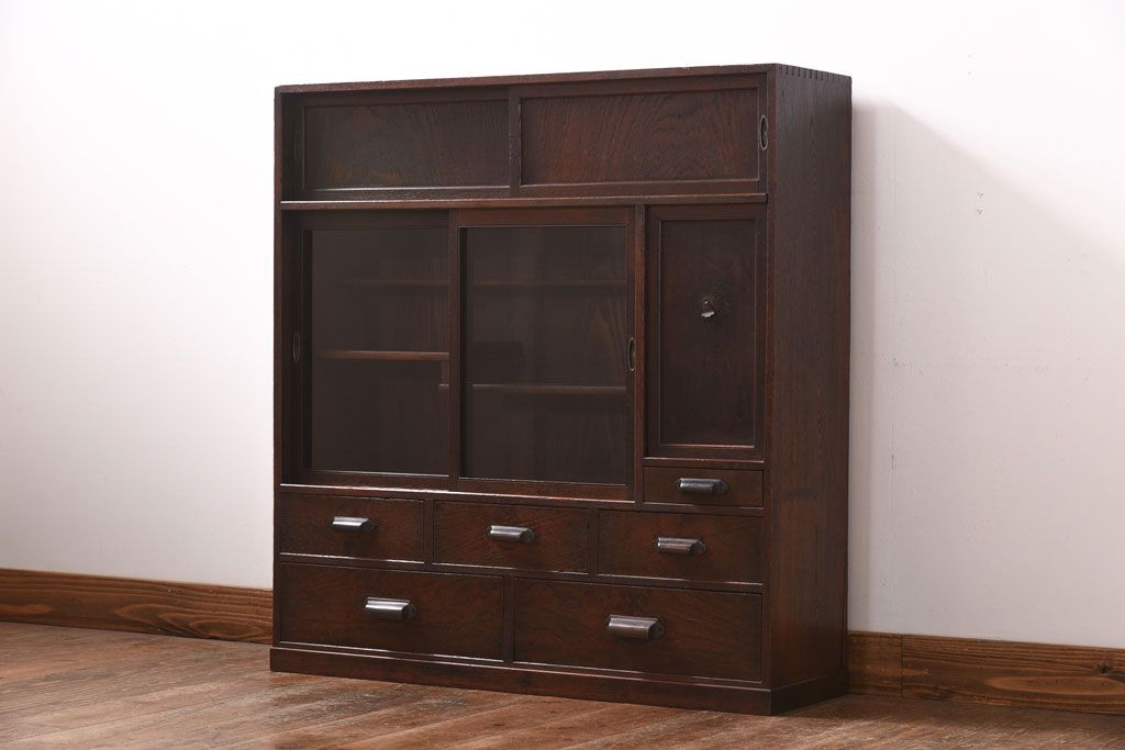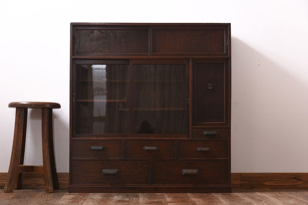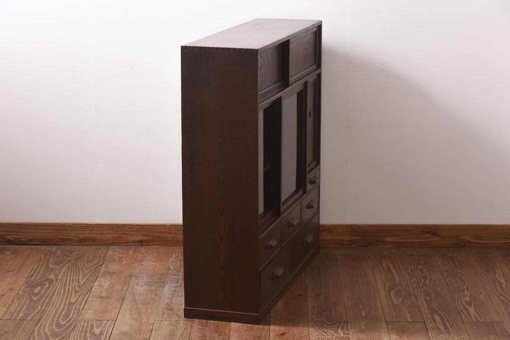 アンティーク家具 和製アンティーク 三方ケヤキ材 上品な和の趣きあふれる茶箪笥(収納棚、飾り棚)