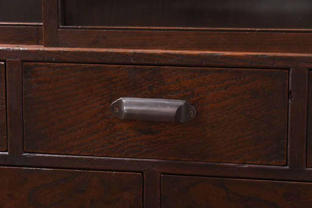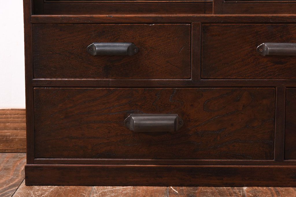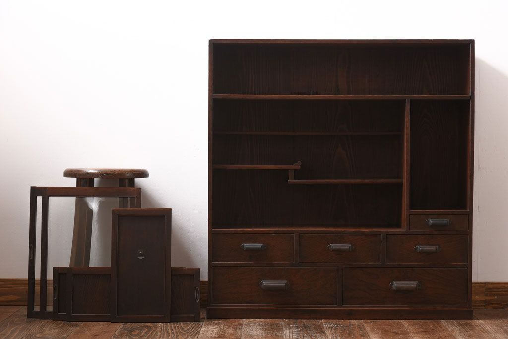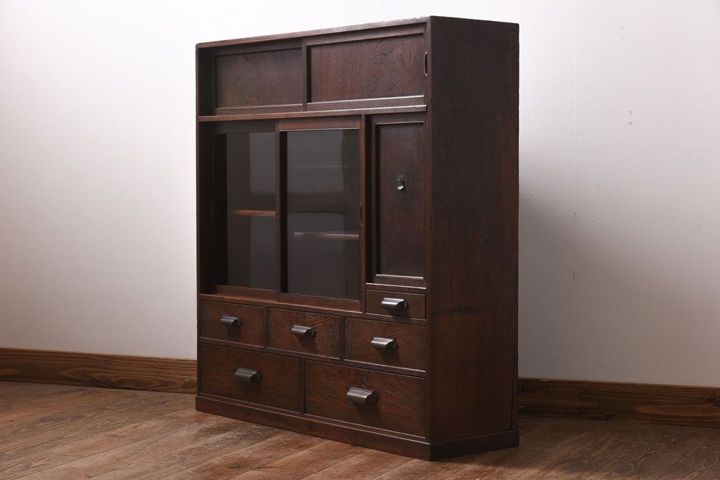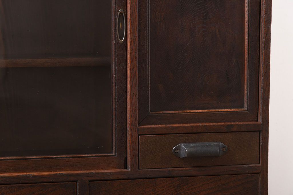 アンティーク家具 和製アンティーク 三方ケヤキ材 上品な和の趣きあふれる茶箪笥(収納棚、飾り棚)