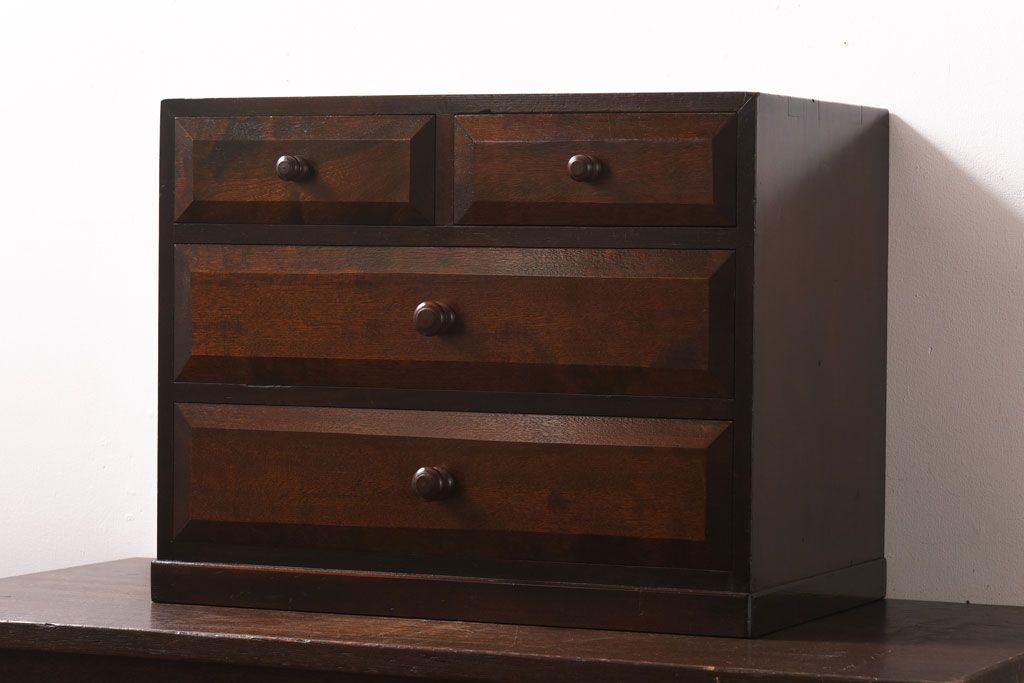 アンティーク雑貨 中古 松本民芸家具 立体的なデザインが魅力の凸面小抽出(小引き出し、卓上収納)