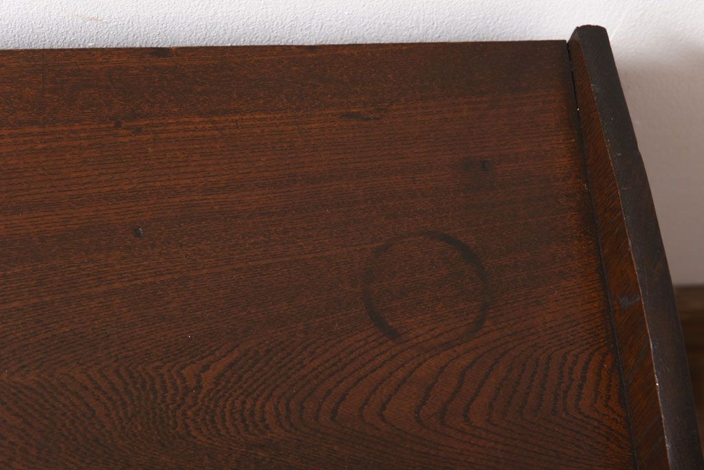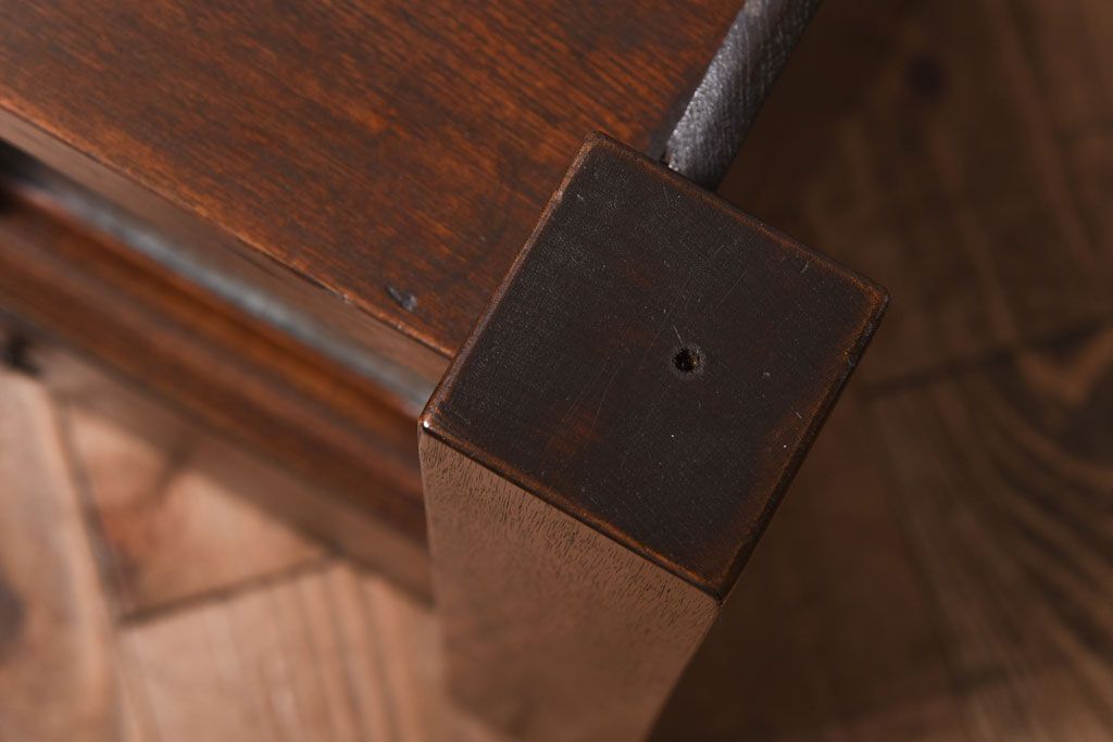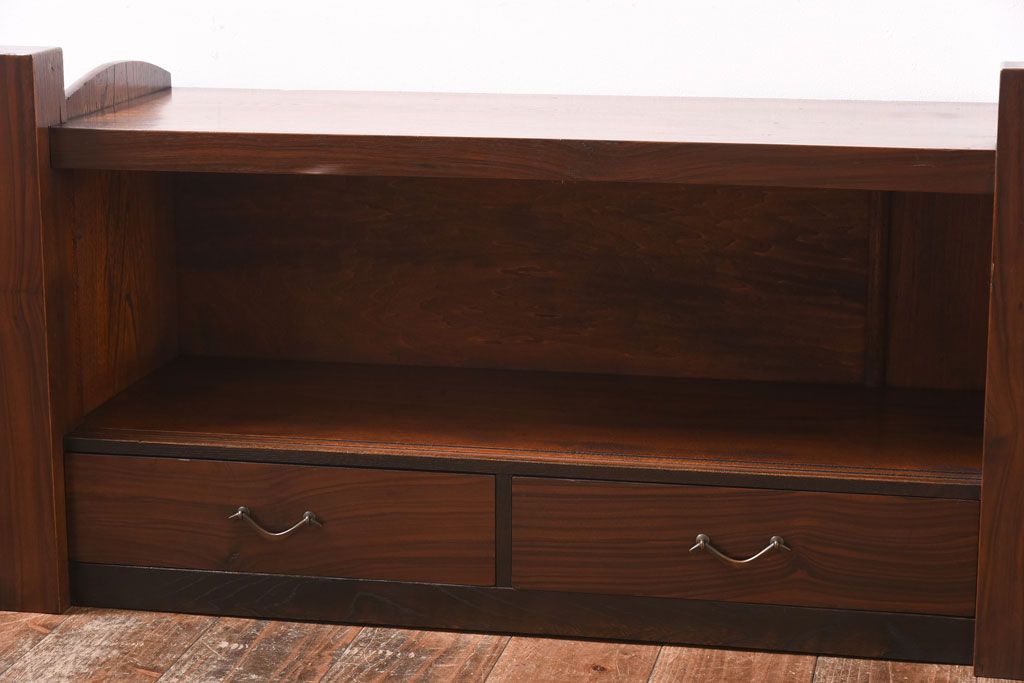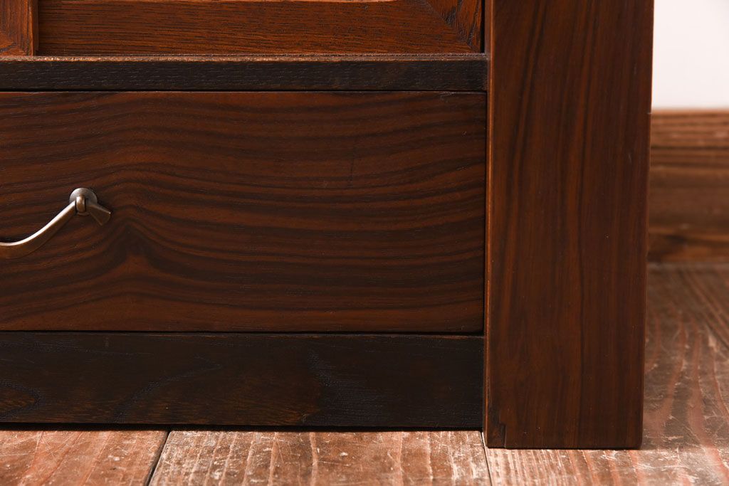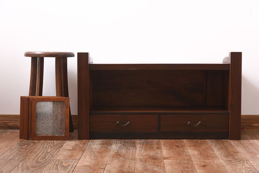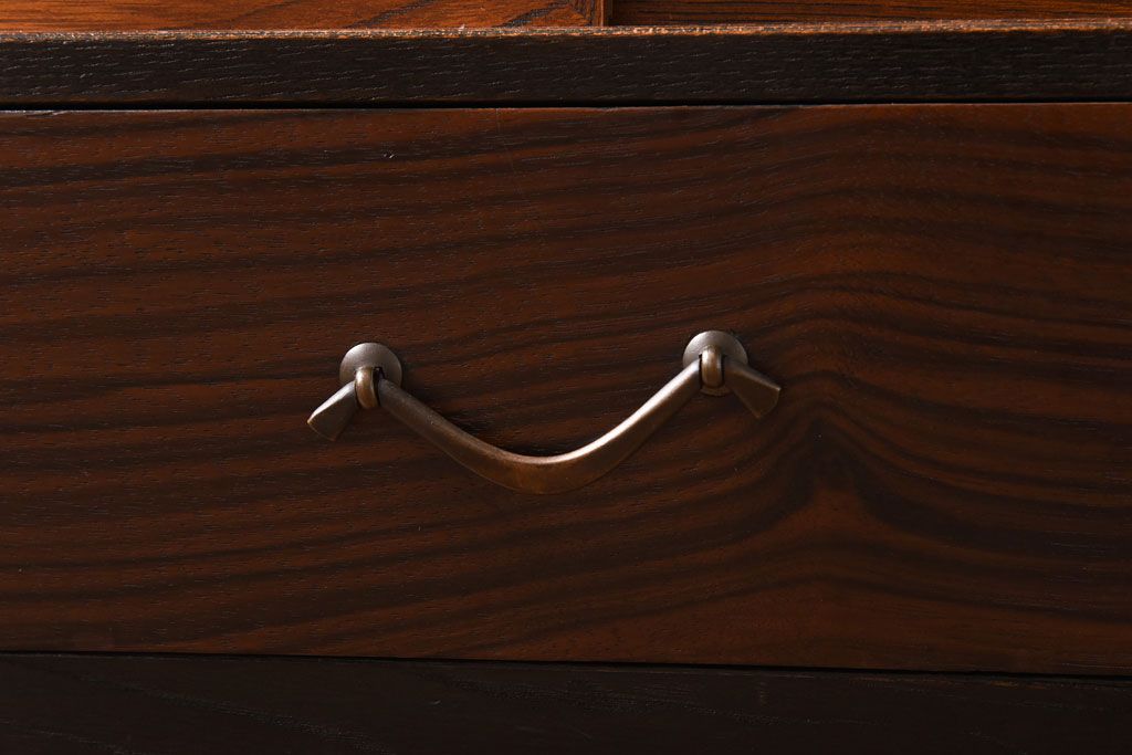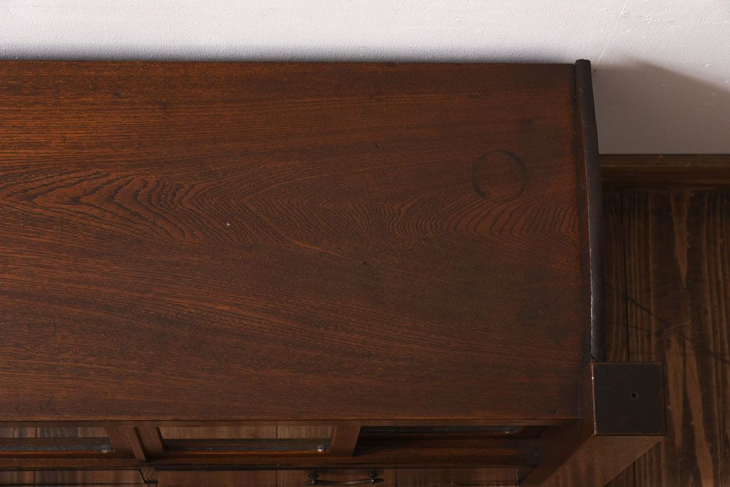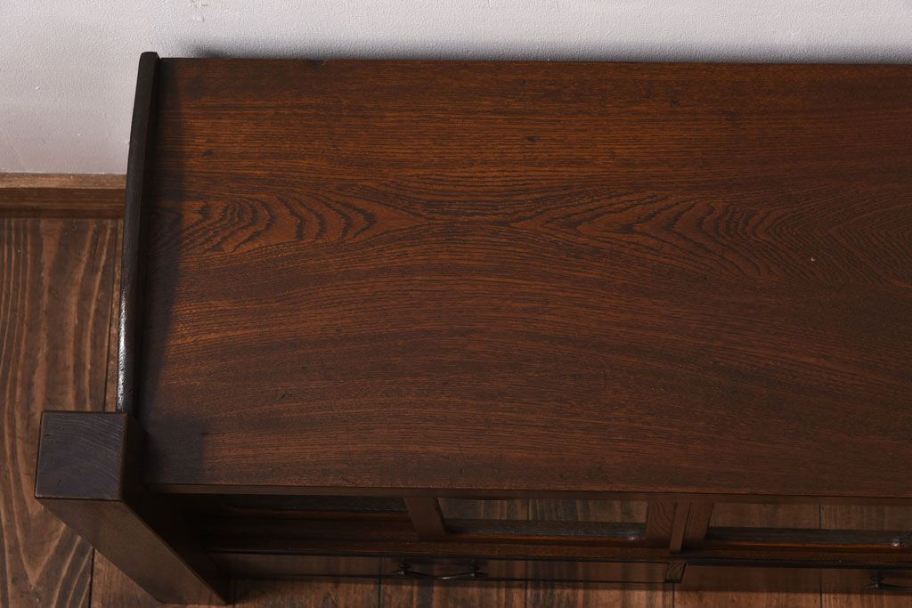 アンティーク家具 昭和初期 黒檀・栓材 結霜ガラスが上品なローボード(収納棚、置き床)