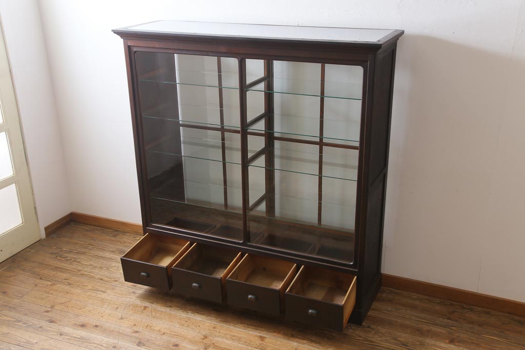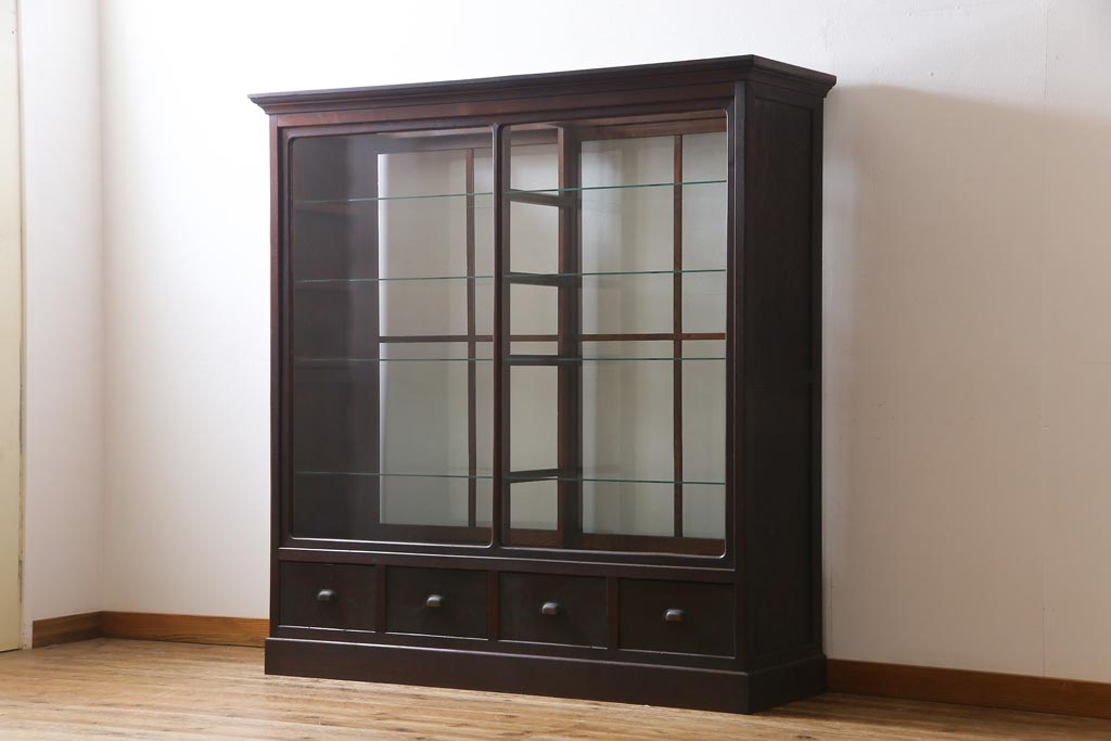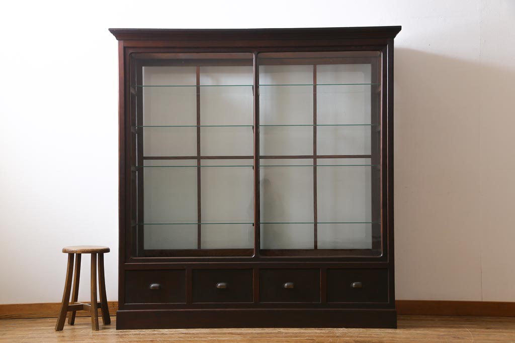 ラフジュ工房> 店舗什器 > アンティーク家具 和製アンティーク 栗材 大正ロマンの雰囲気溢れる上質なガラスケース(陳列棚)