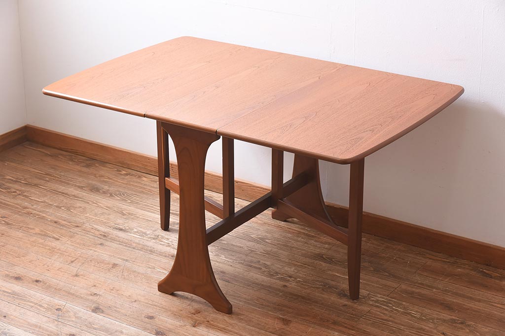 ヴィンテージ家具 北欧ビンテージ チーク材 温もりと美しい木目が魅力のゲートレッグテーブル(バタフライテーブル、エクステンションテーブル)
