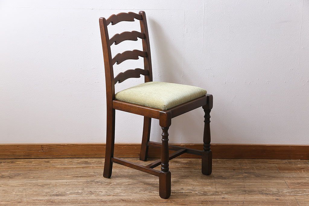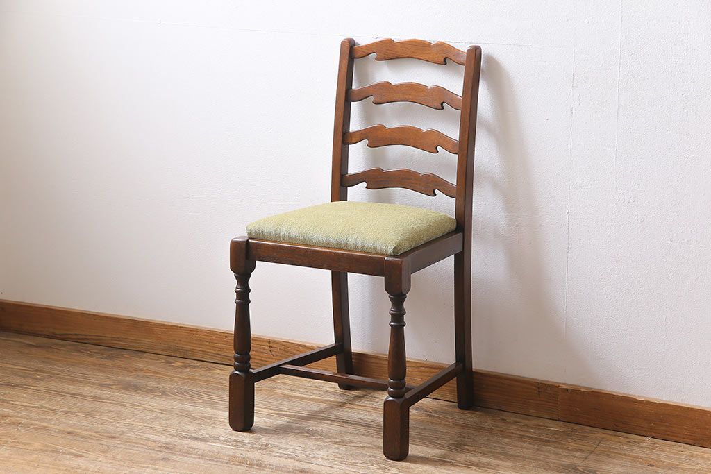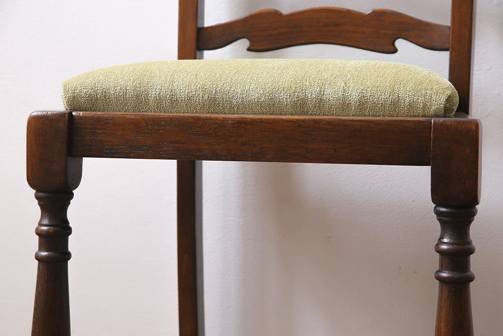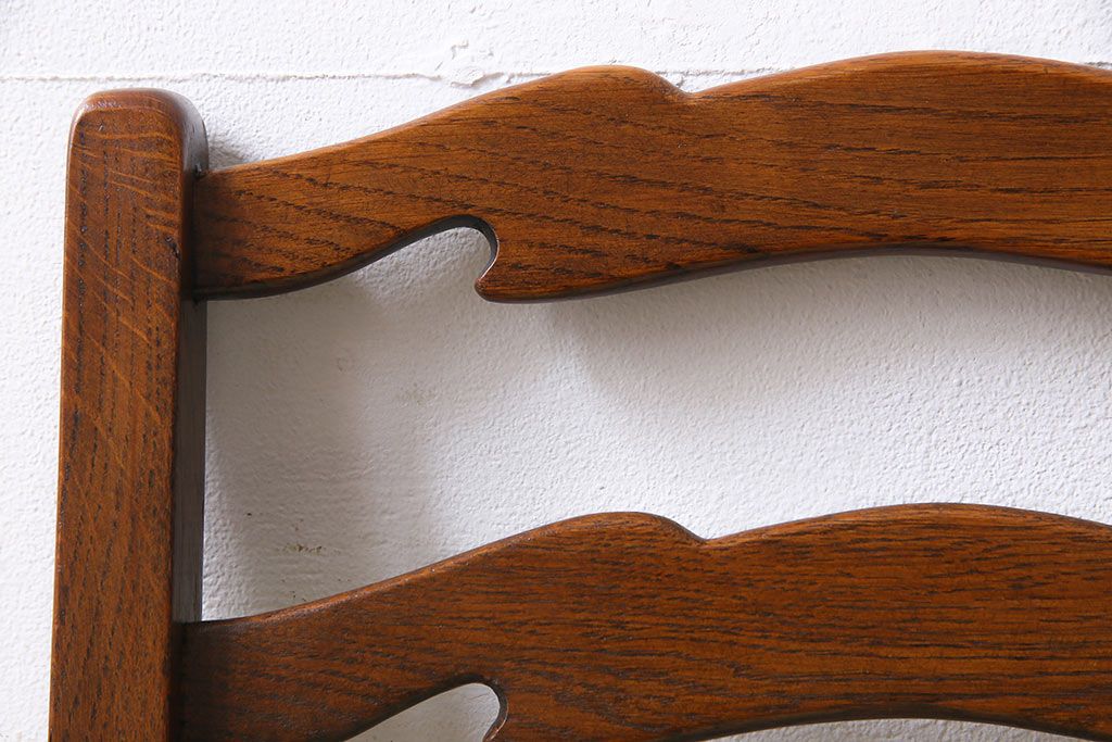 アンティーク家具 イギリスアンティーク オーク材 背もたれのデザインが特徴的なチェア(ダイニングチェア、ワークチェア、椅子)(1)