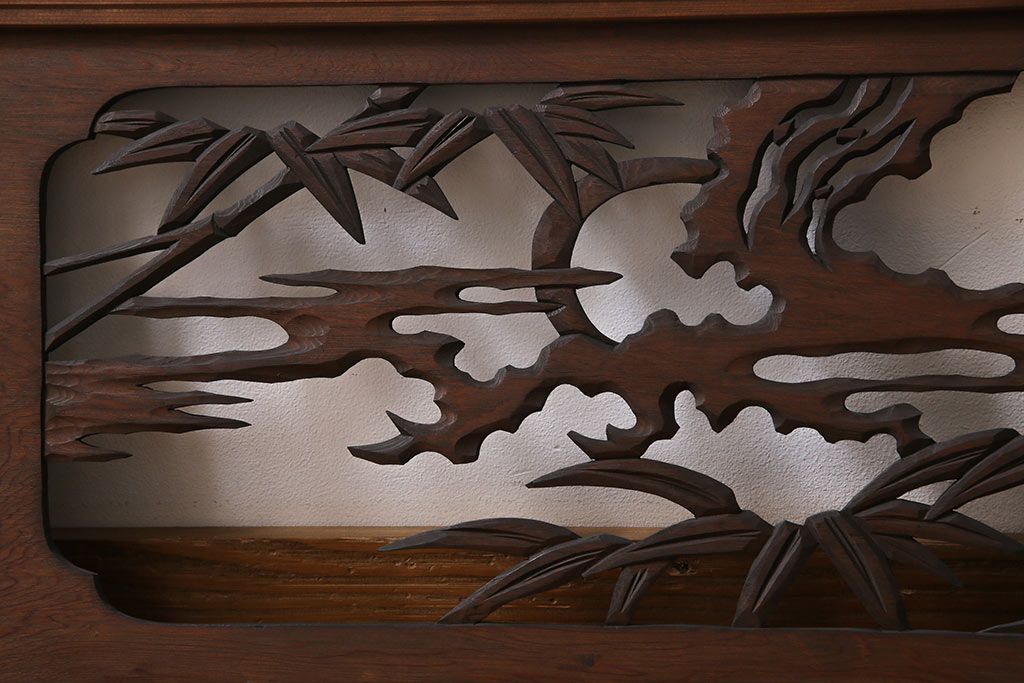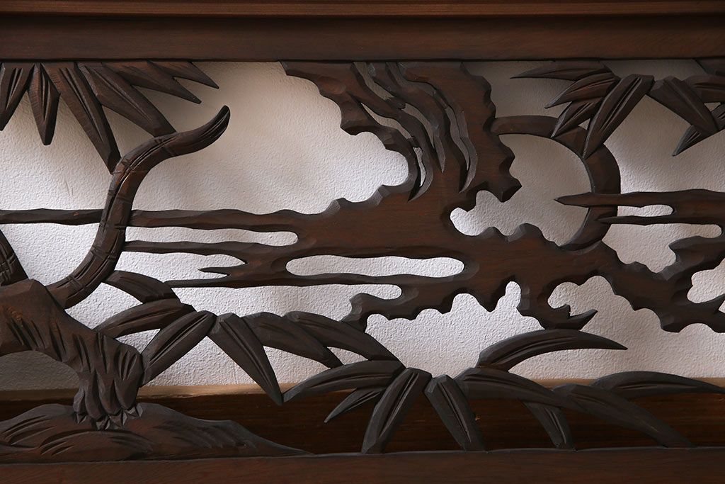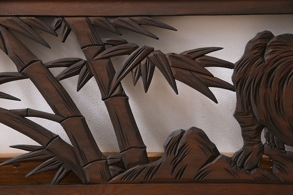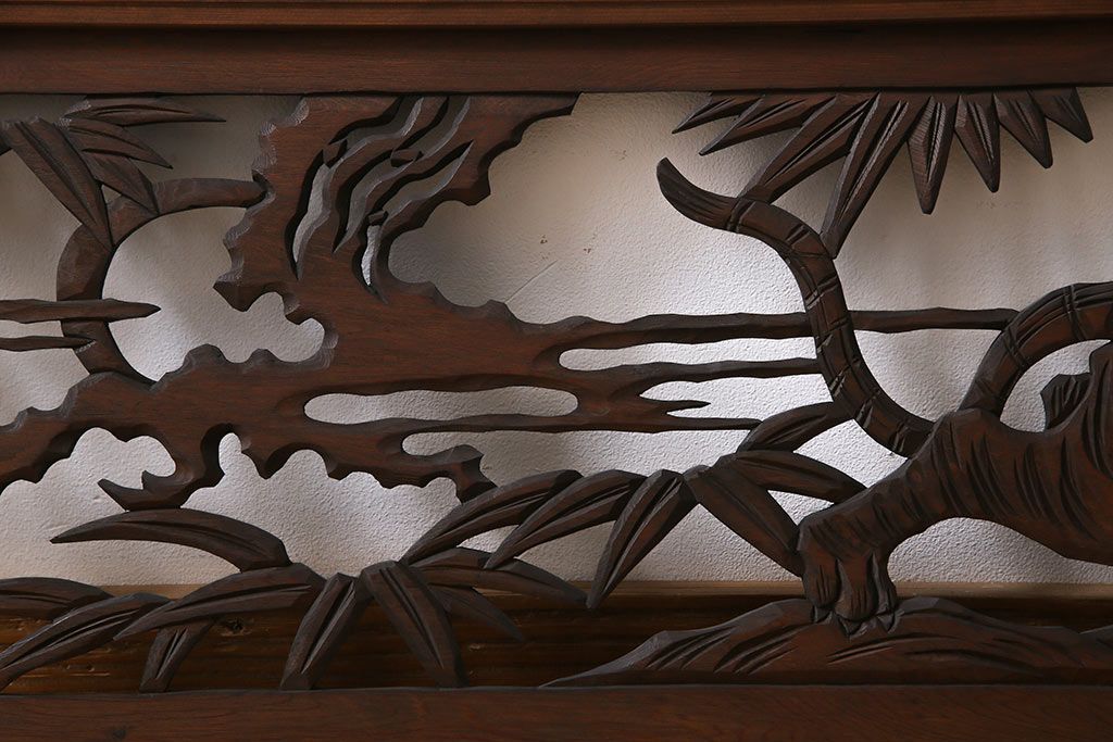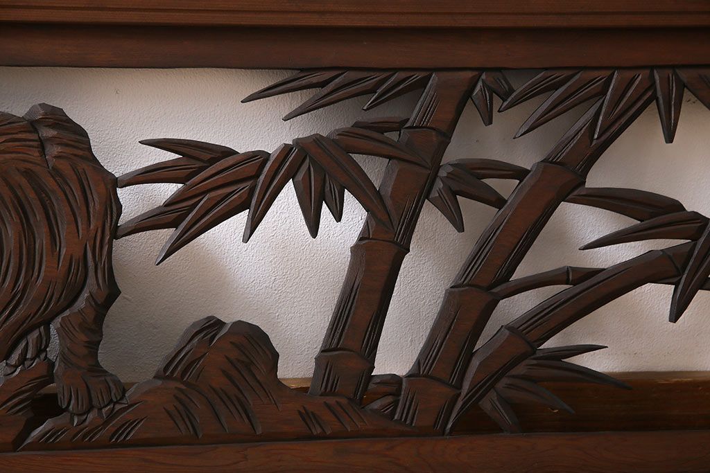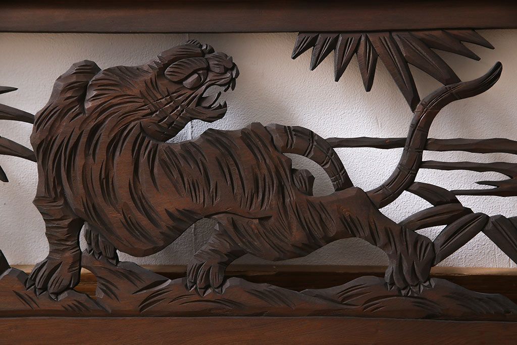 昭和中期 虎に竹 躍動感あふれる透かし彫りが目を引く欄間(ディスプレイ雑貨、明り取り)(1)