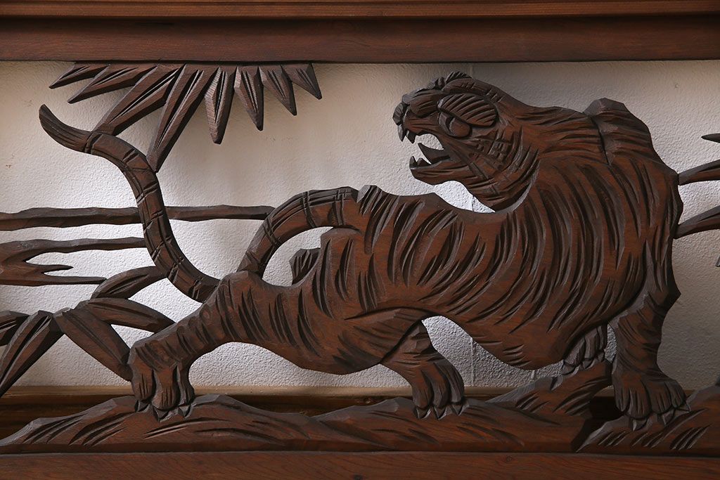 昭和中期 虎に竹 躍動感あふれる透かし彫りが目を引く欄間(ディスプレイ雑貨、明り取り)(1)です。