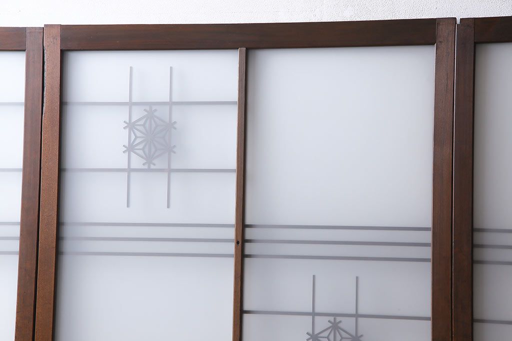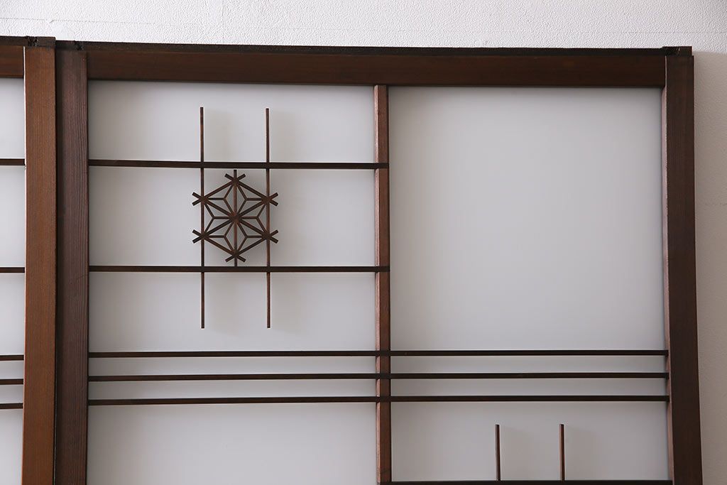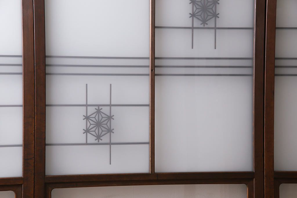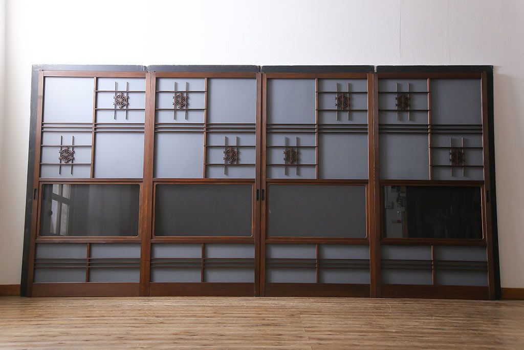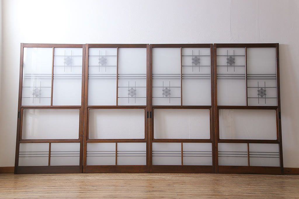 和製アンティーク 昭和期 上品な組子の意匠が目を引くガラス戸(引き戸、建具)4枚セット
