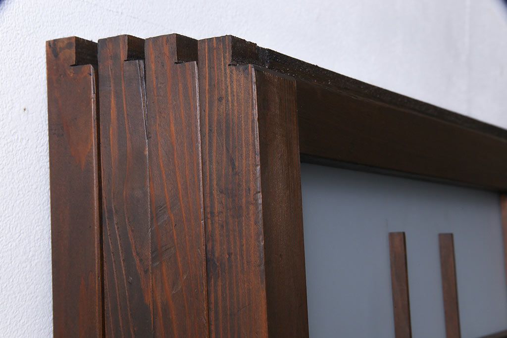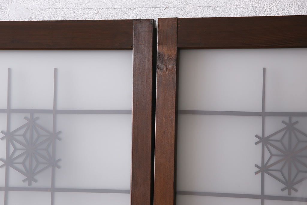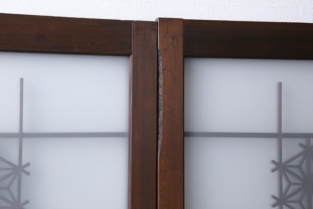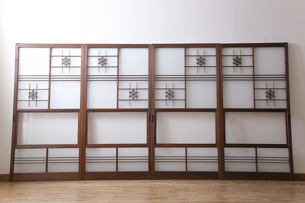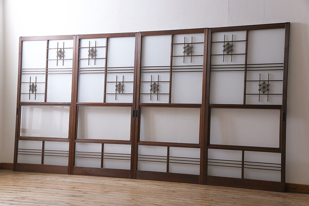 和製アンティーク 昭和期 上品な組子の意匠が目を引くガラス戸(引き戸、建具)4枚セット