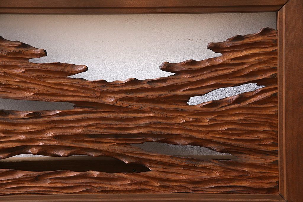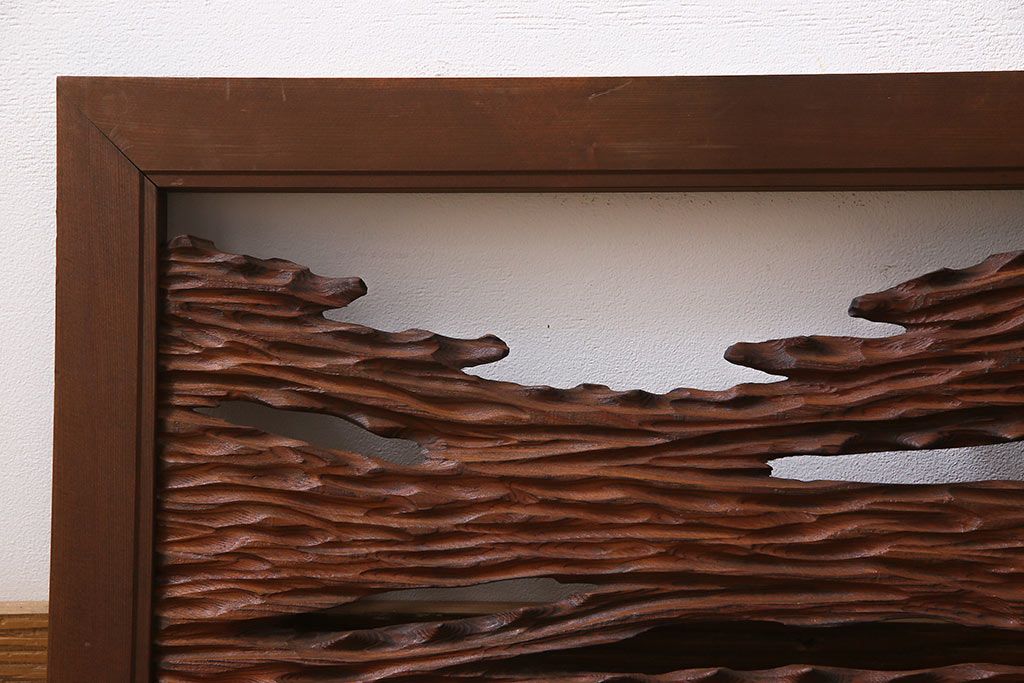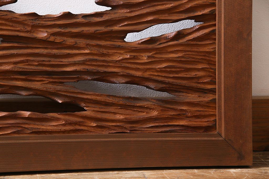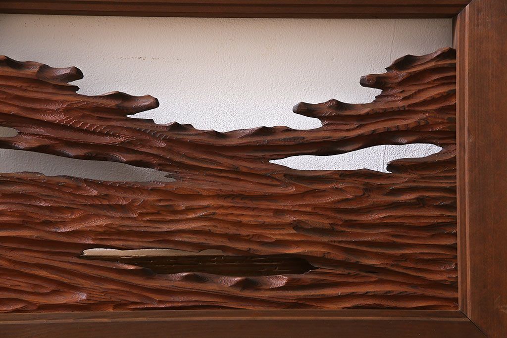 ビンテージ 屋久杉材 複雑な彫刻が目を引く欄間(明り取り、明かり取り)(1)