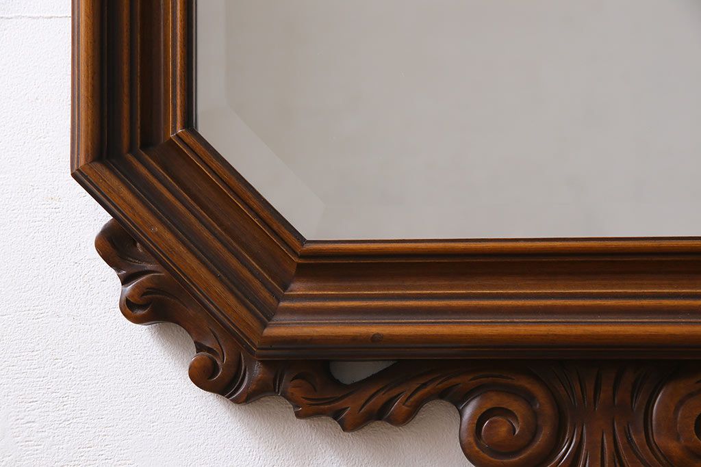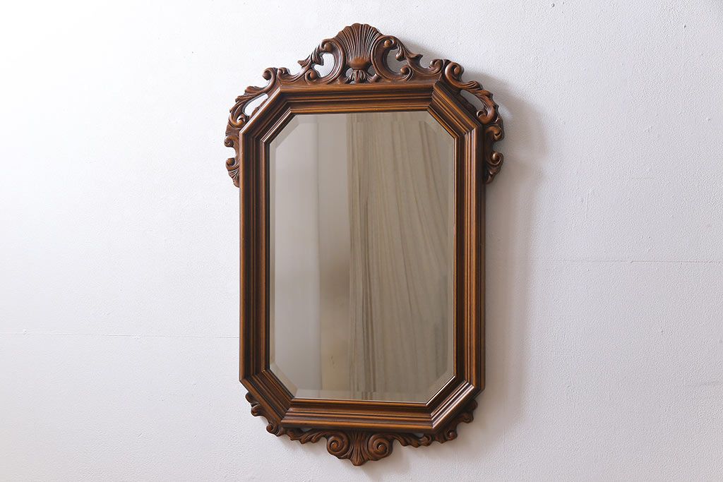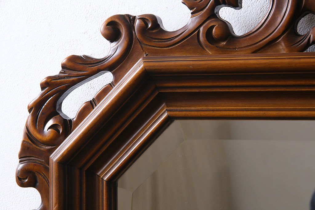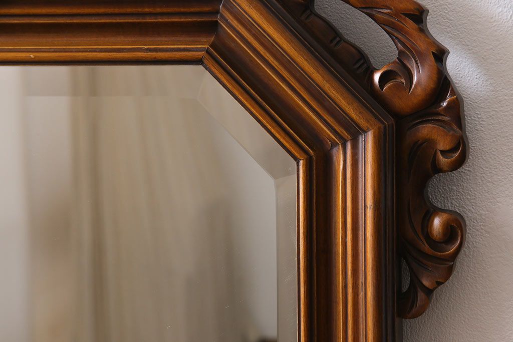アンティーク雑貨 フランスビンテージ 存在感のあるアンティークテイストなウォールミラー(壁掛け鏡)