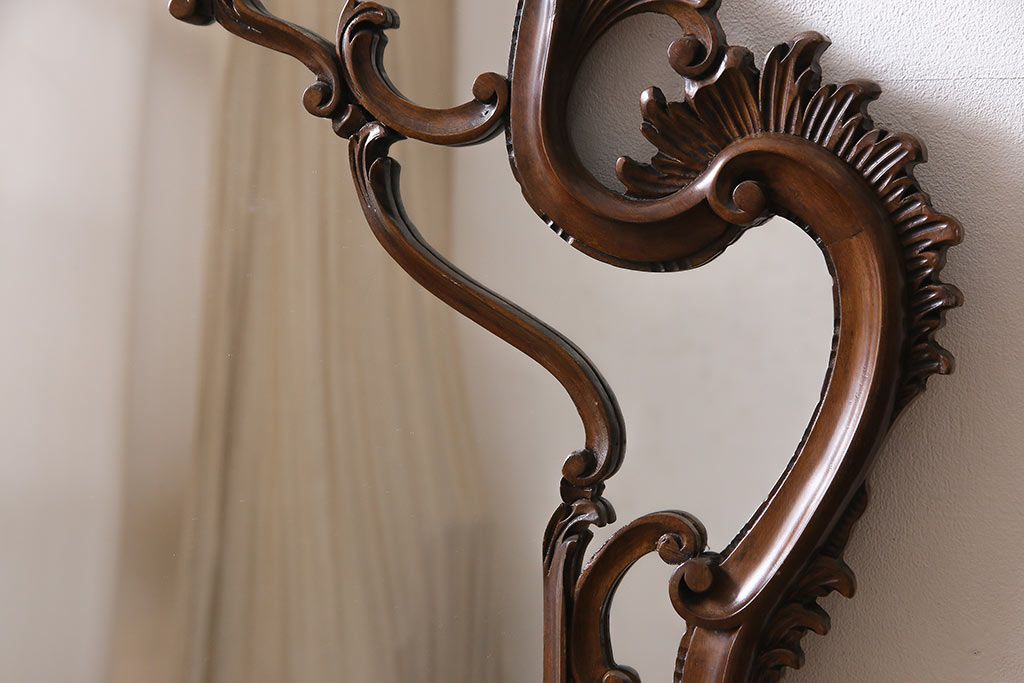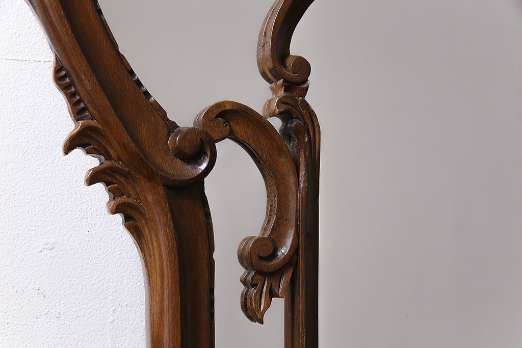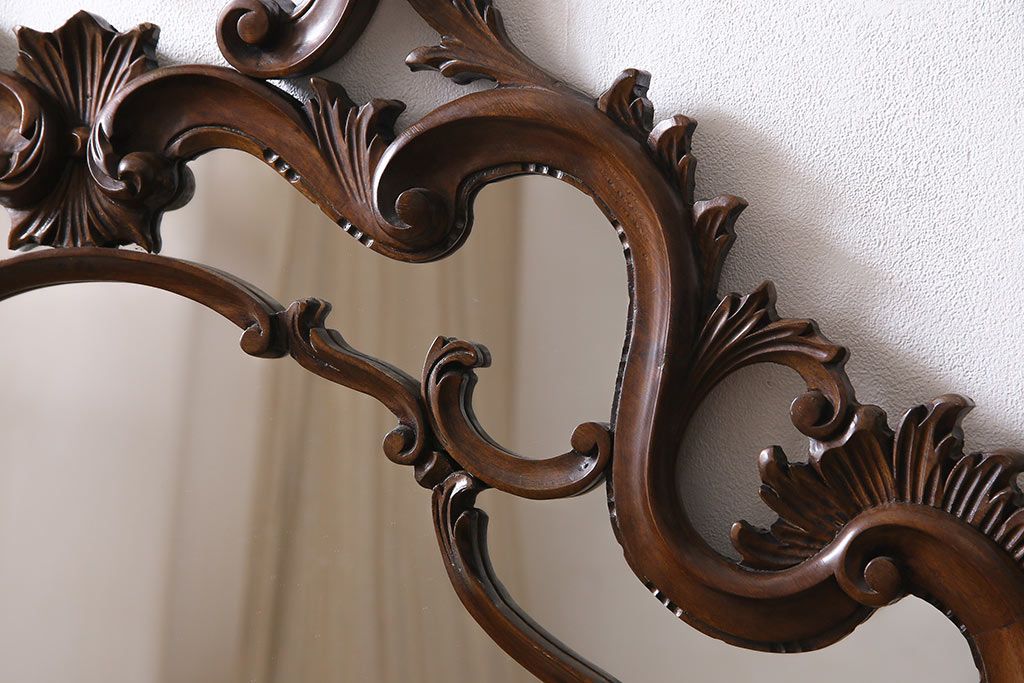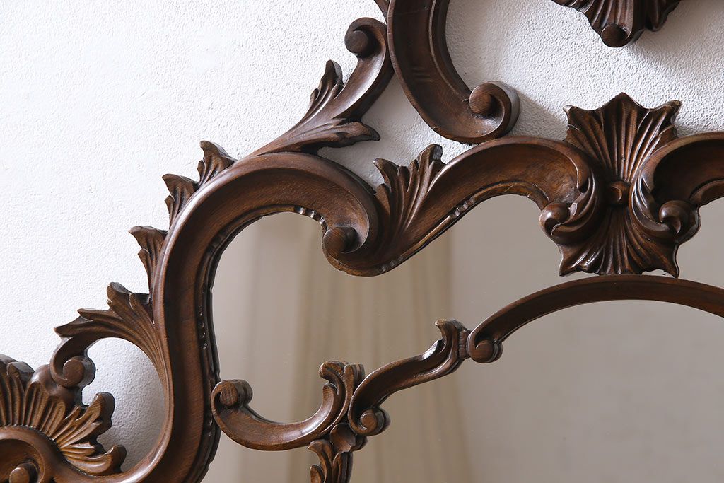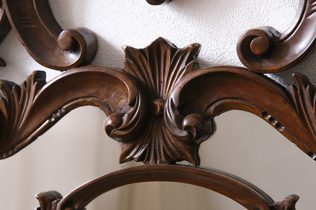 ラフジュ工房> 鏡> 壁掛け鏡 > アンティーク雑貨 フランスビンテージ ウォールナット材 緻密なデザインが見事な特大ウォールミラー(壁掛け鏡)