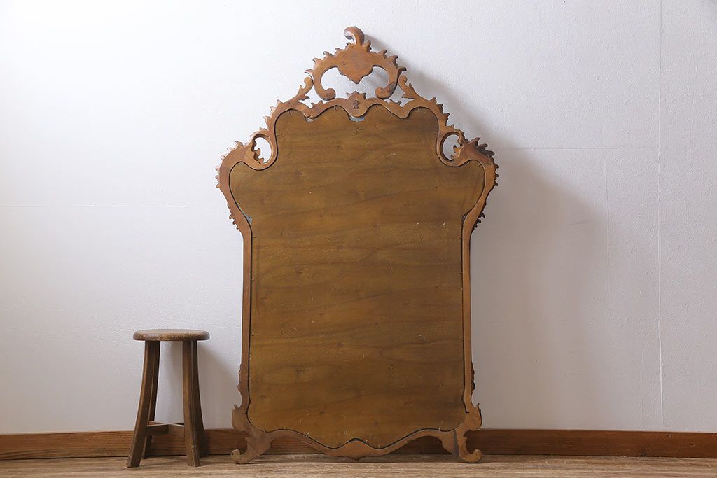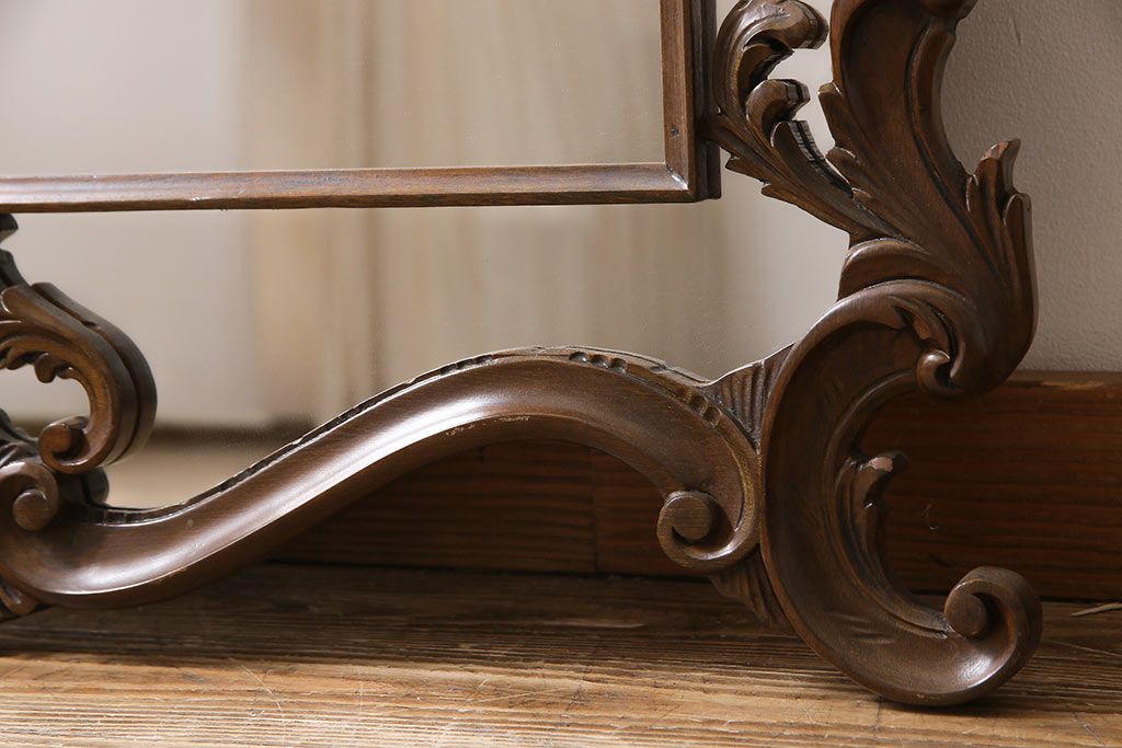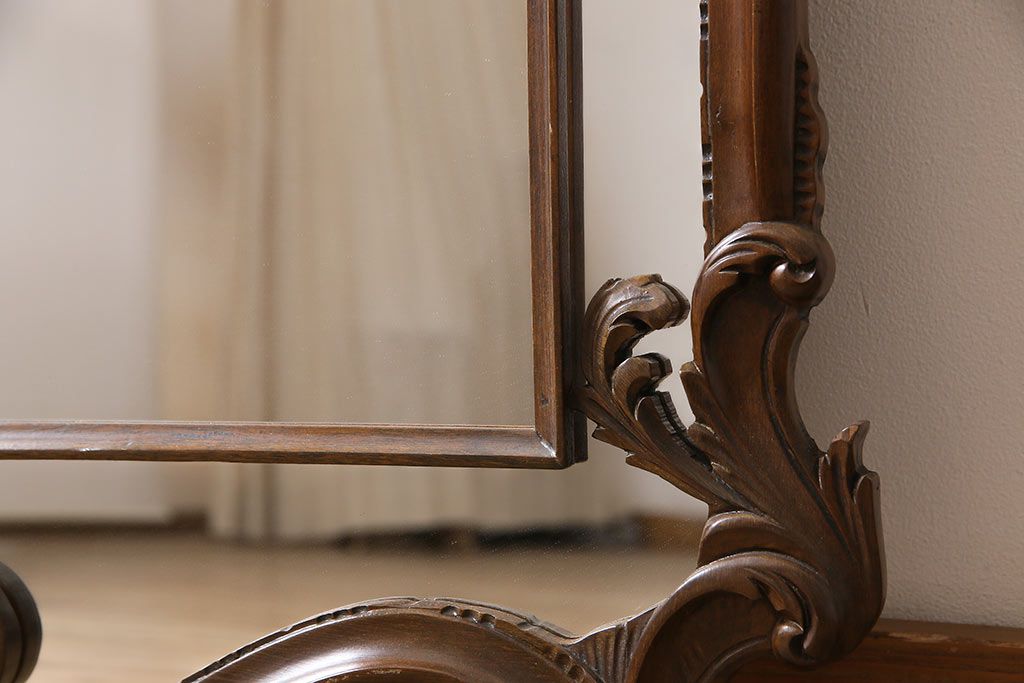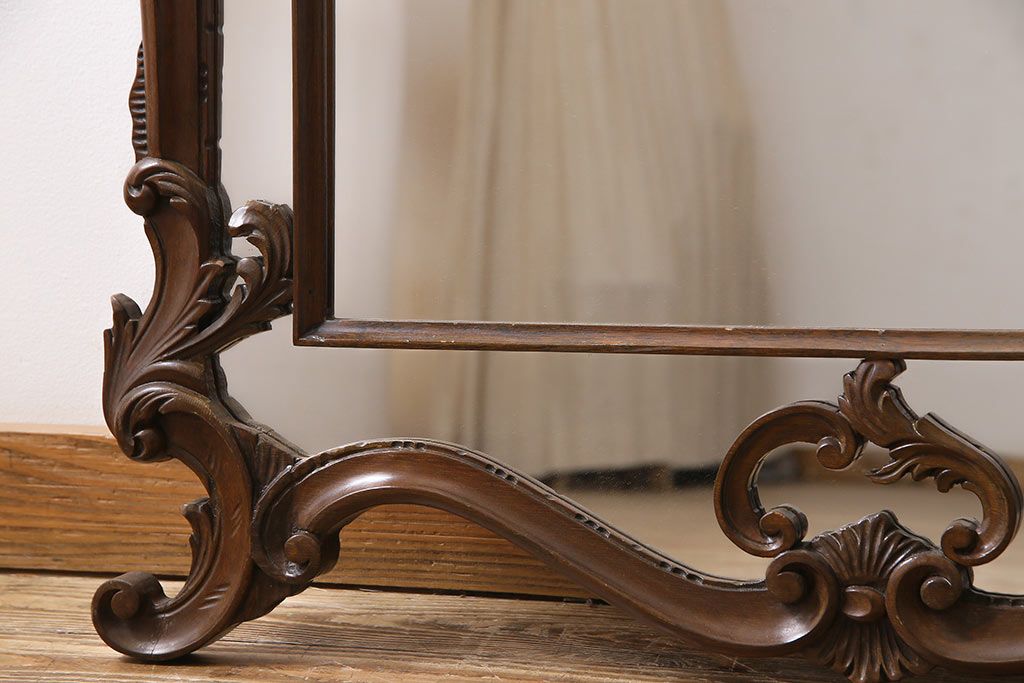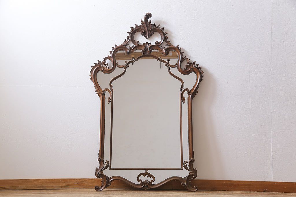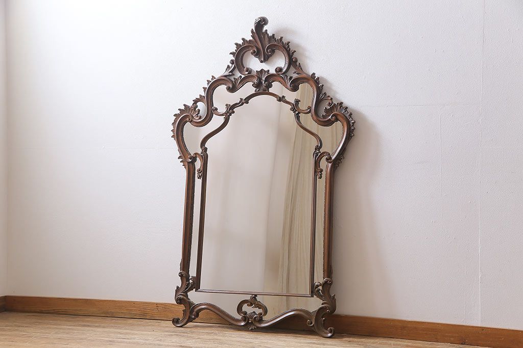 ラフジュ工房> 鏡> 壁掛け鏡 > アンティーク雑貨 フランスビンテージ ウォールナット材 緻密なデザインが見事な特大ウォールミラー(壁掛け鏡)