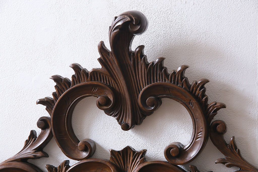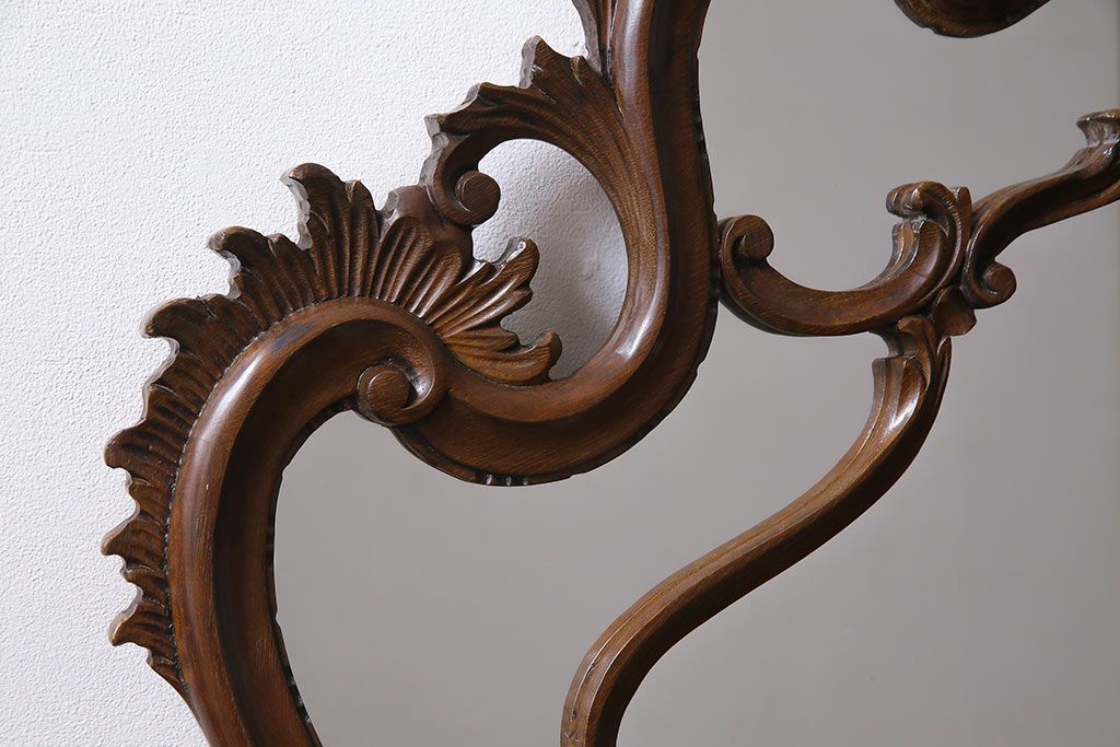 アンティーク雑貨 フランスビンテージ ウォールナット材 緻密なデザインが見事な特大ウォールミラー(壁掛け鏡)